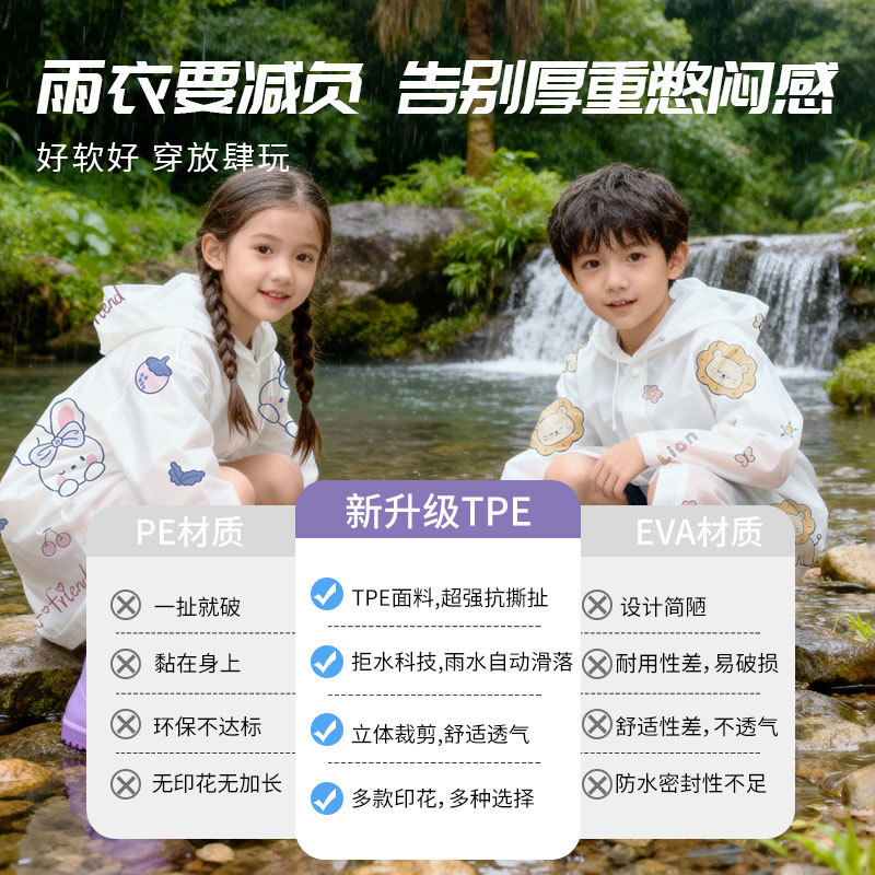 儿童雨衣印花卡通TPE EVA加厚长款防暴雨雨披学生户外一次性雨衣