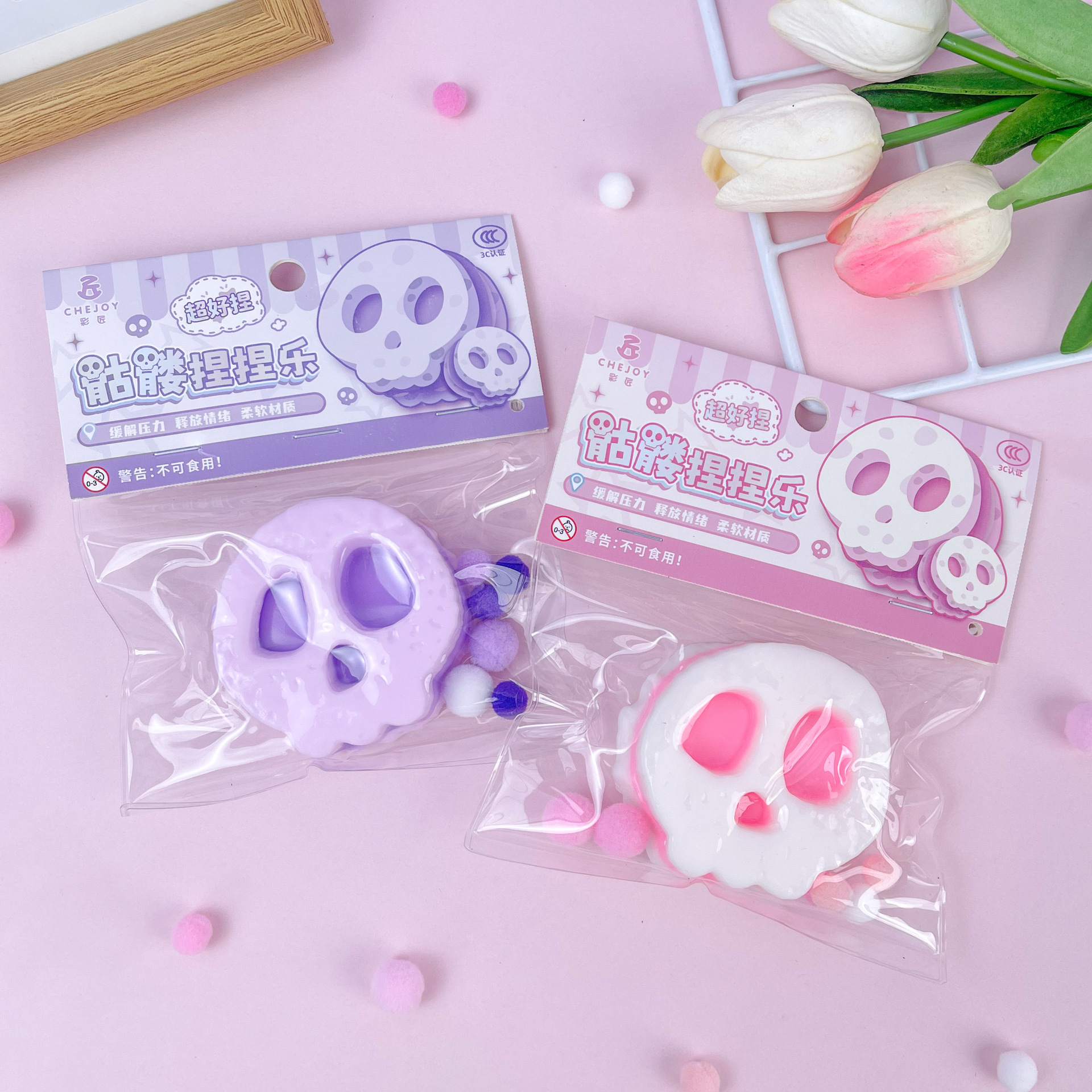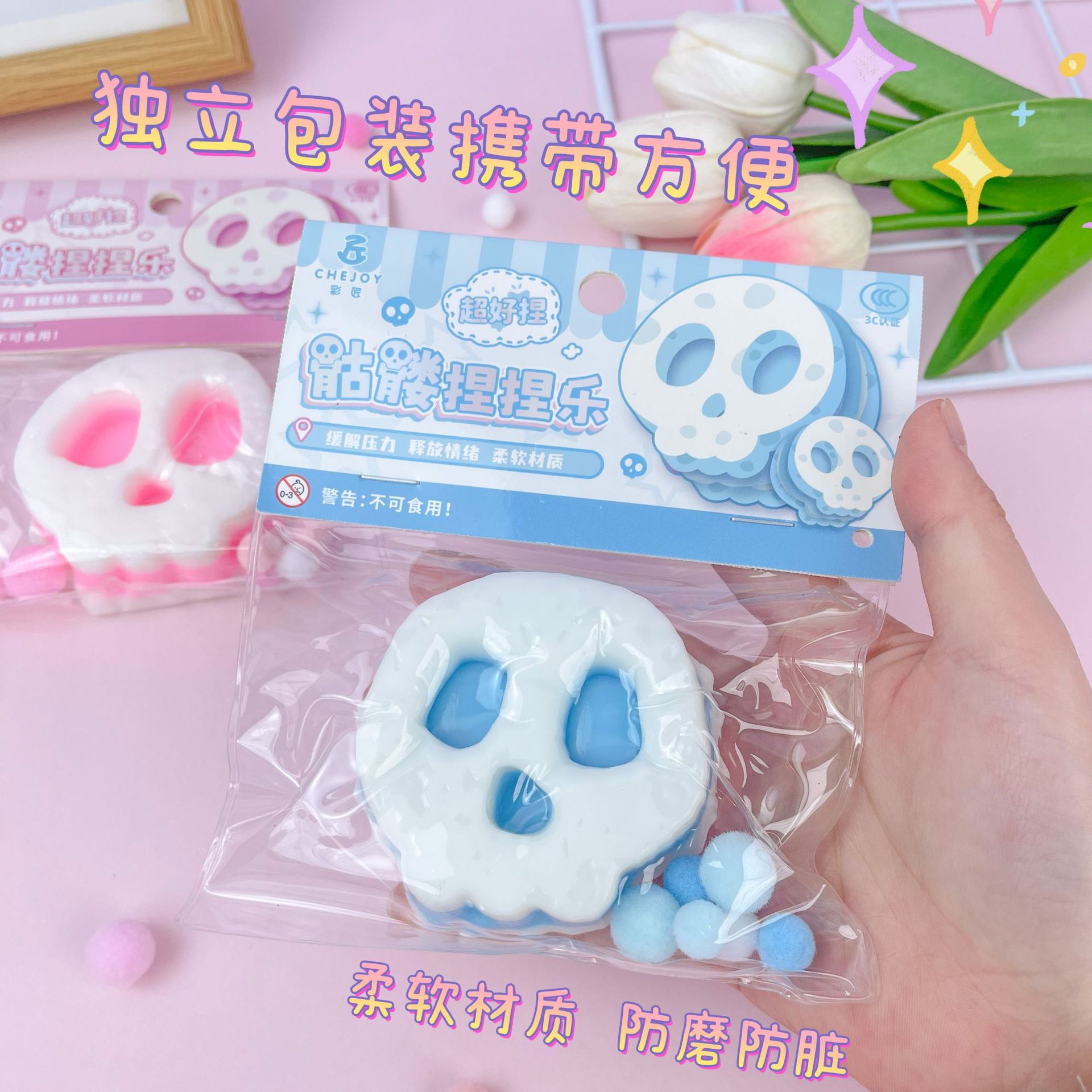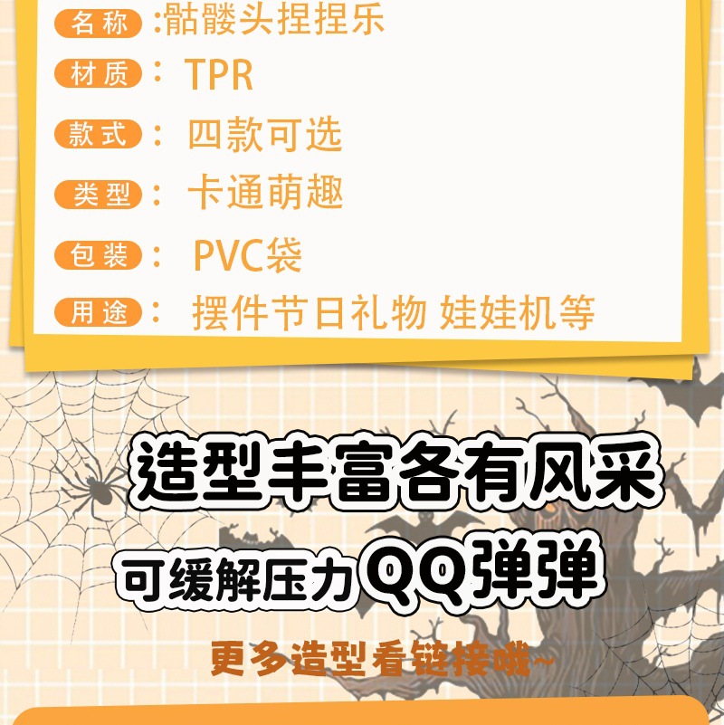 小红书爆款万圣节骷髅头捏捏乐卡通动漫解压捏捏儿童摆摊玩具批发