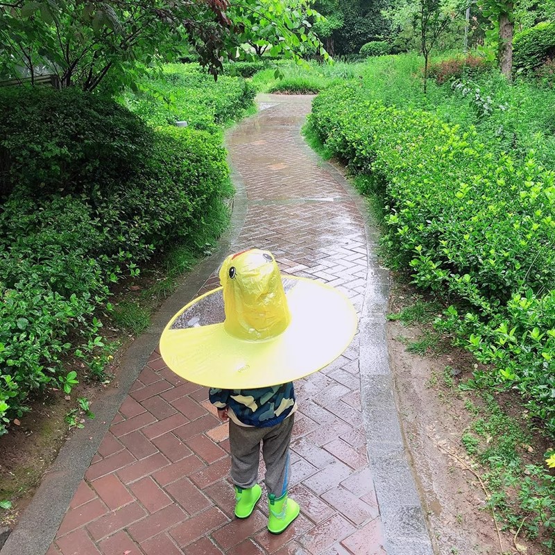 children‘s net red artifact ufo raincoat cap girl small yellow duck cape poncho baby rain gear boy kindergarten