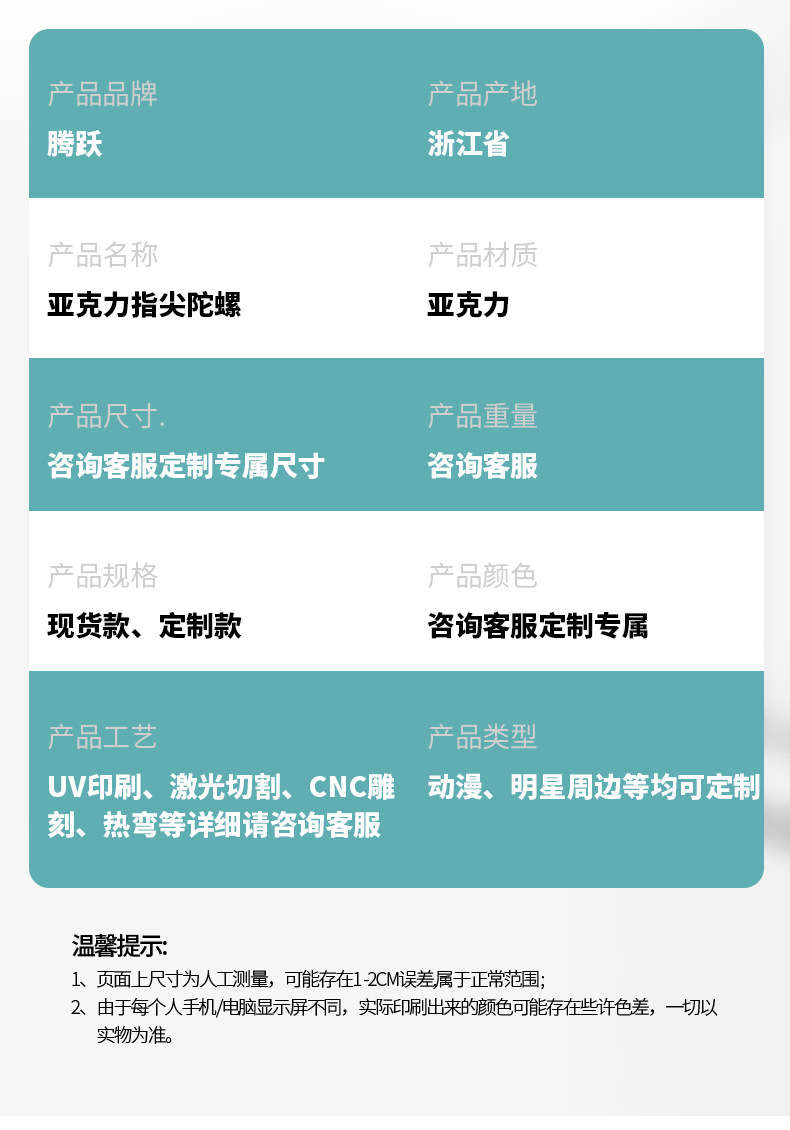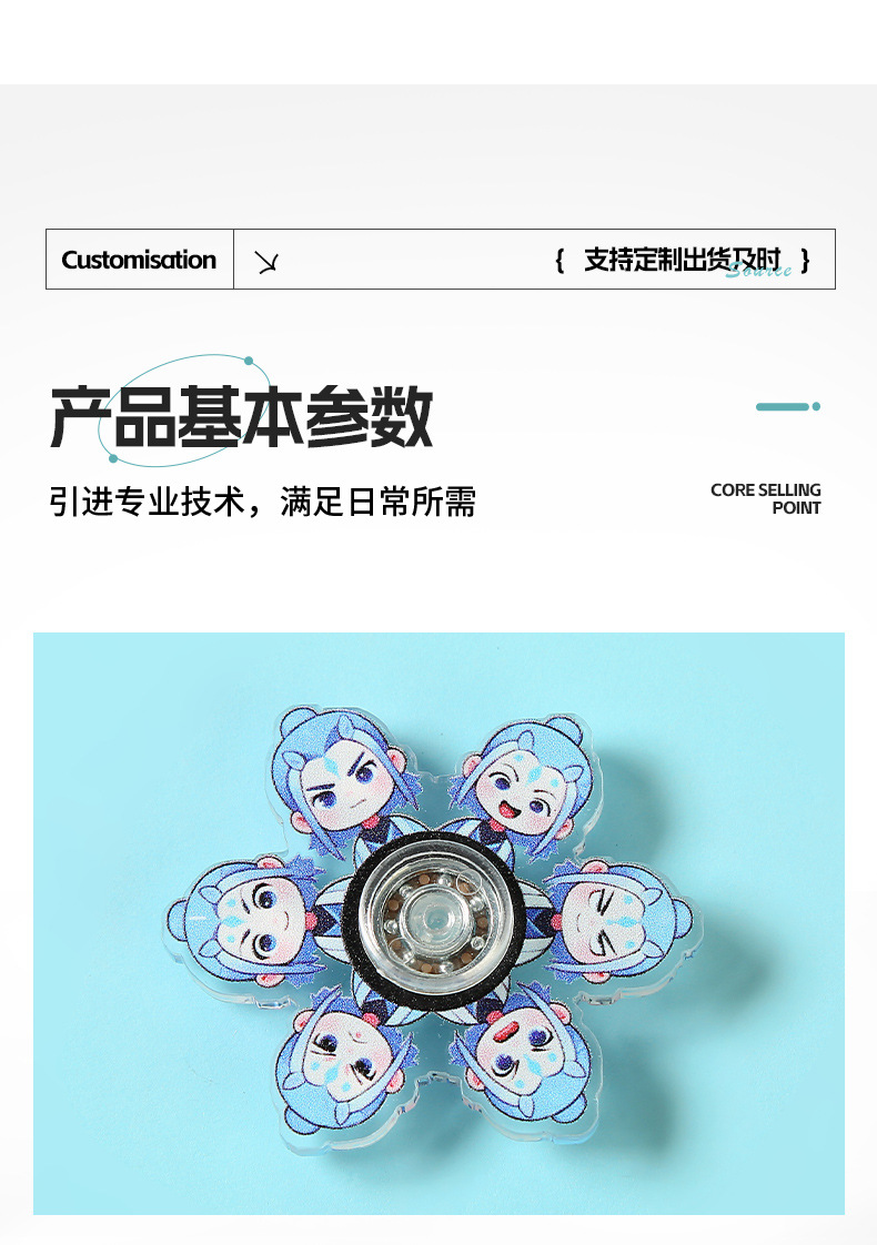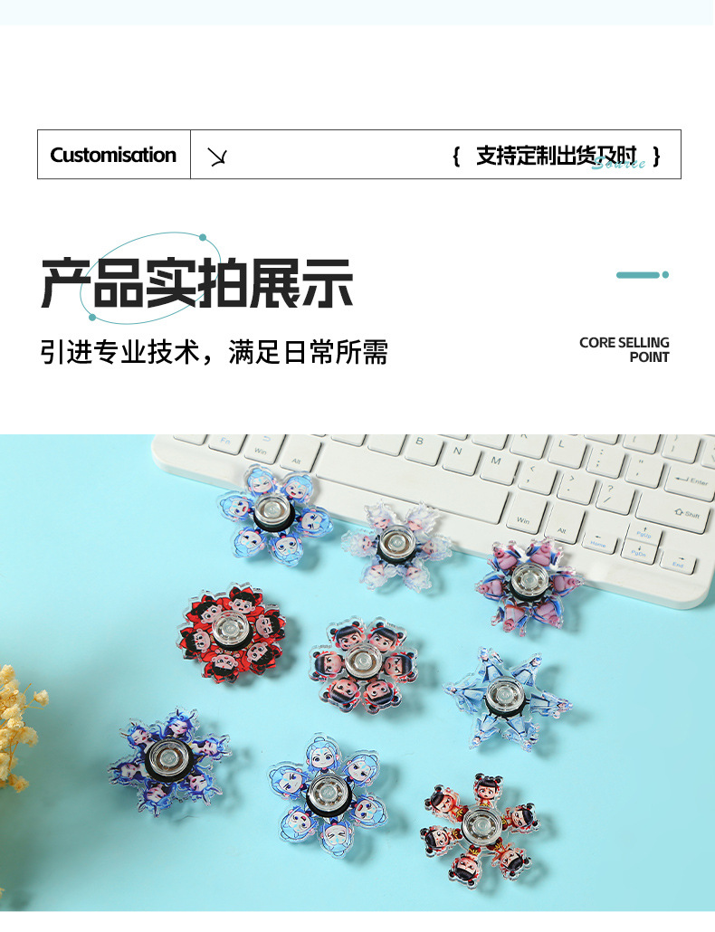 亚克力指尖陀螺定制 地摊玩具卡通儿童解压神器动漫周边印花陀螺