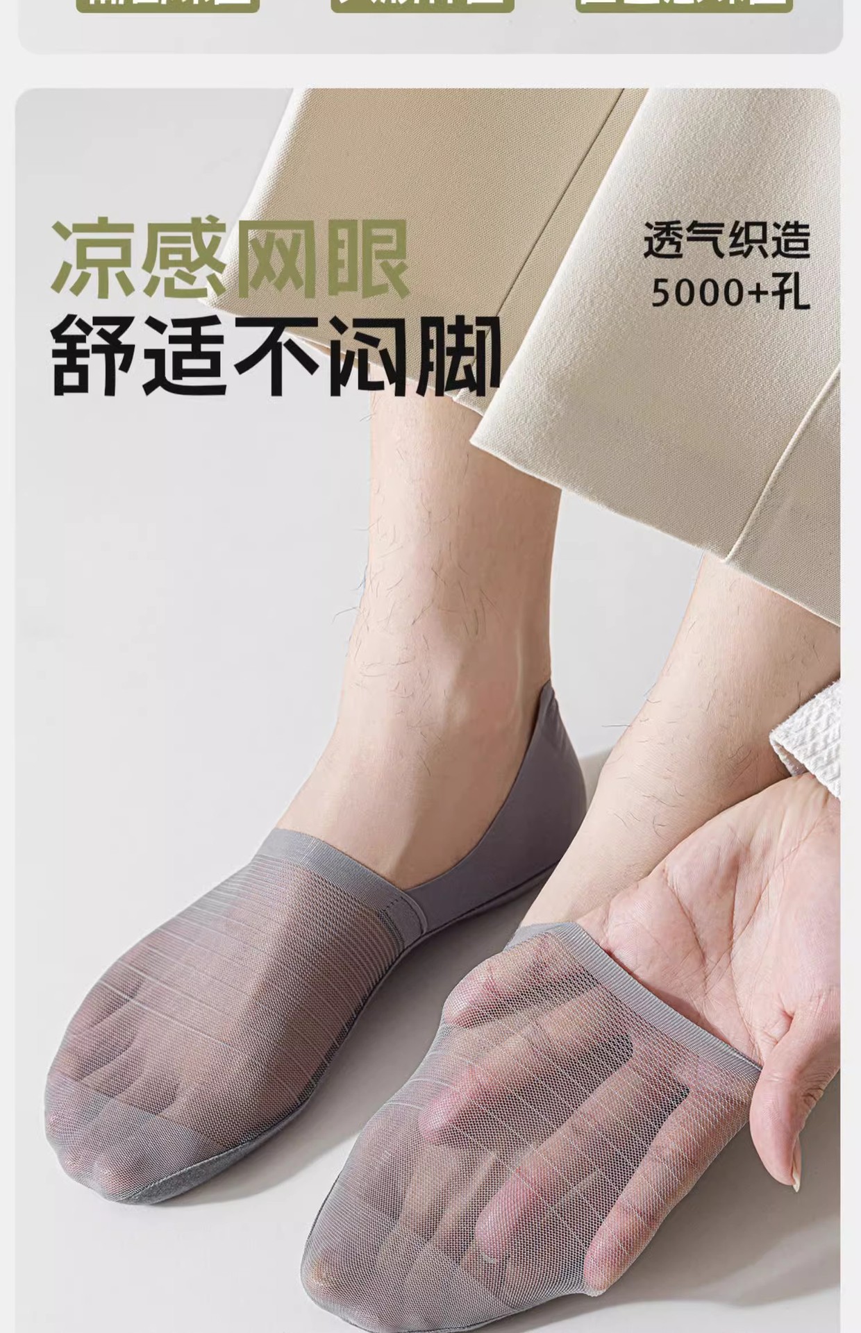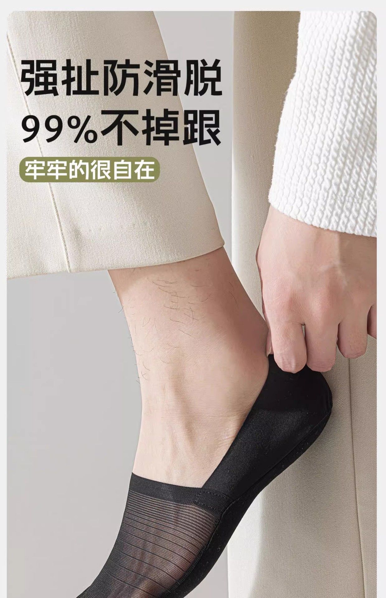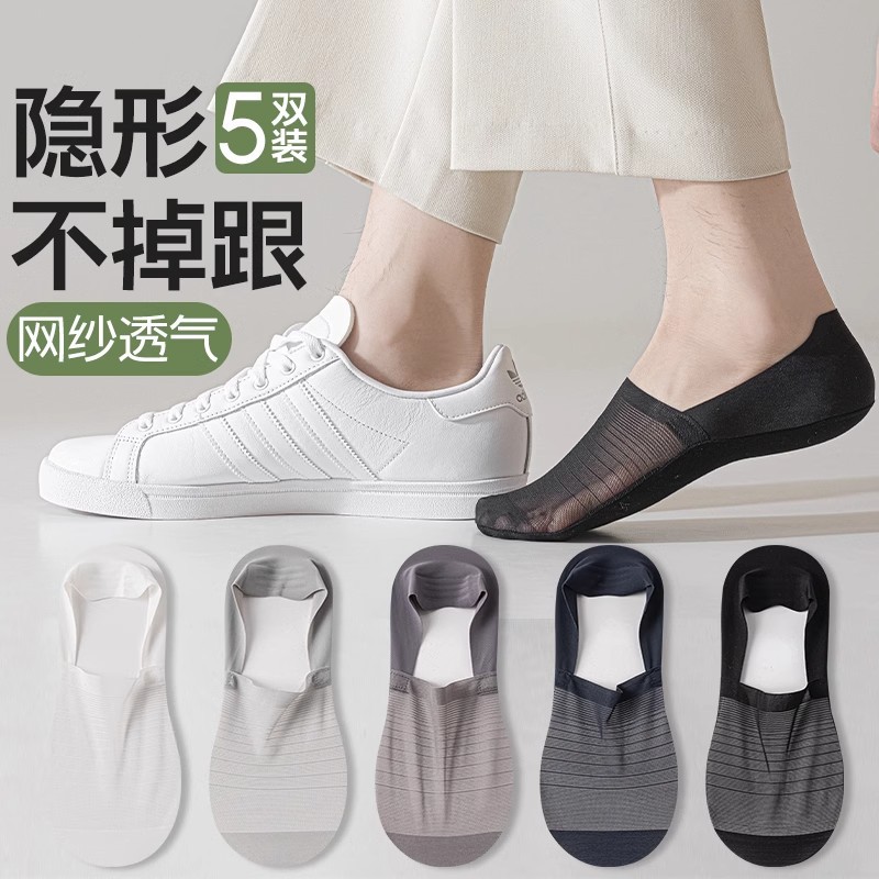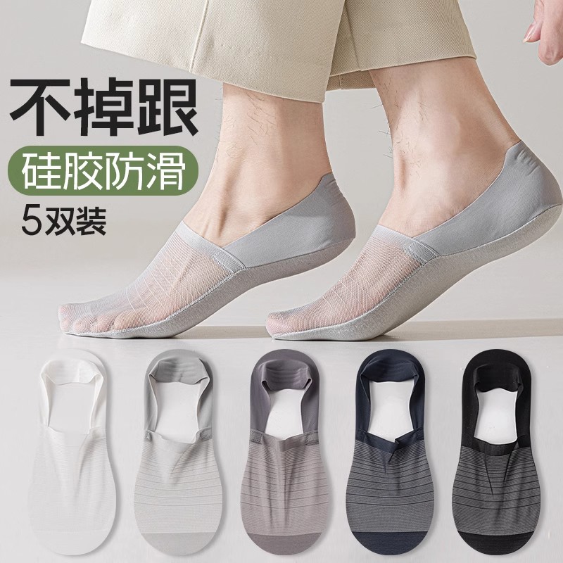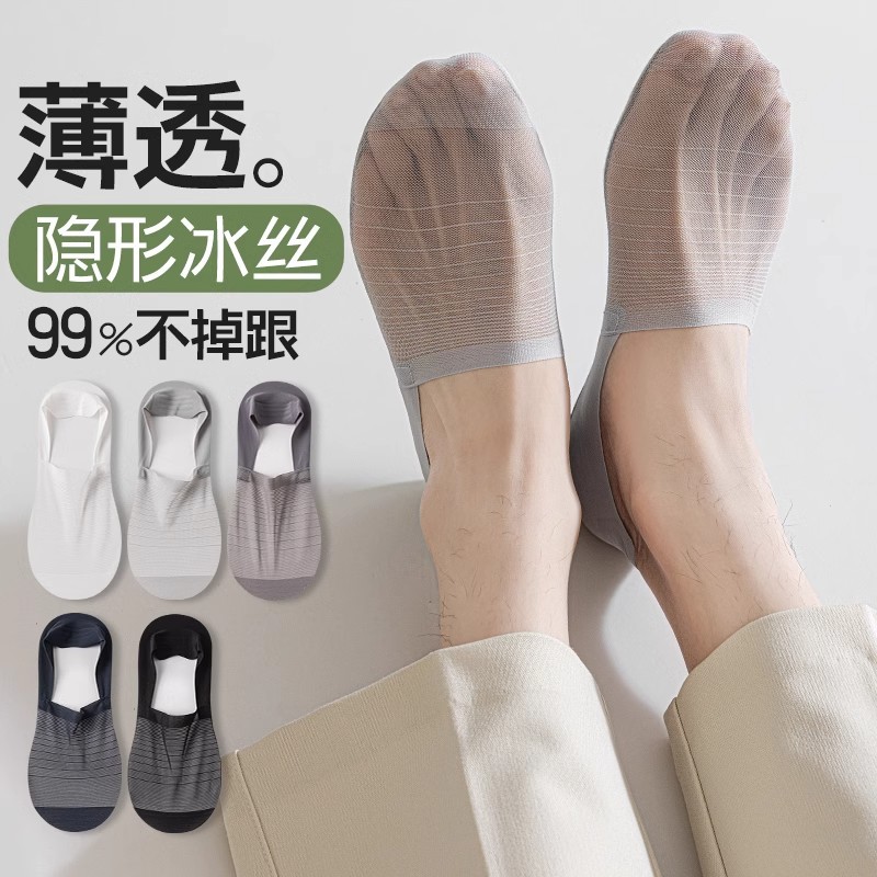 船袜男夏季薄款冰丝隐形袜棉底吸汗硅胶不掉根百搭浅口防臭男袜子