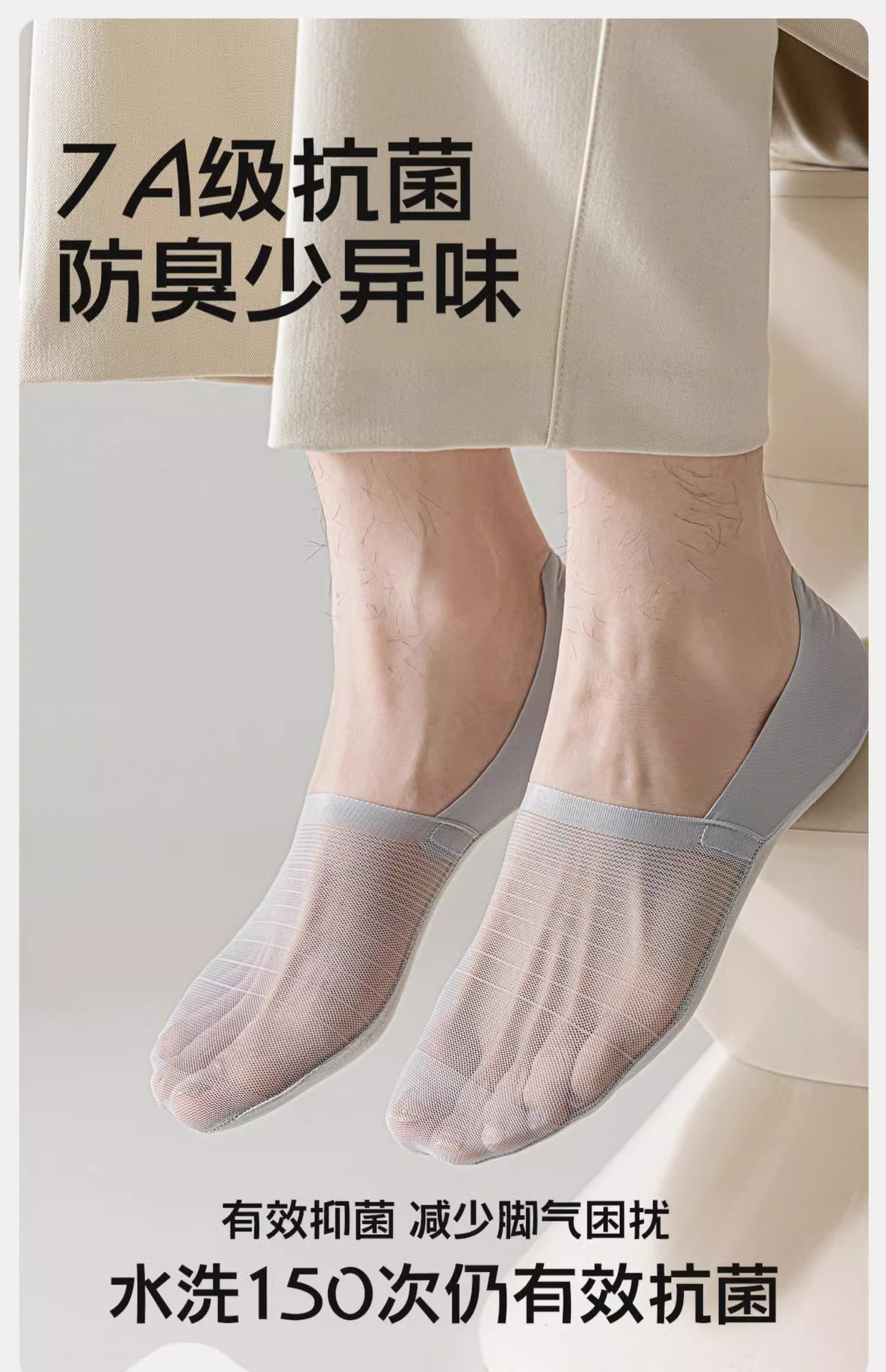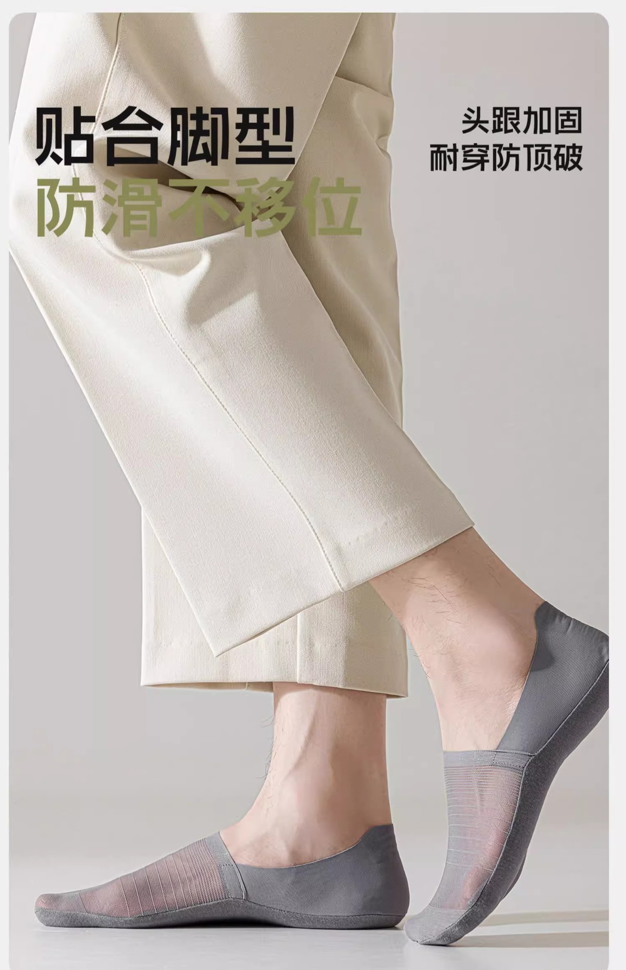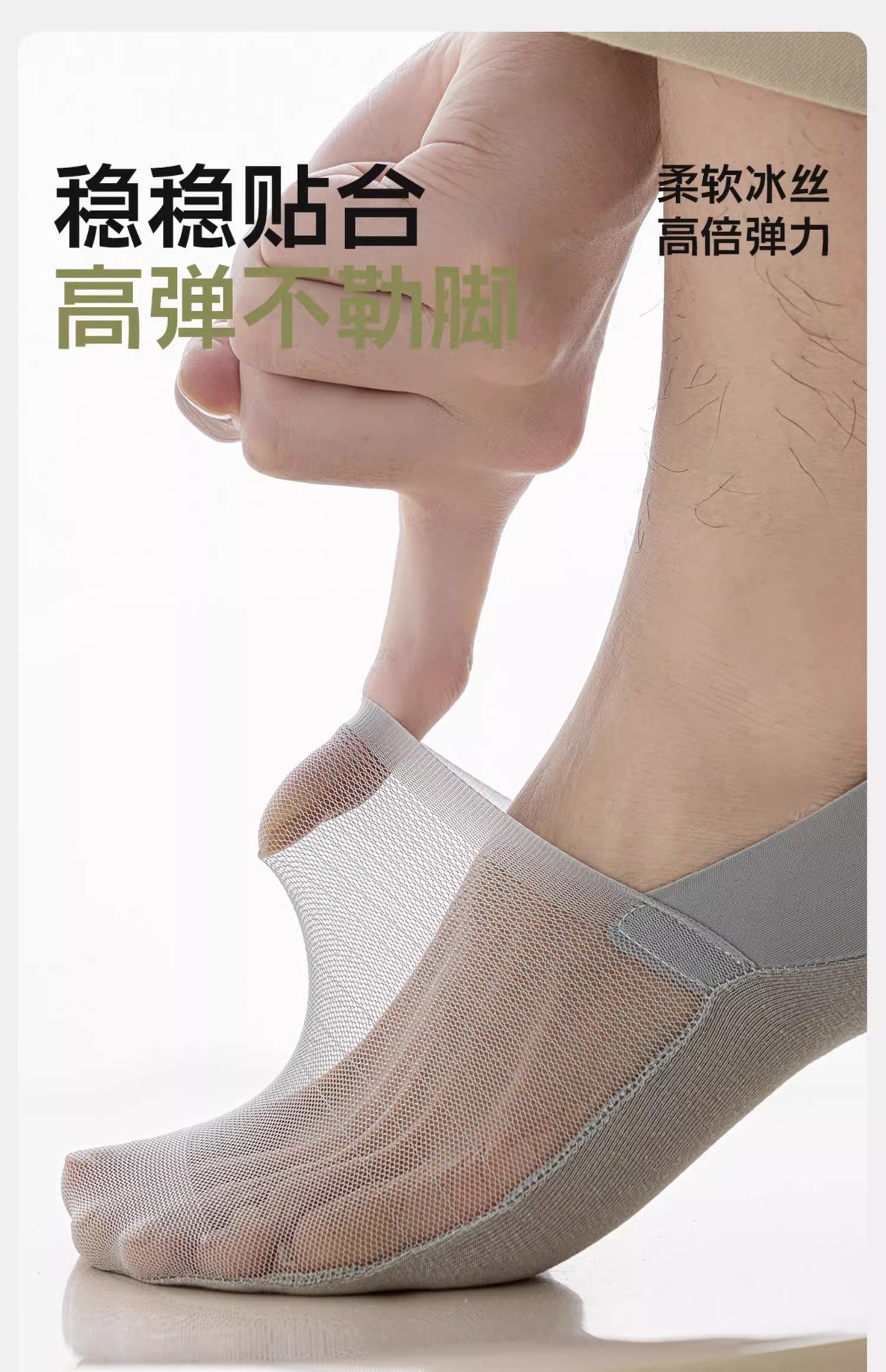 船袜男夏季薄款冰丝隐形袜棉底吸汗硅胶不掉根百搭浅口防臭男袜子