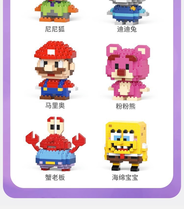 兼容乐高微颗粒积木卡通公仔对对碰儿童益智拼装玩具礼物摆摊批发