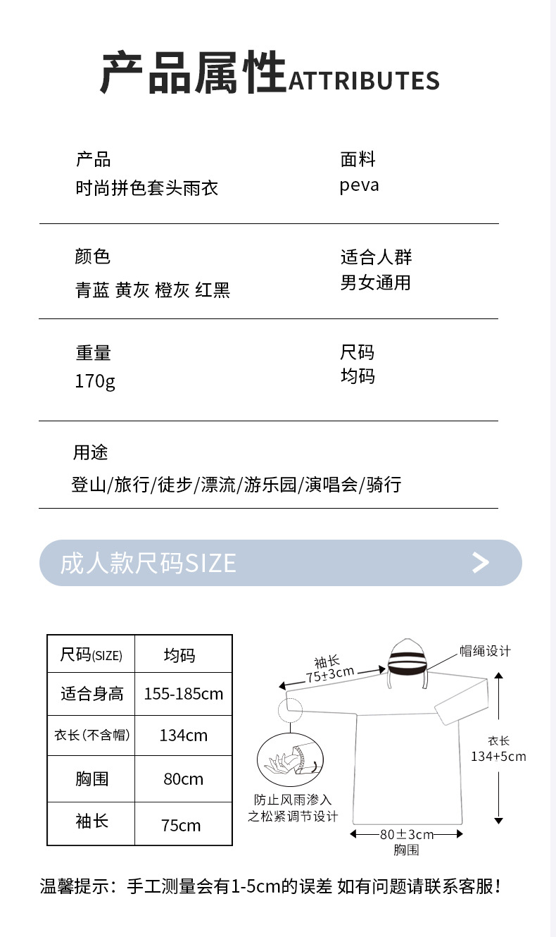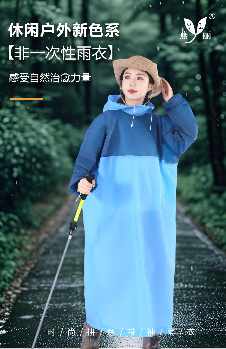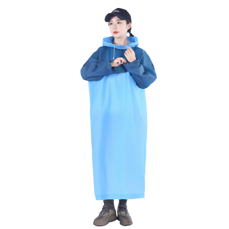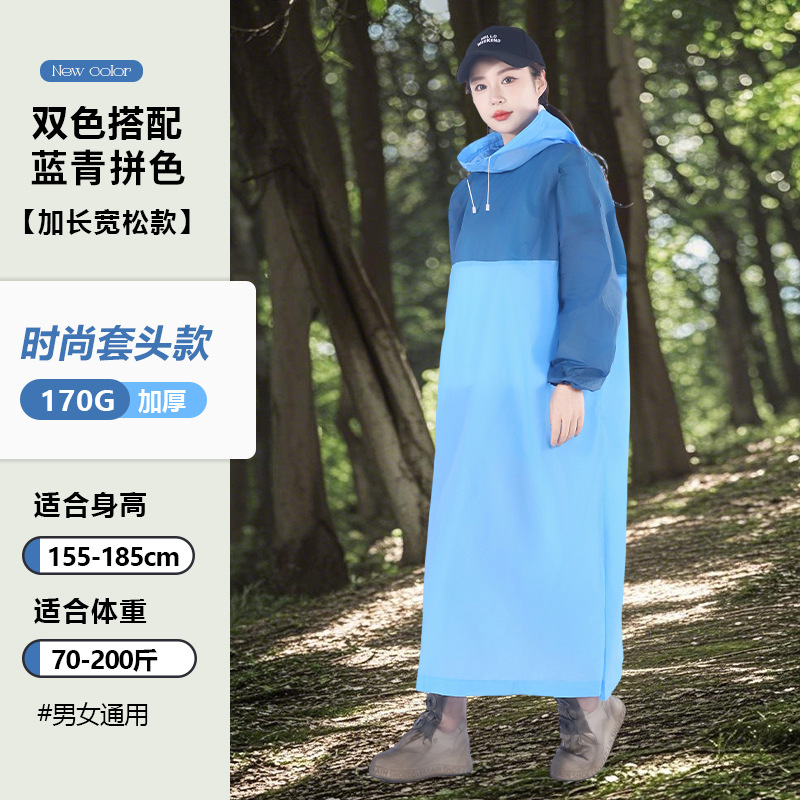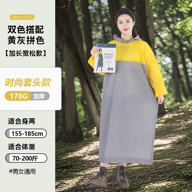 EVA非一次性拼色套头款雨衣成人户外男女加长款游徒步磨砂雨衣
