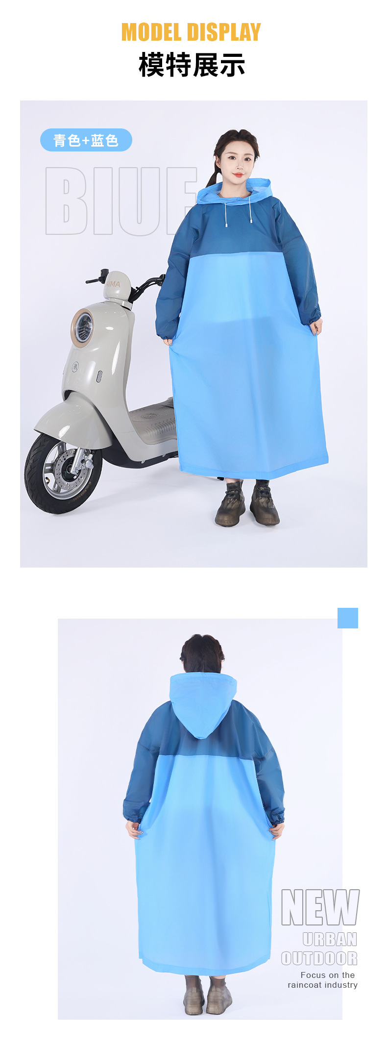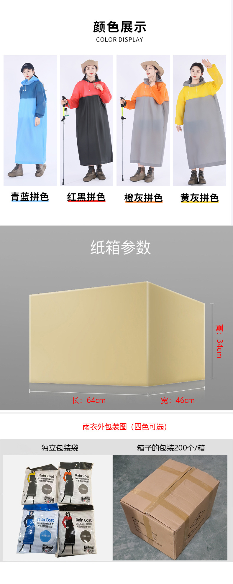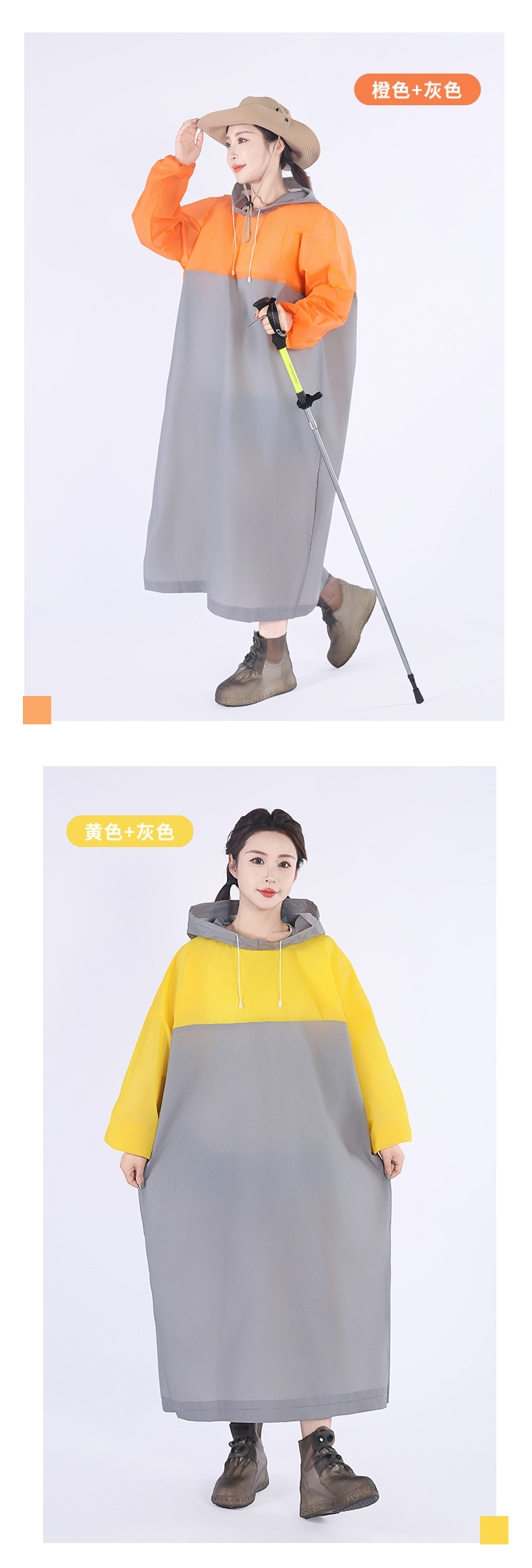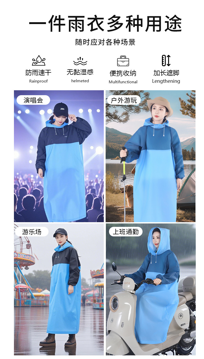 EVA非一次性拼色套头款雨衣成人户外男女加长款游徒步磨砂雨衣