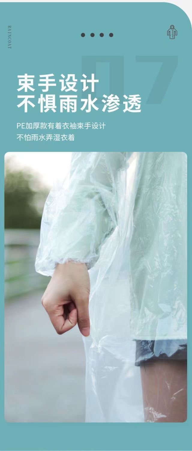 批发雨衣一次性带帽檐束口PE防水成人雨披便携连体连帽防暴雨长款