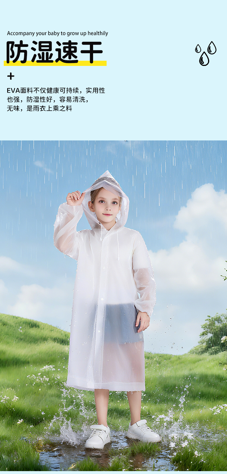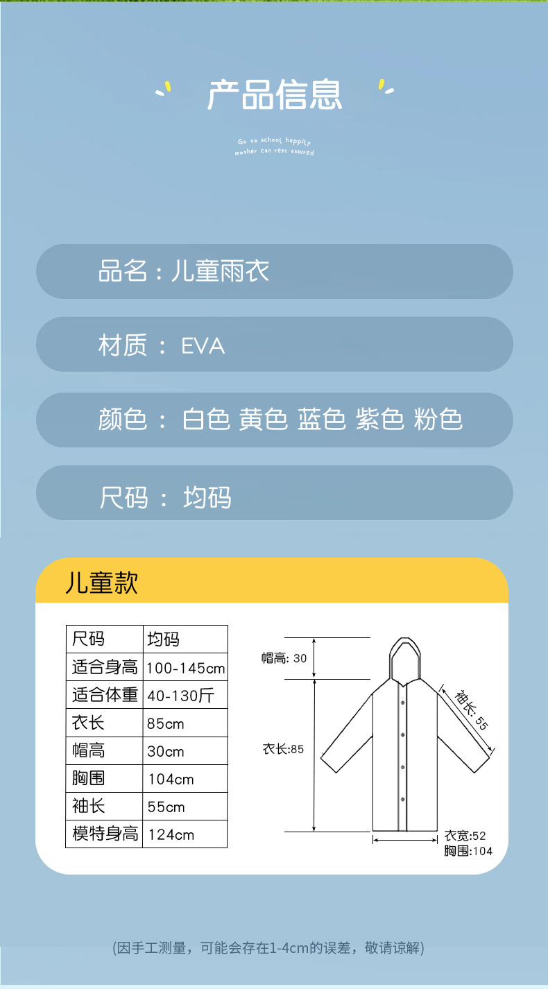 EVA儿童雨衣非一次性轻薄户外长款全身防暴雨儿童登山便携式雨披