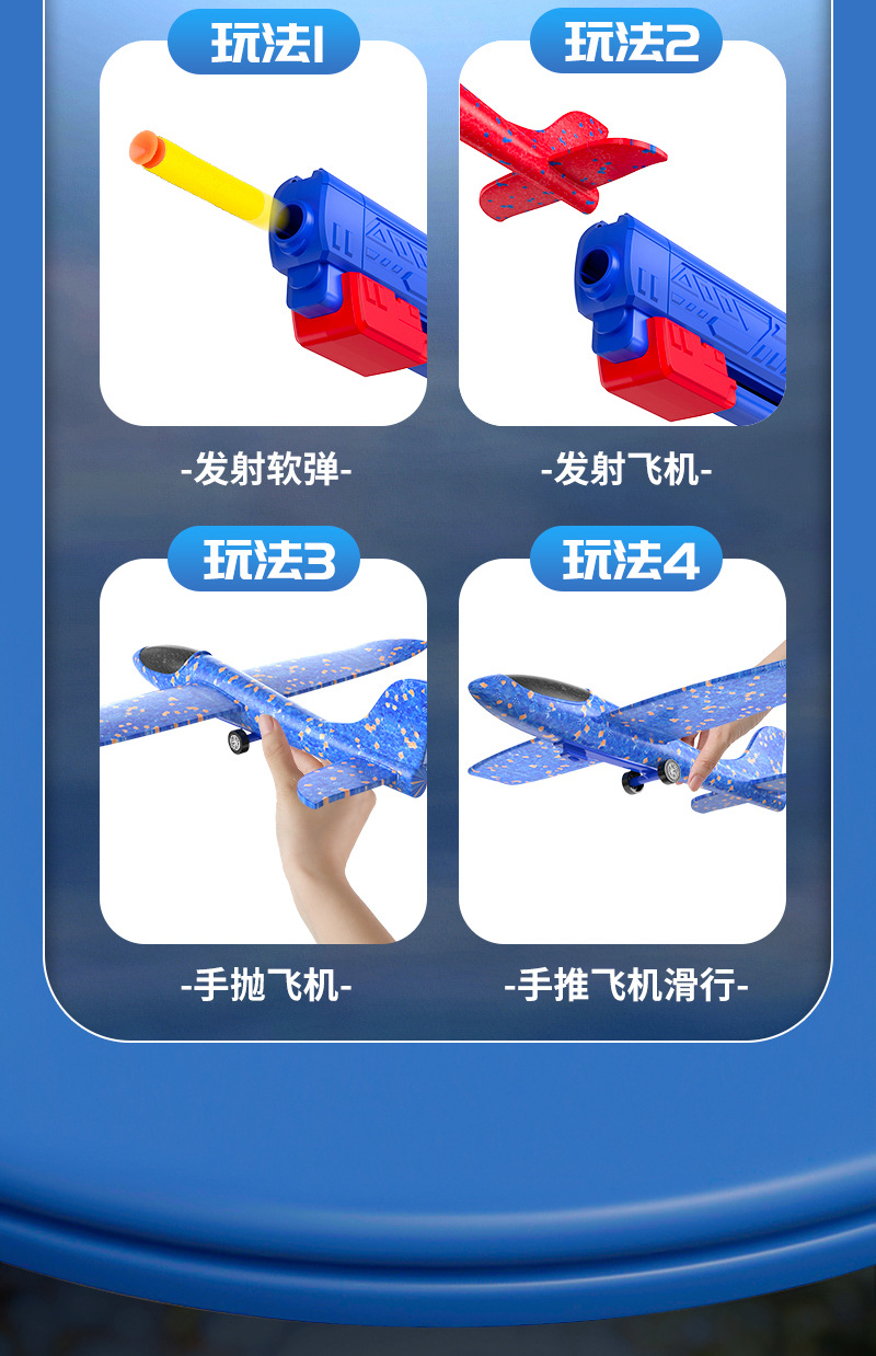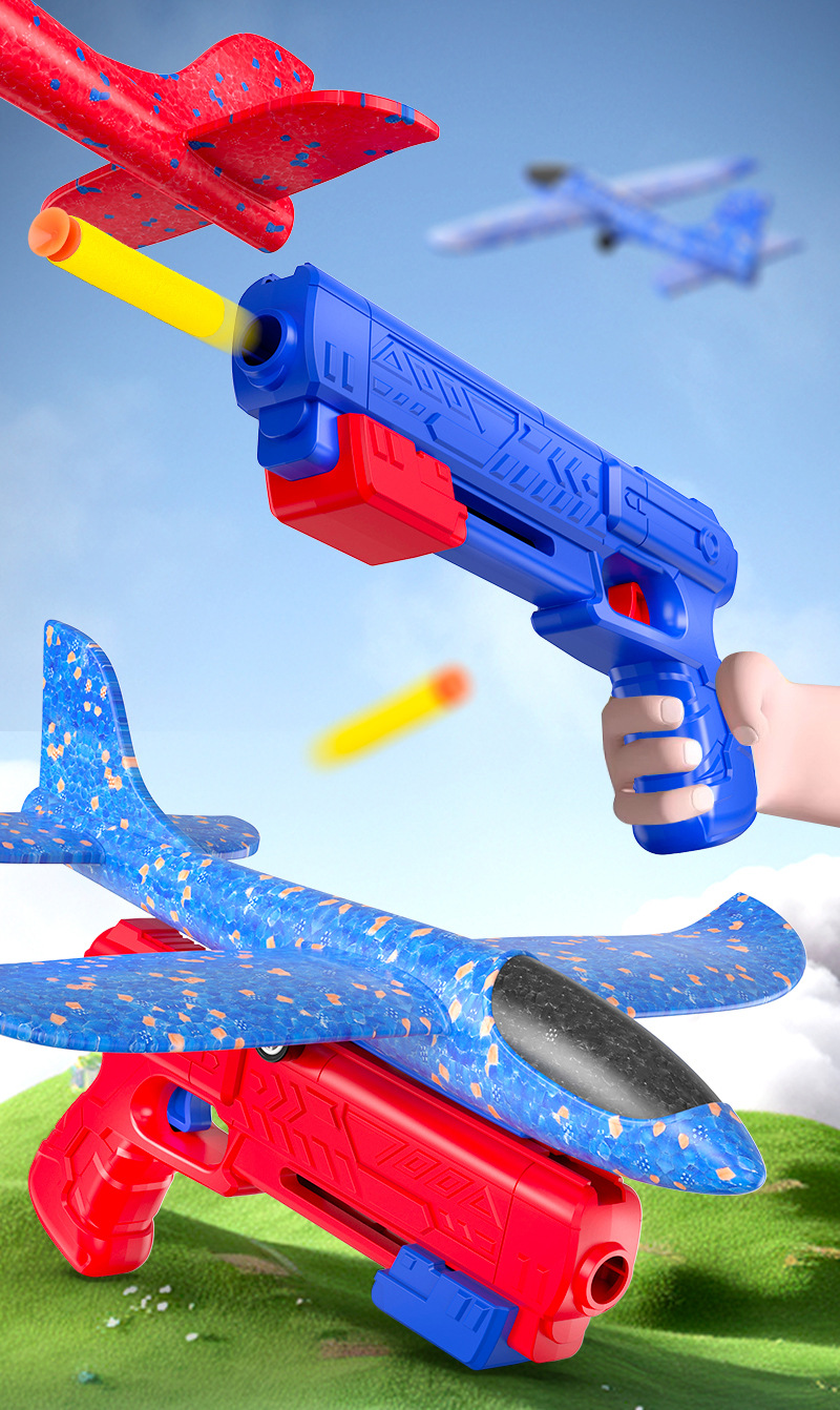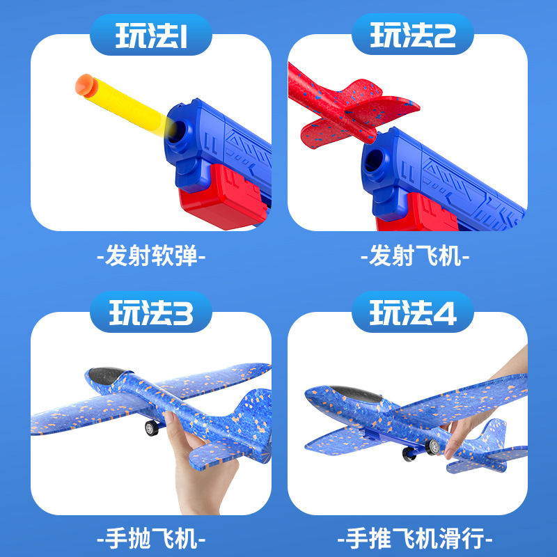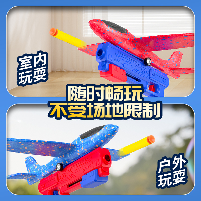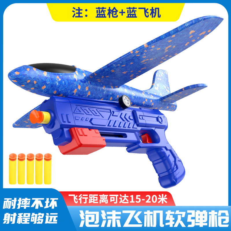 跨境儿童弹射泡沫滑翔飞机枪玩具男孩子弹射软弹枪玩具摆地摊批发