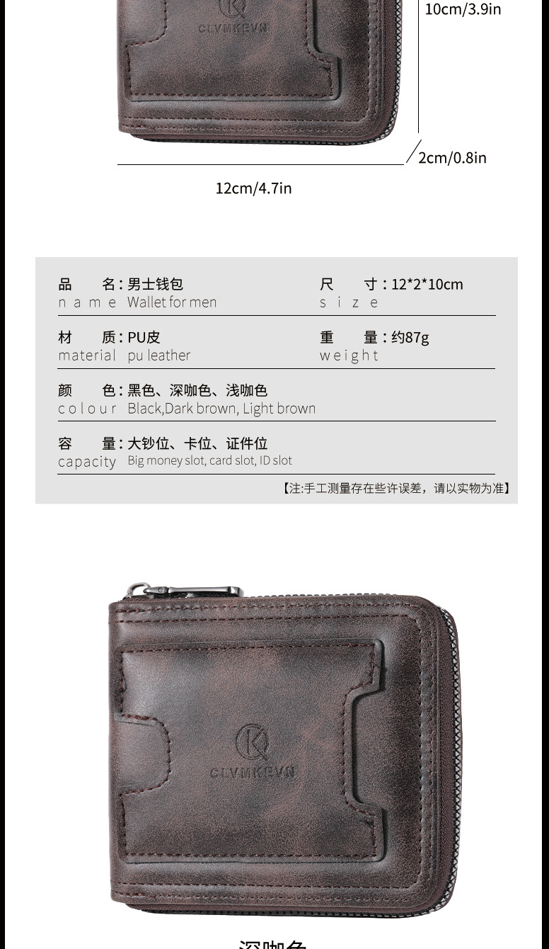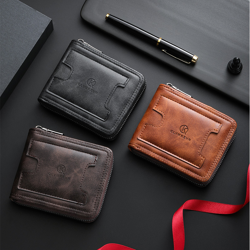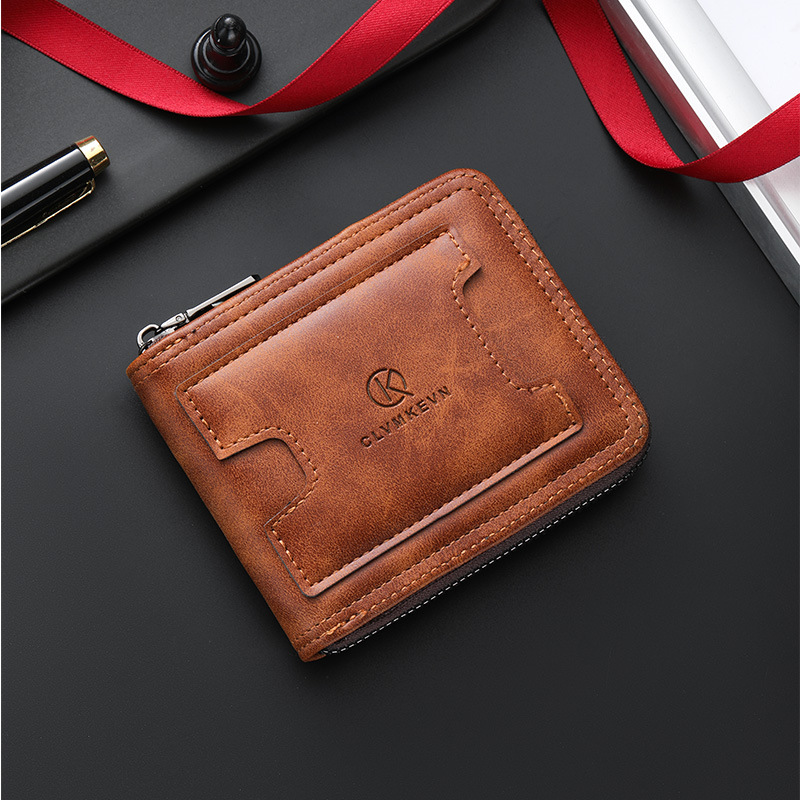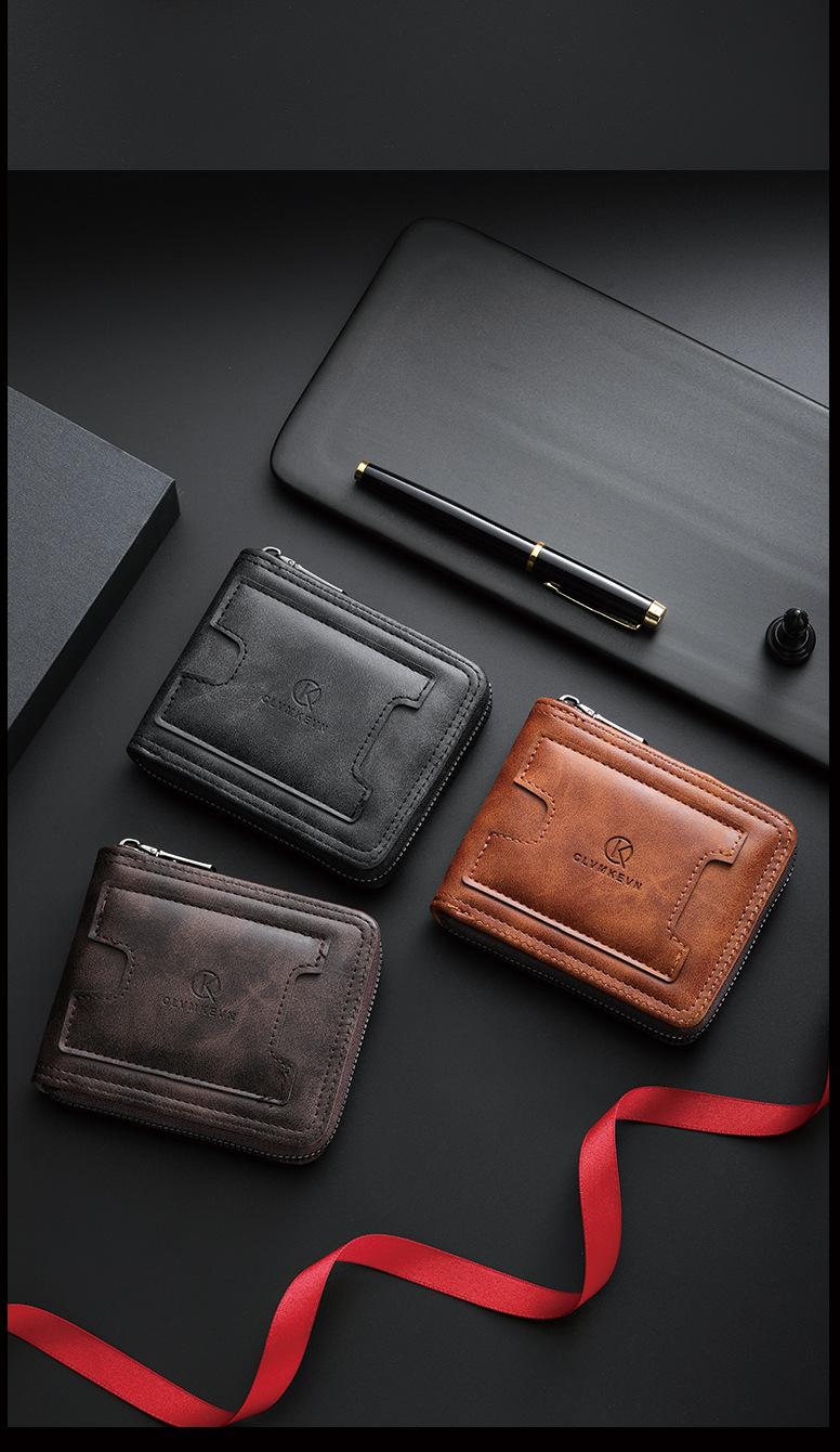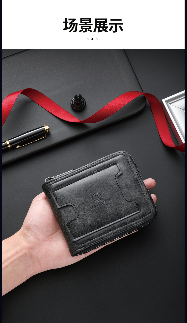 新款男士拉链短款钱包两折美金钱夹多功能卡包跨境厂家批发
