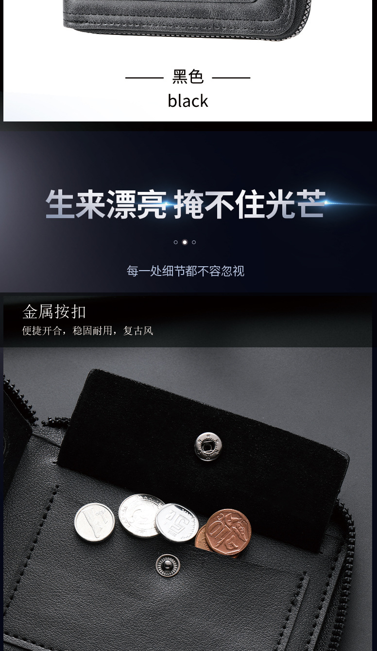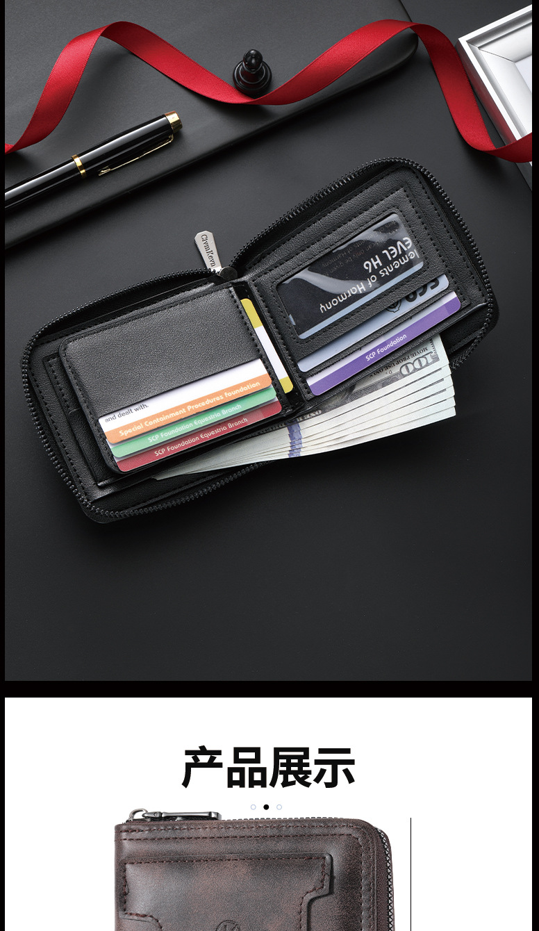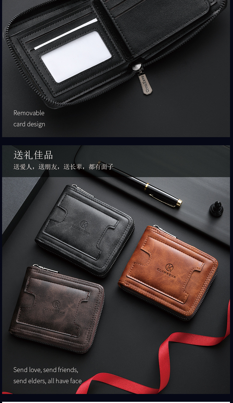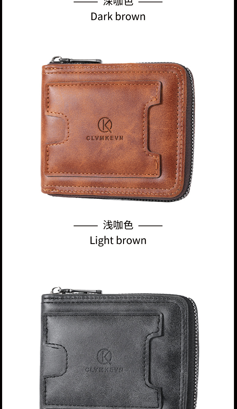 新款男士拉链短款钱包两折美金钱夹多功能卡包跨境厂家批发