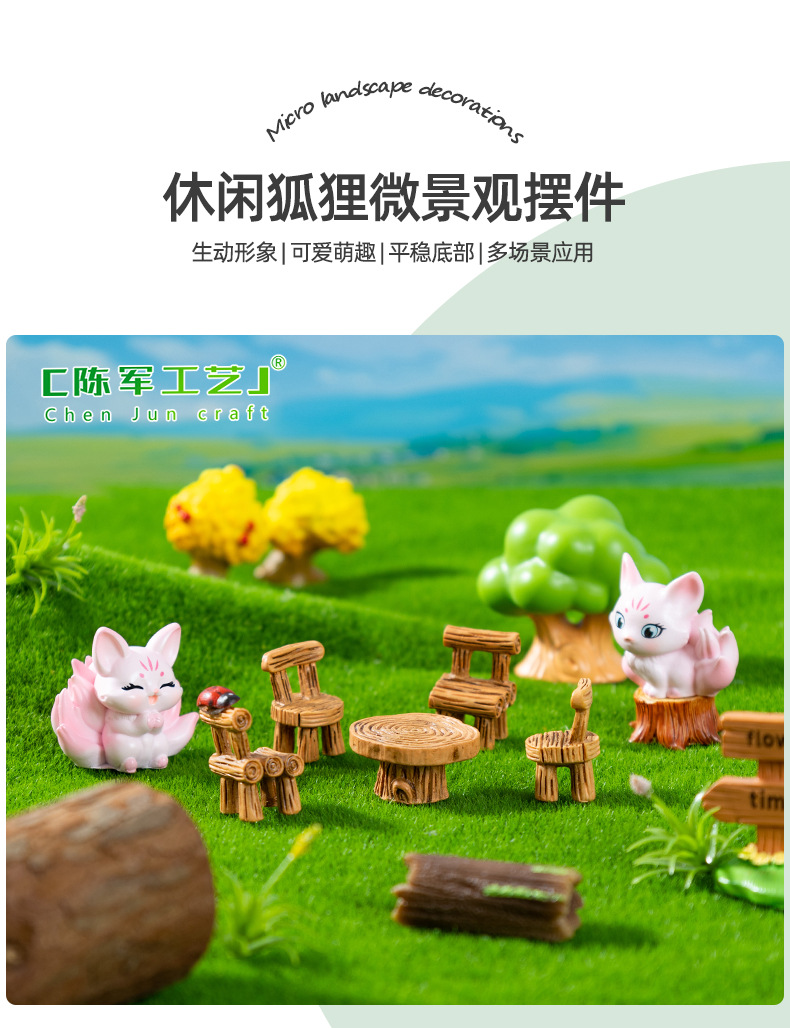 创意复古桌椅板凳小狐仙 园艺造景diy装饰品配件迷你微景观小摆件