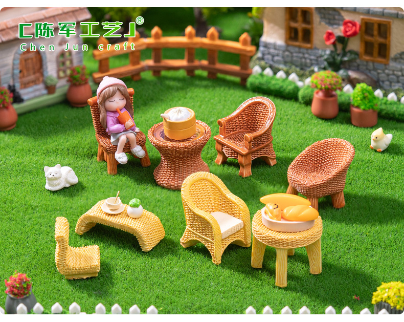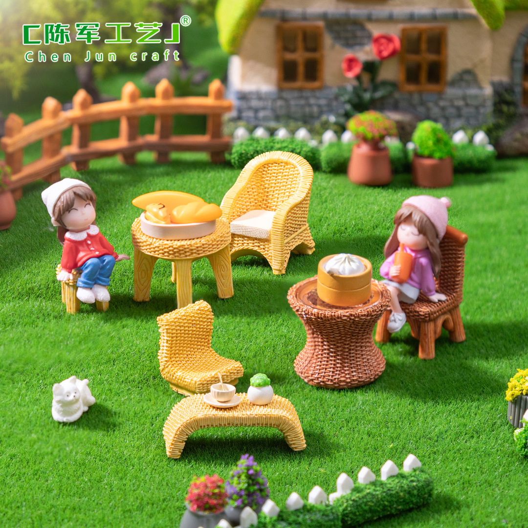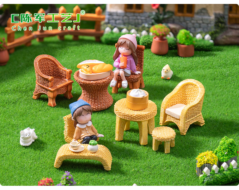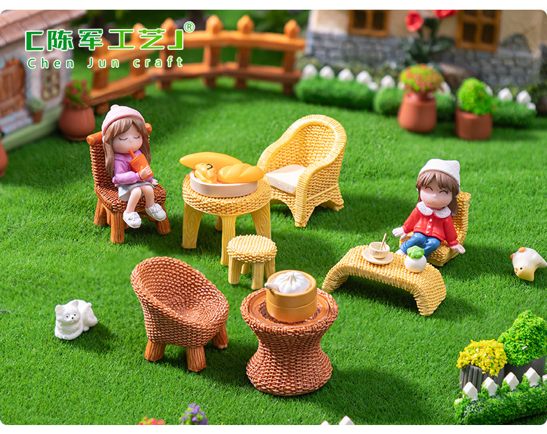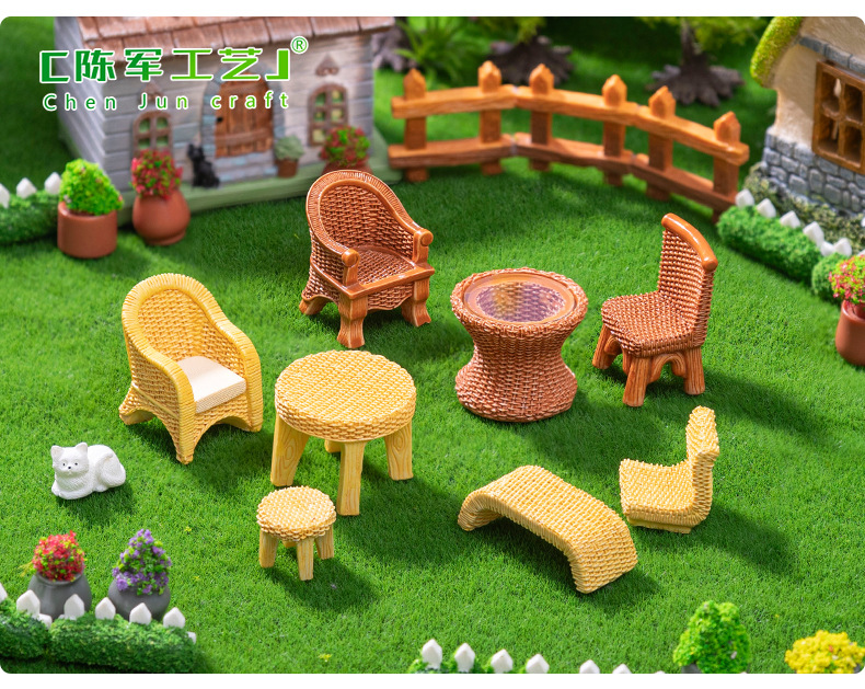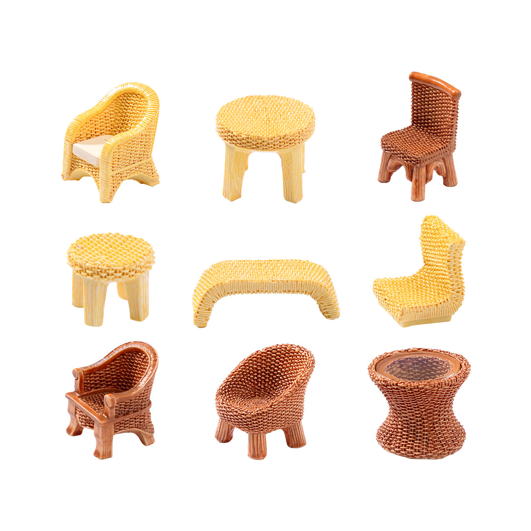 仿真竹编桌子椅子家具 娃娃屋diy装饰品盲袋配件微景观迷你小摆件