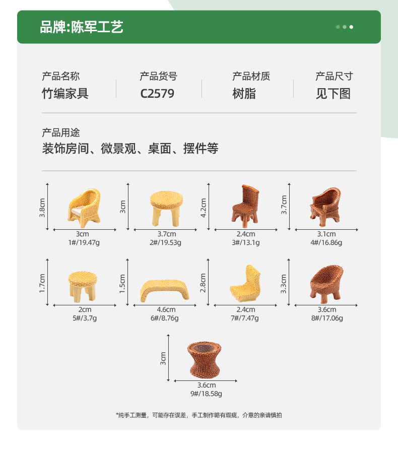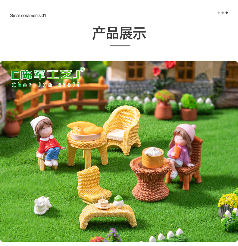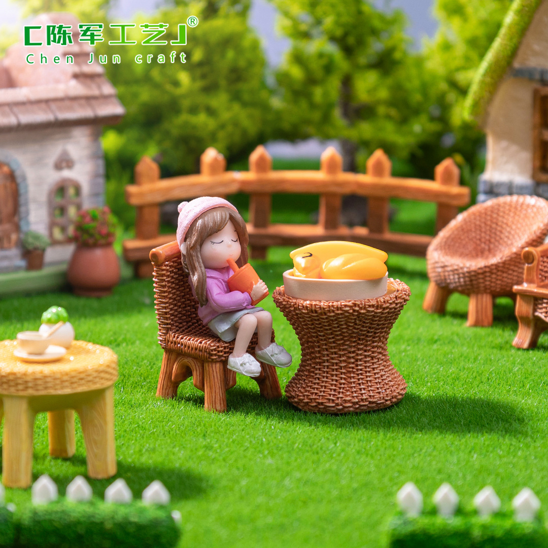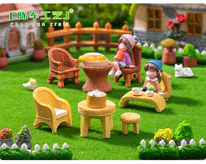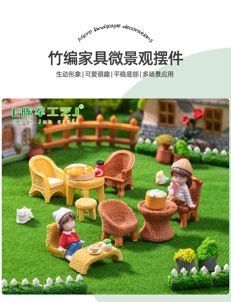 仿真竹编桌子椅子家具 娃娃屋diy装饰品盲袋配件微景观迷你小摆件