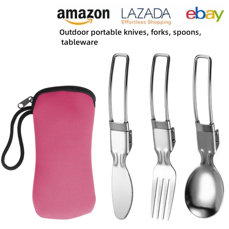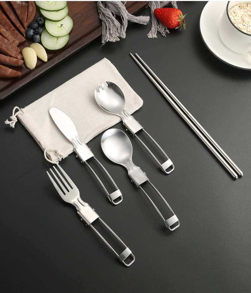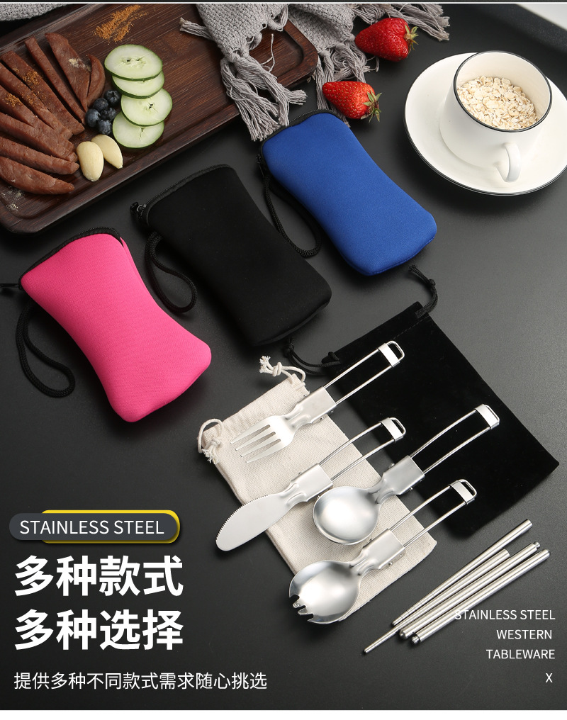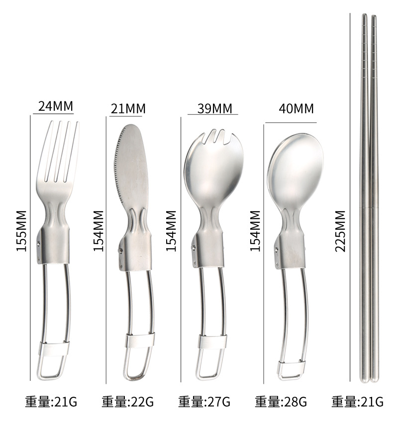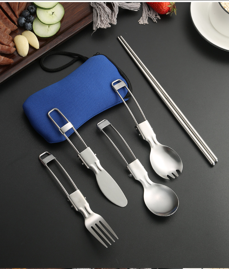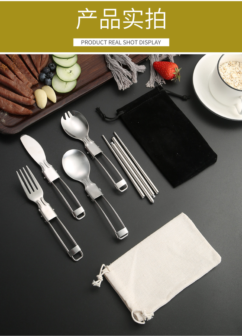 亚马逊304不锈钢折叠餐具刀叉筷子勺子叉子户外野餐便携餐具套装