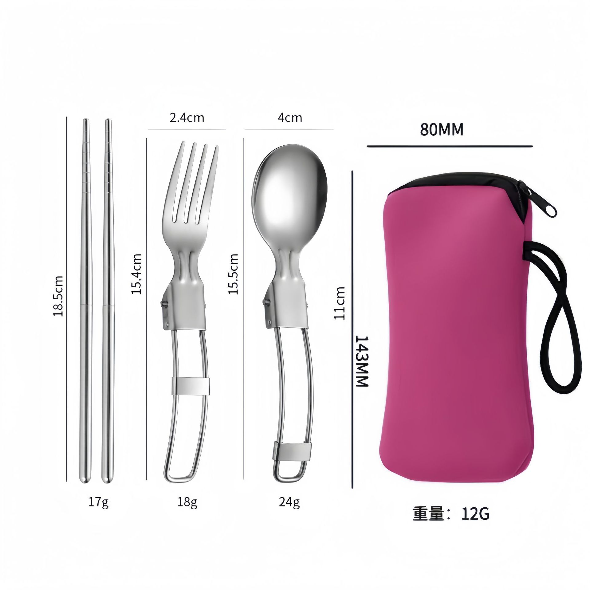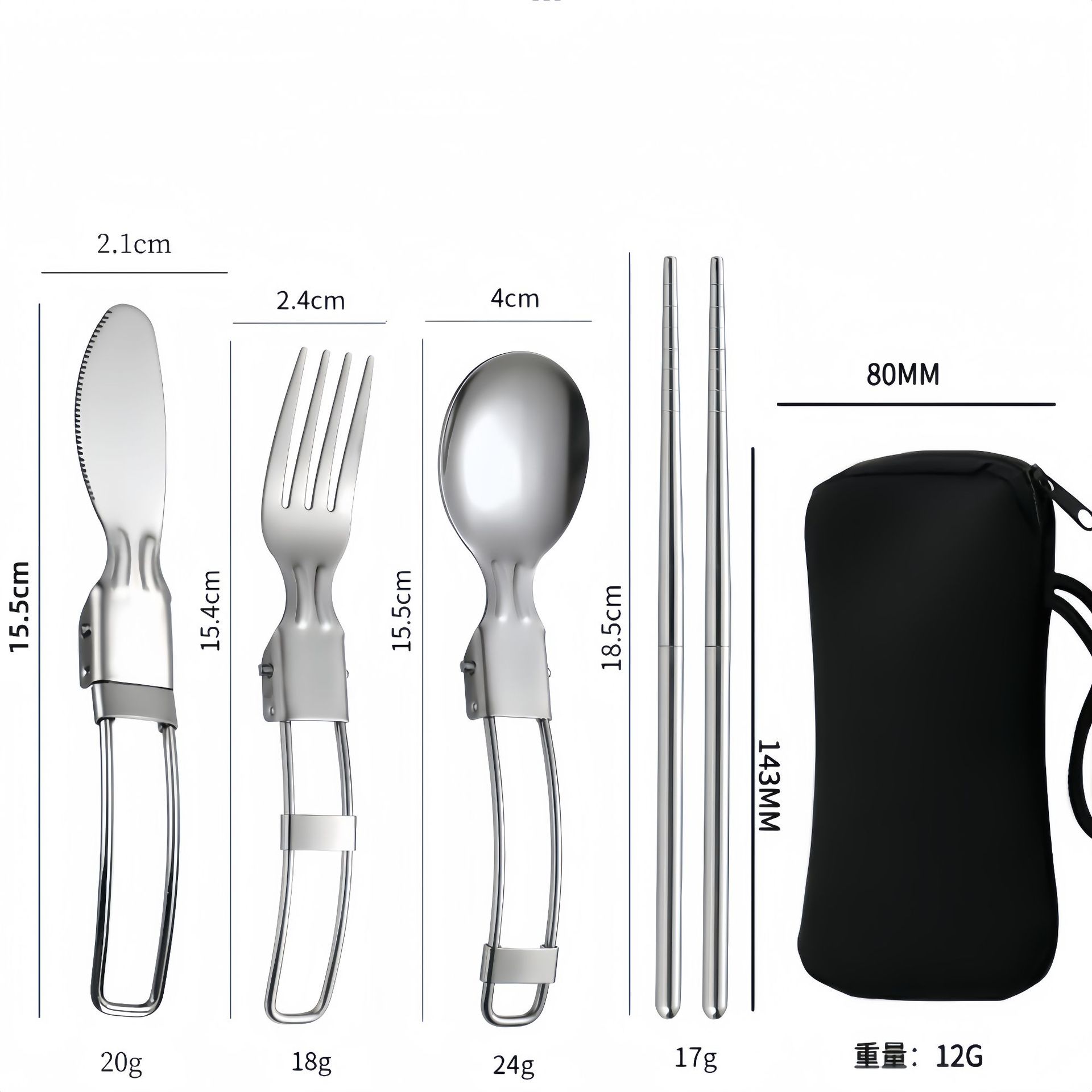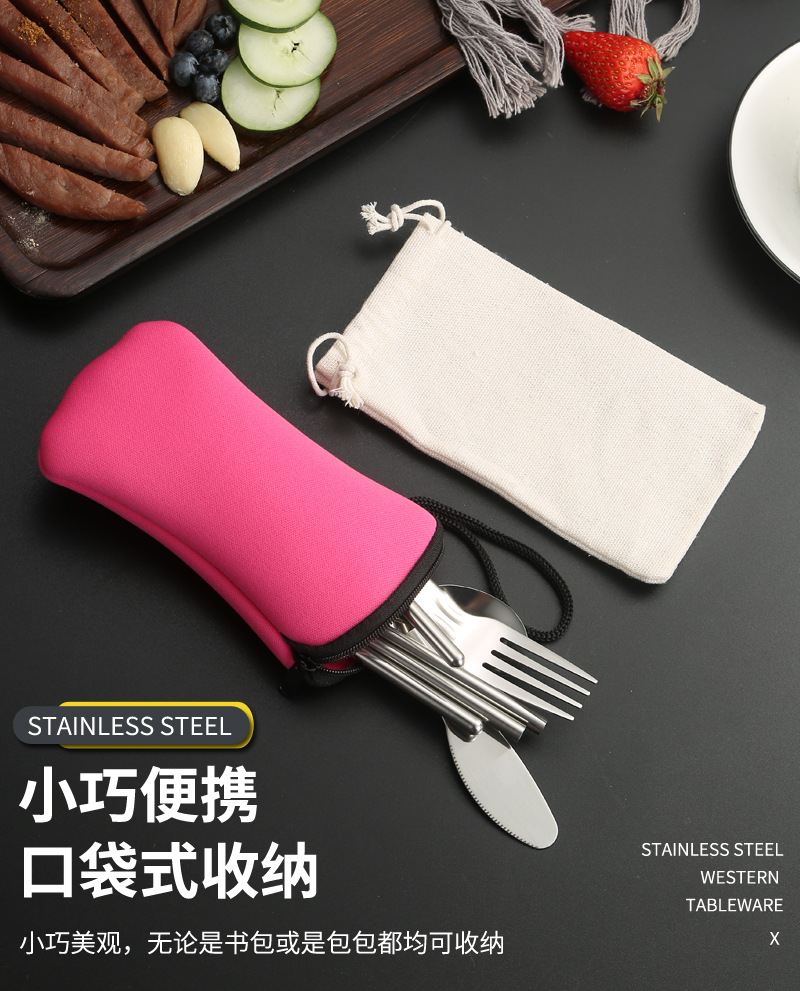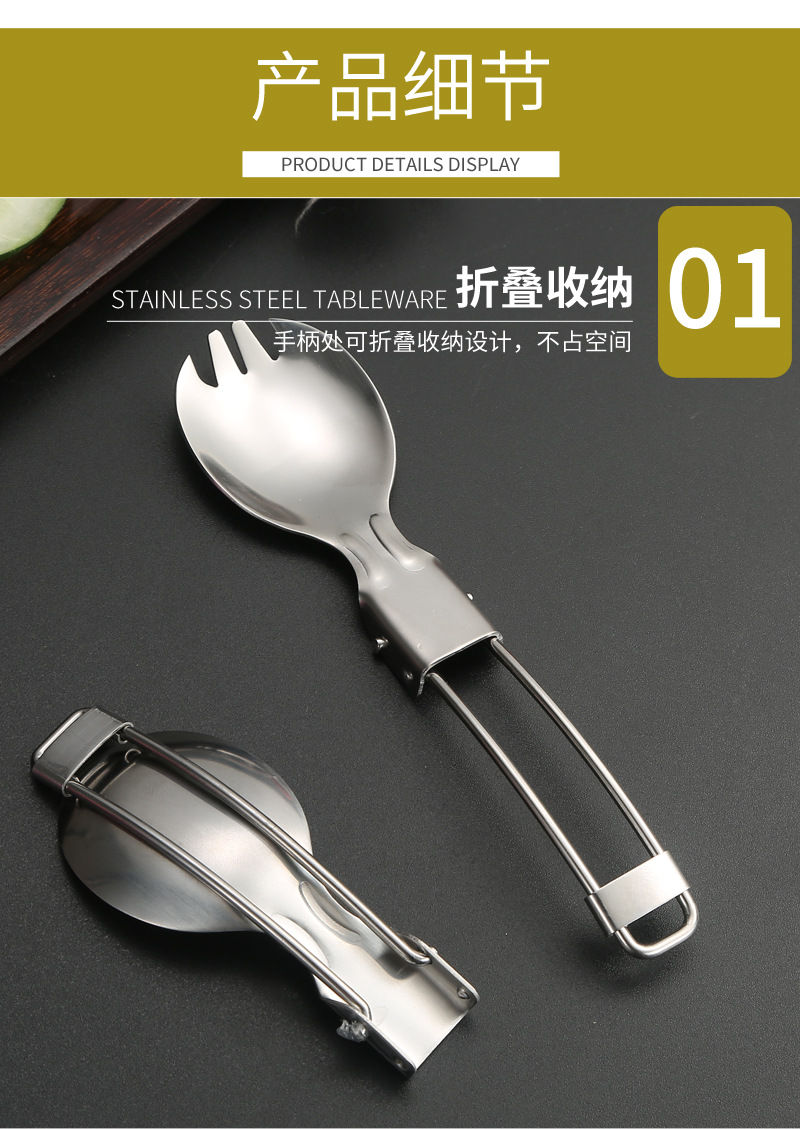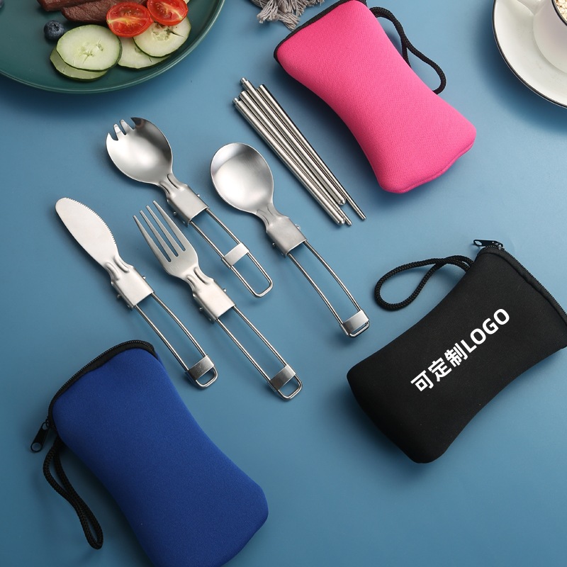 亚马逊304不锈钢折叠餐具刀叉筷子勺子叉子户外野餐便携餐具套装