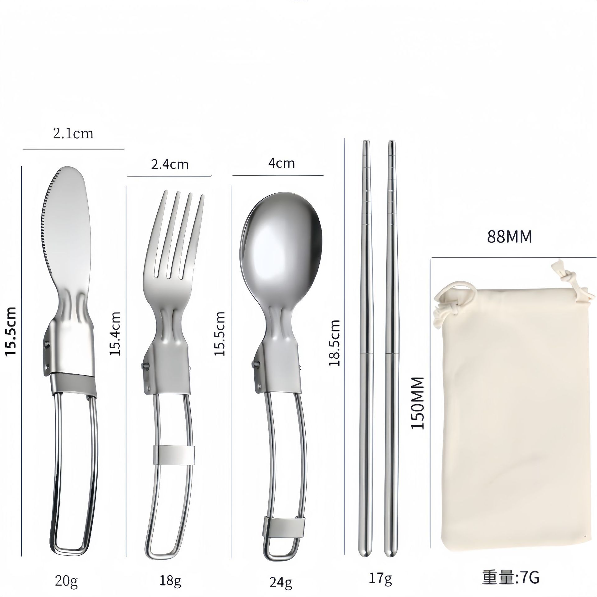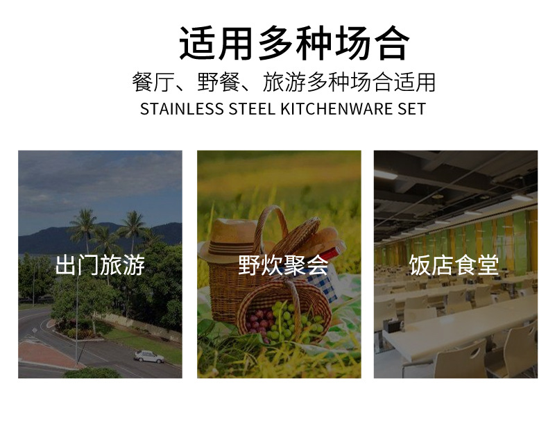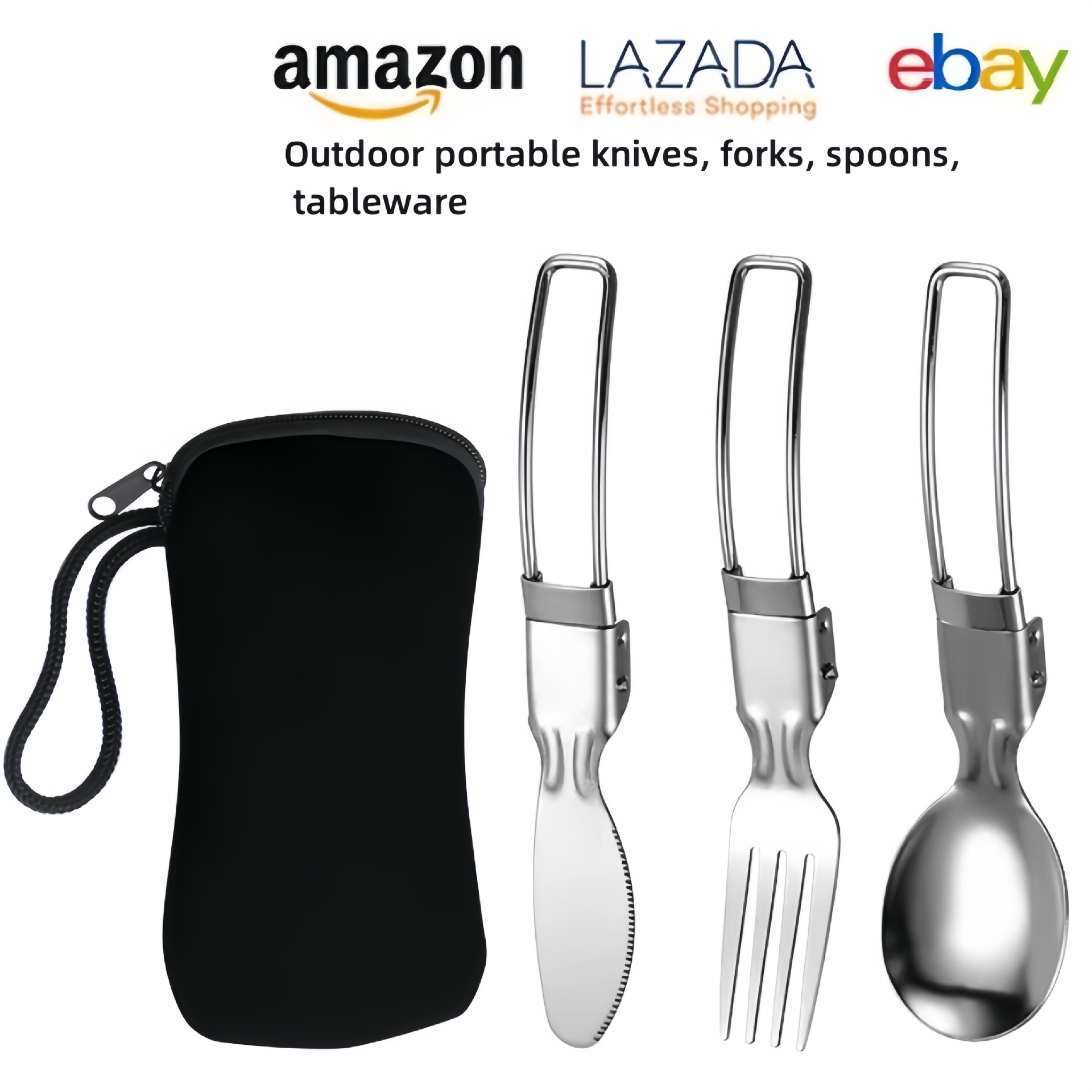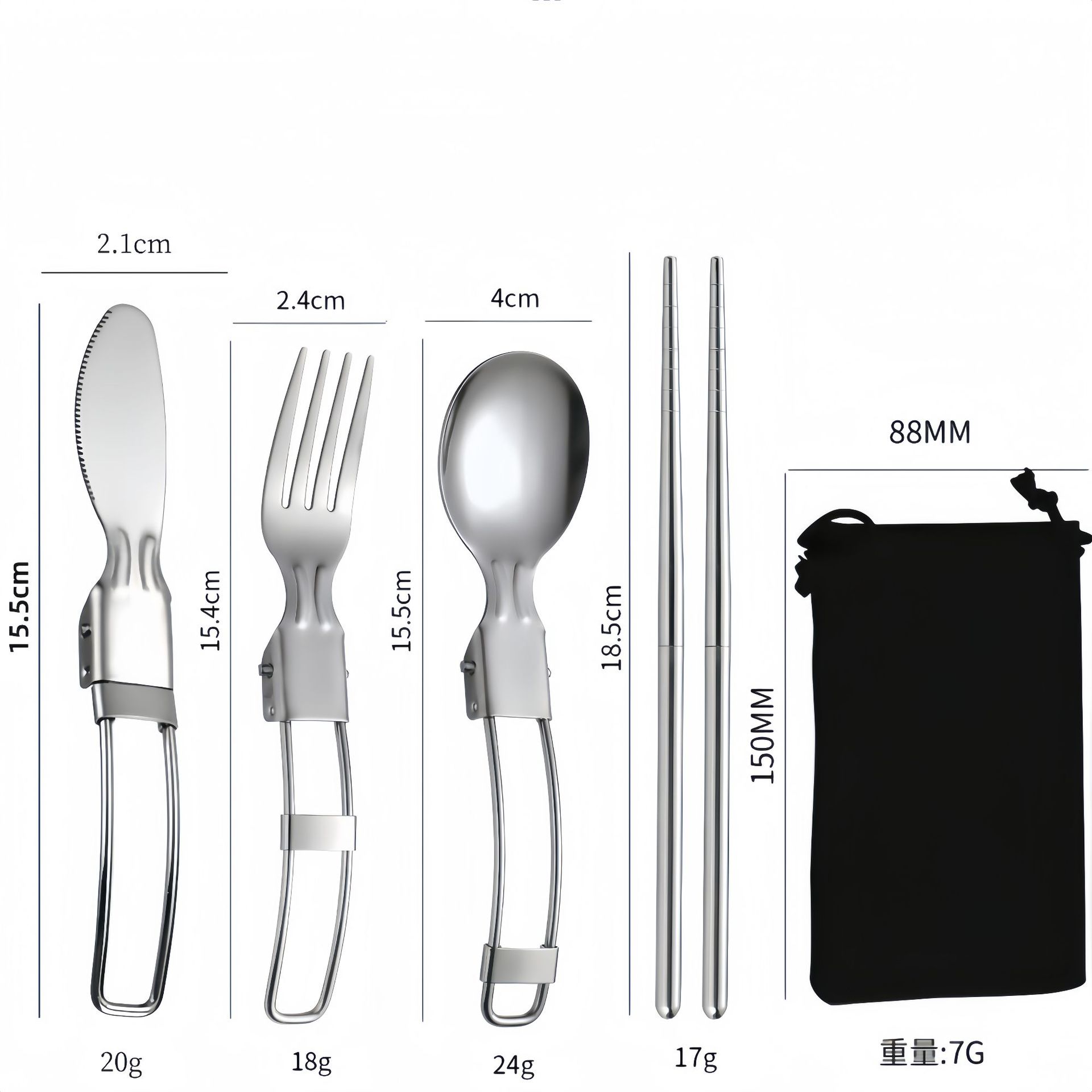 亚马逊304不锈钢折叠餐具刀叉筷子勺子叉子户外野餐便携餐具套装
