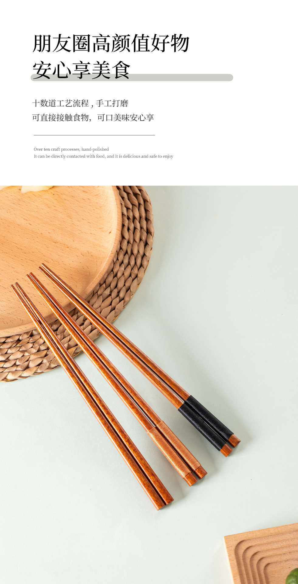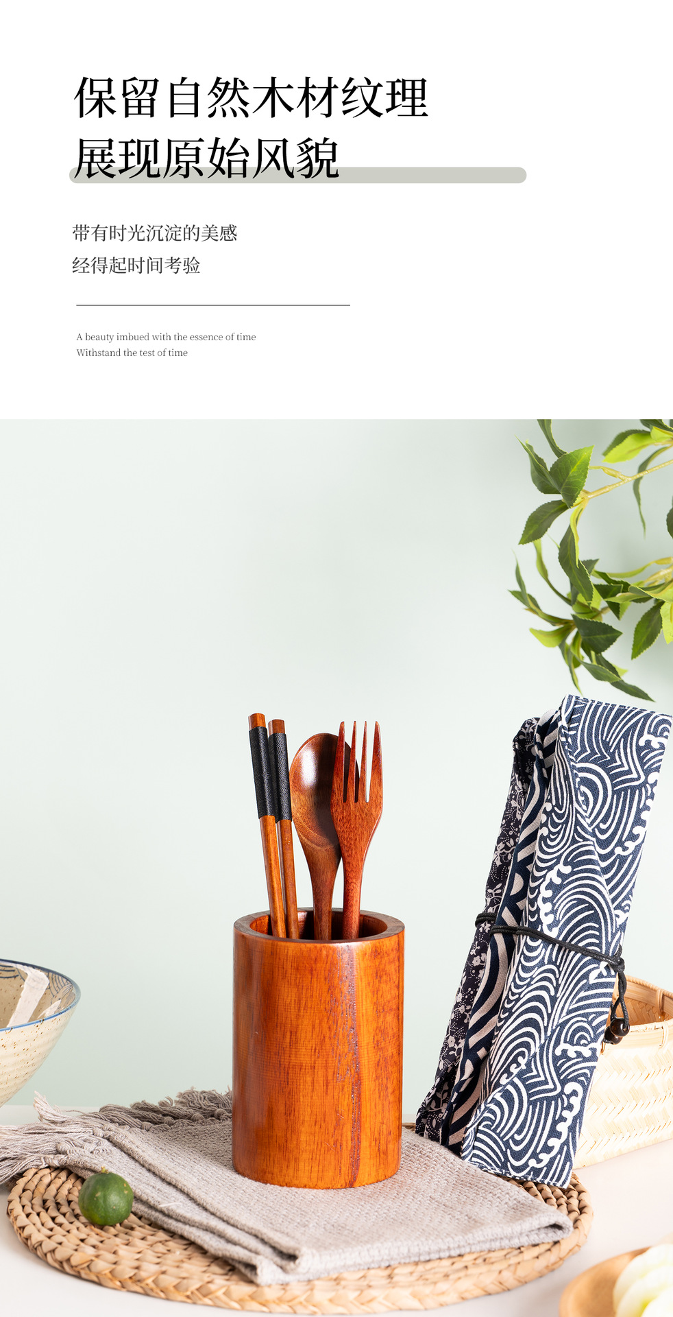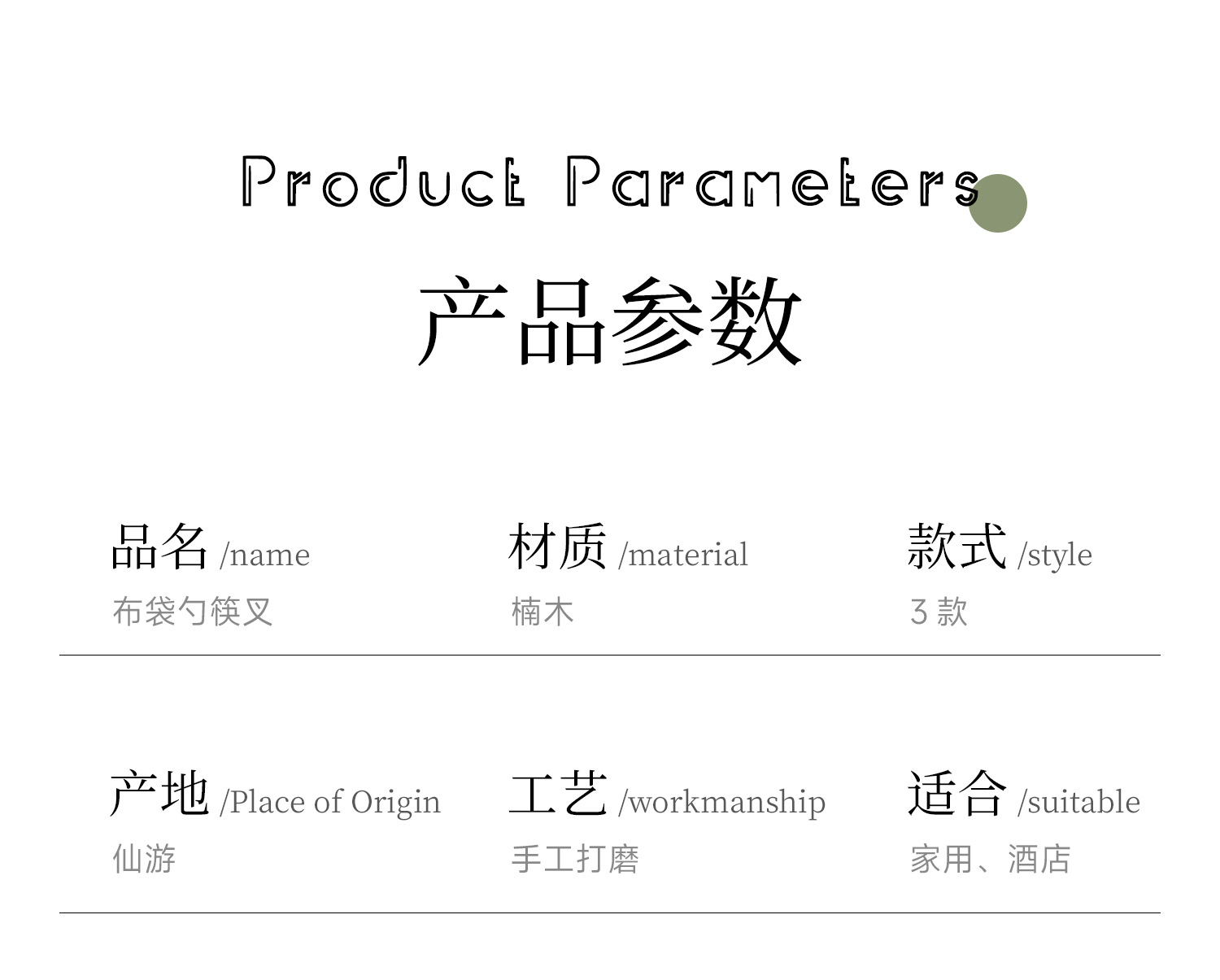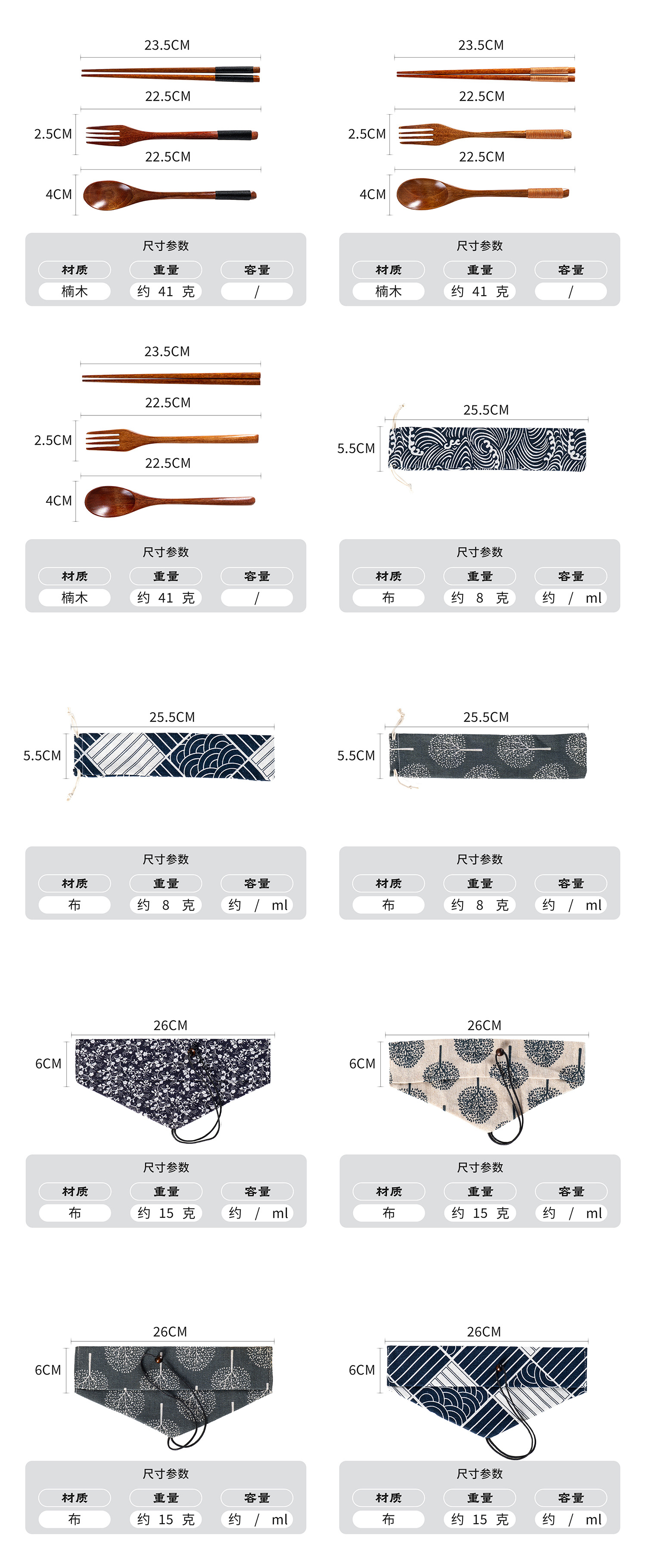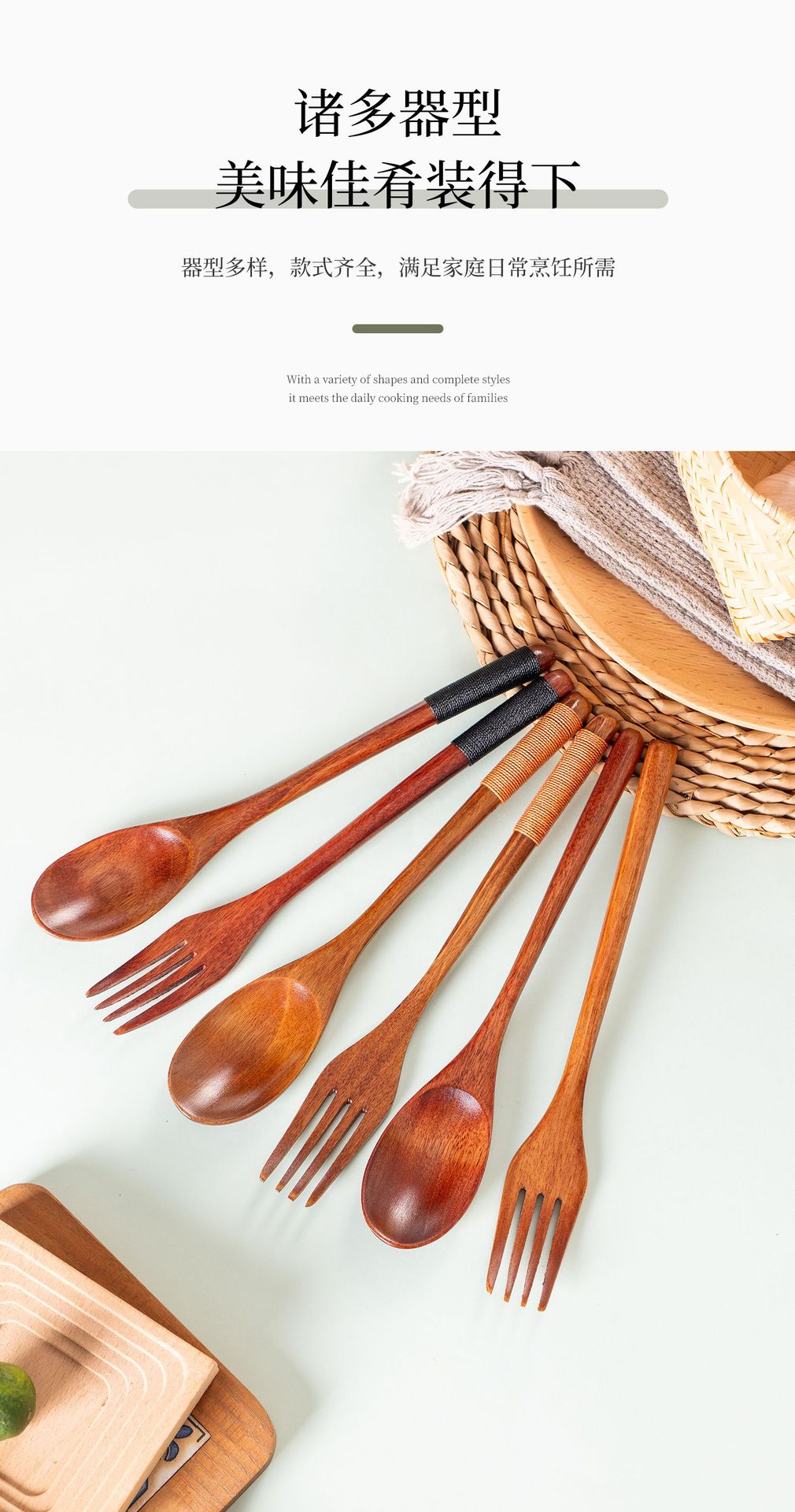 日式缠线楠木勺叉筷三件套跨境防滑实木叉子筷子布袋套装便捷餐具