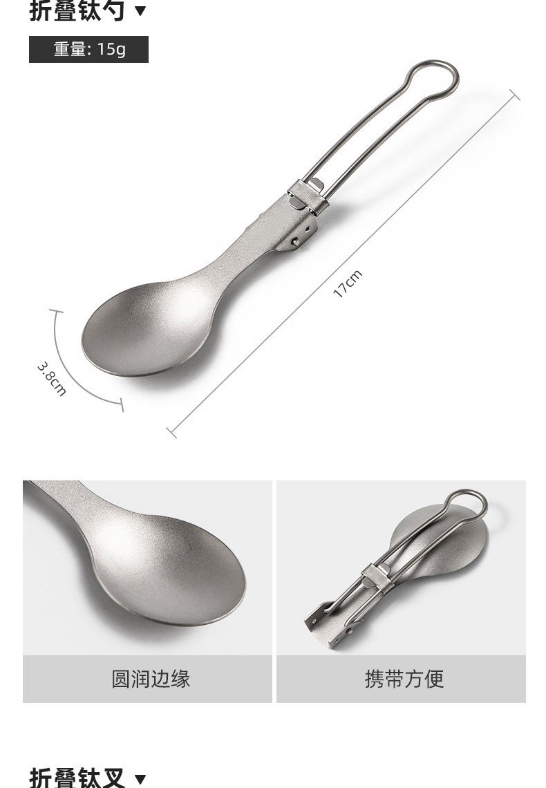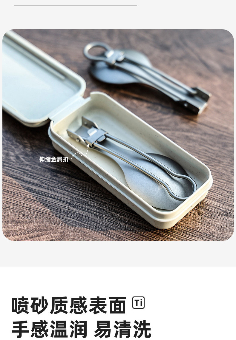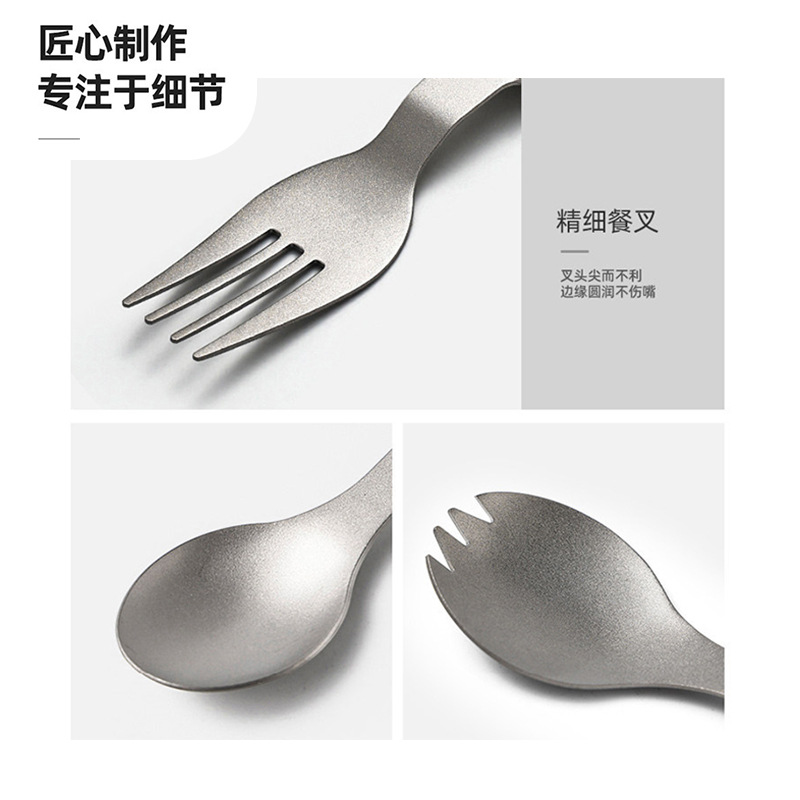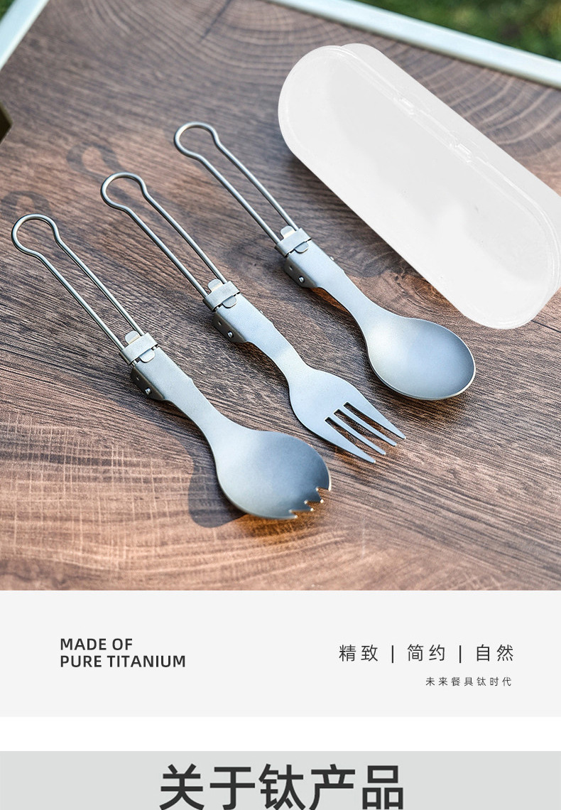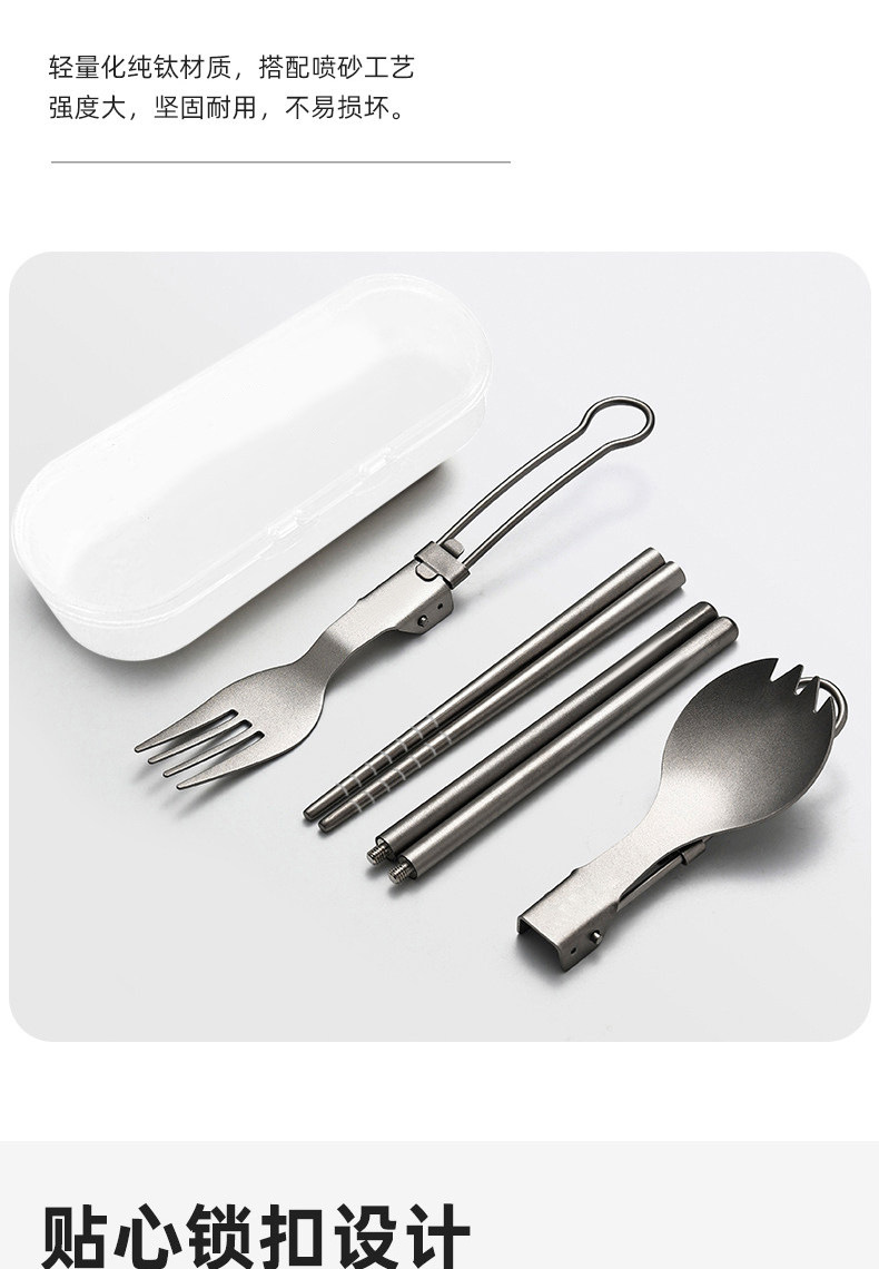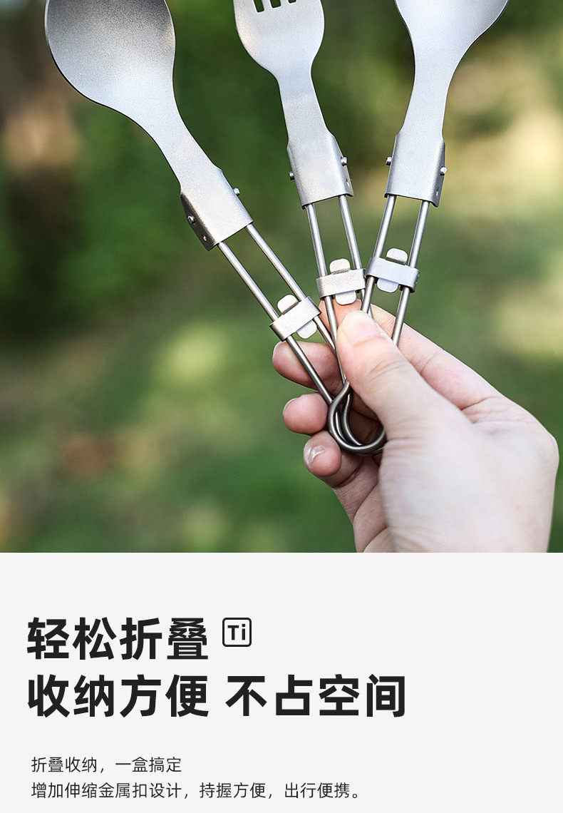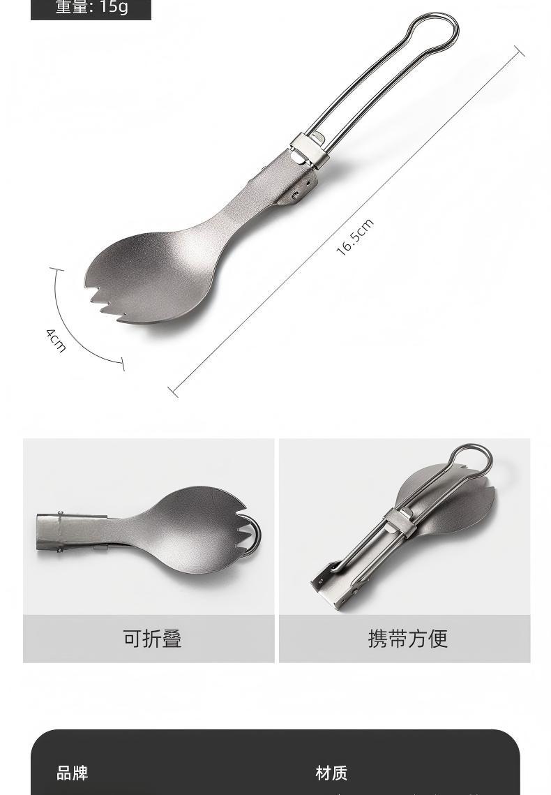 户外纯钛叠勺子叉筷套装露营便携式钛餐具汤勺钛金属勺叉筷组合