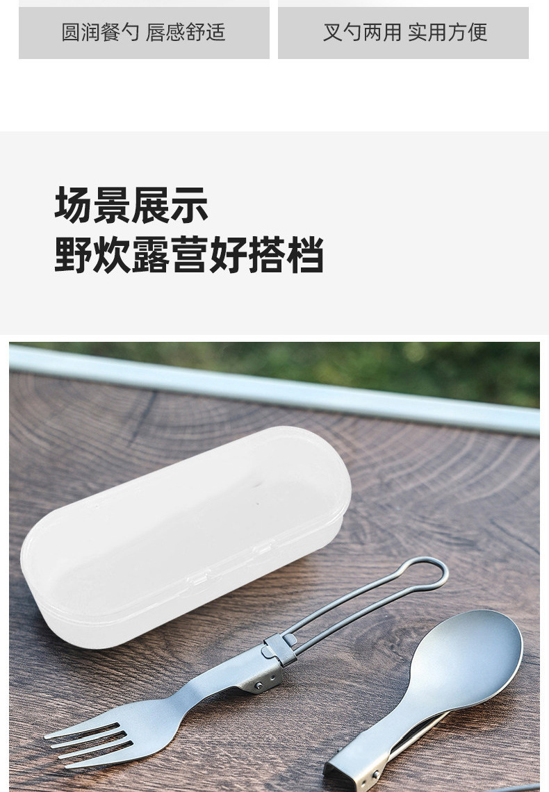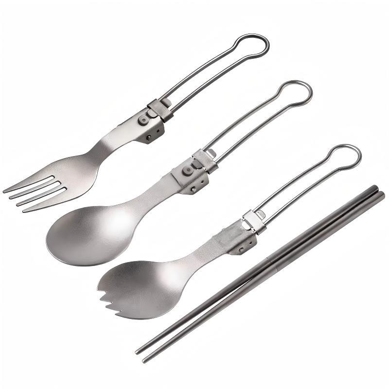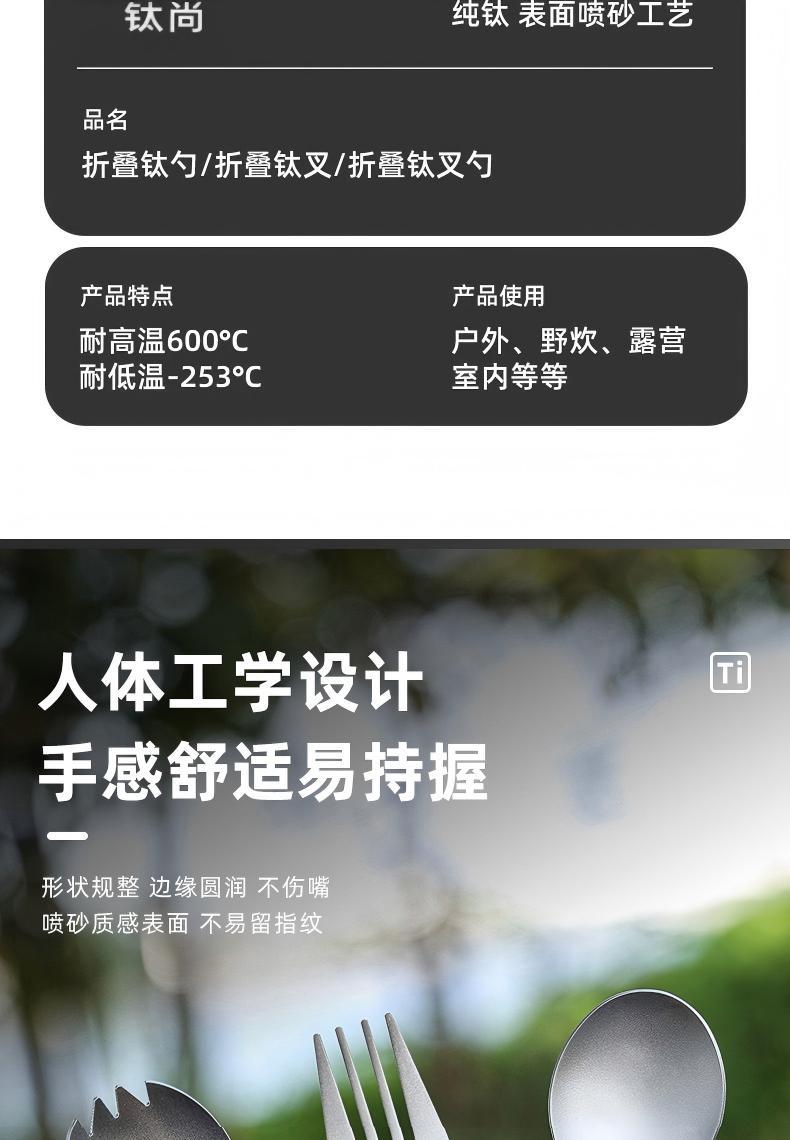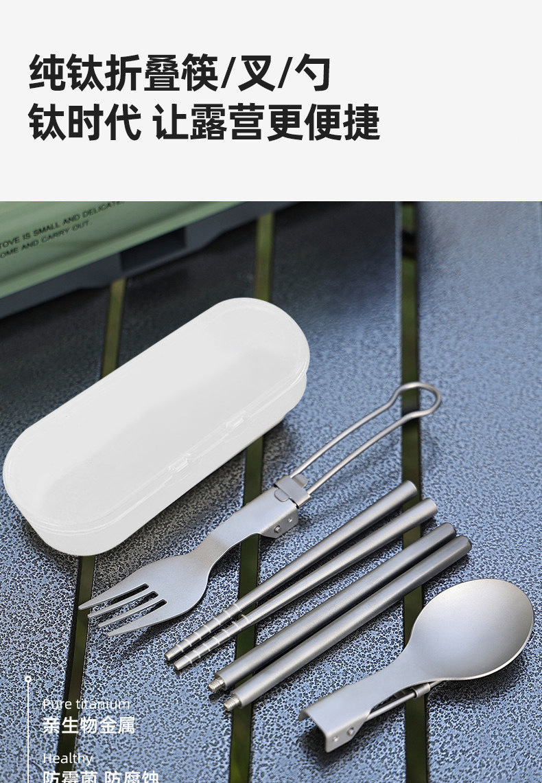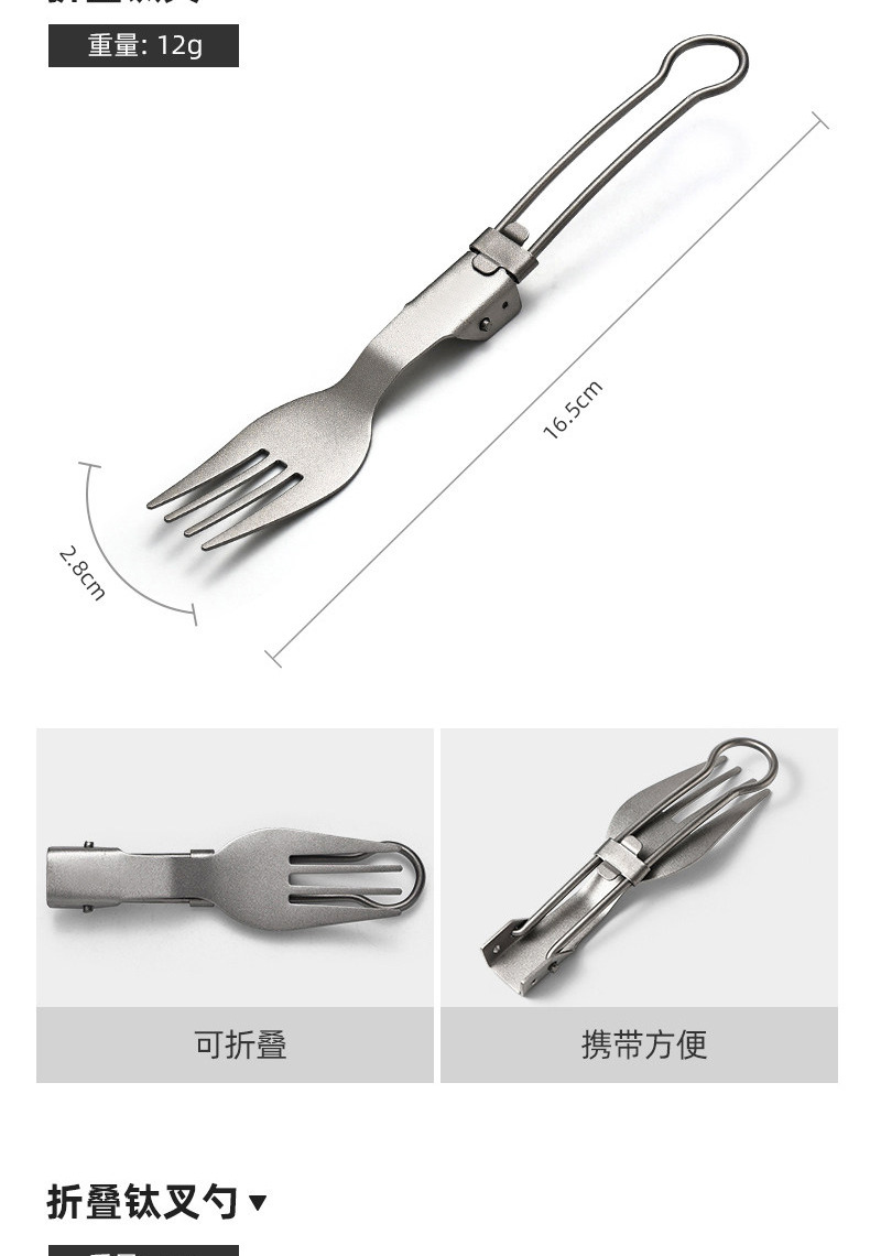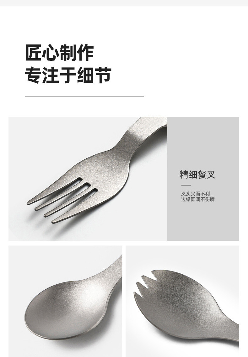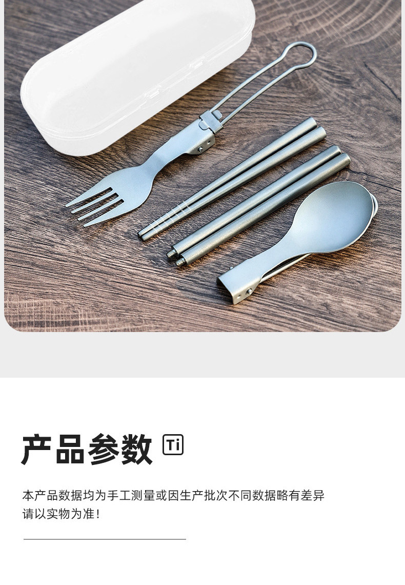 户外纯钛叠勺子叉筷套装露营便携式钛餐具汤勺钛金属勺叉筷组合