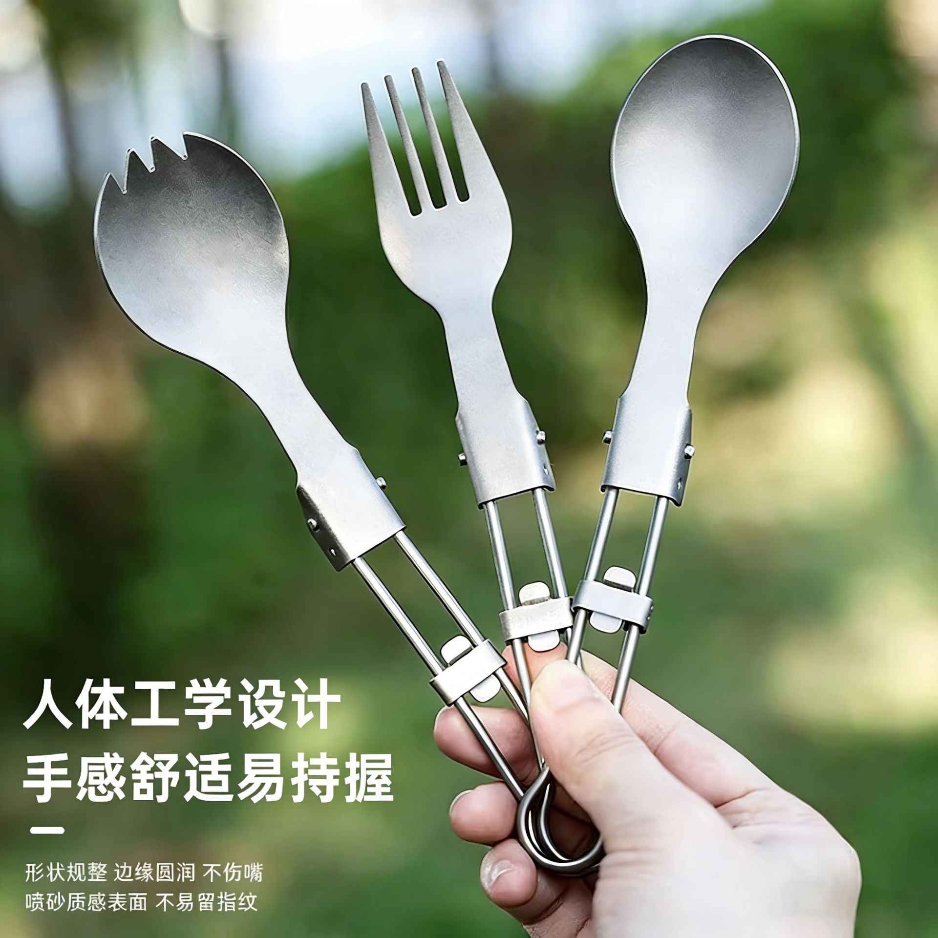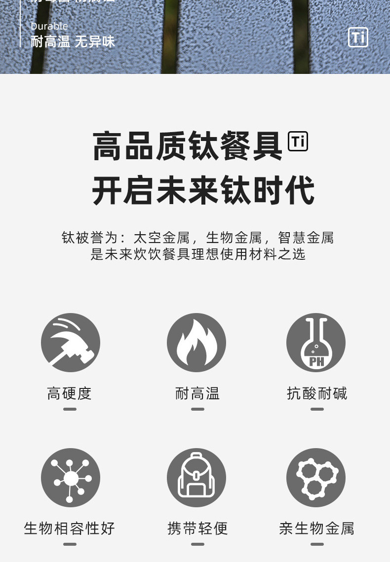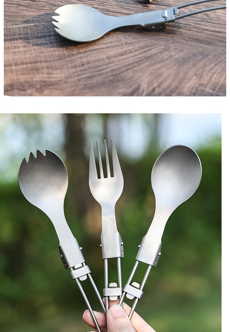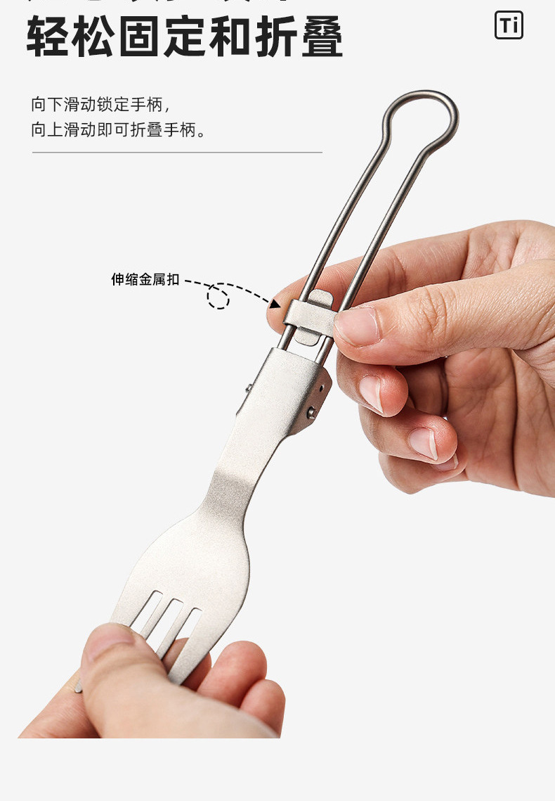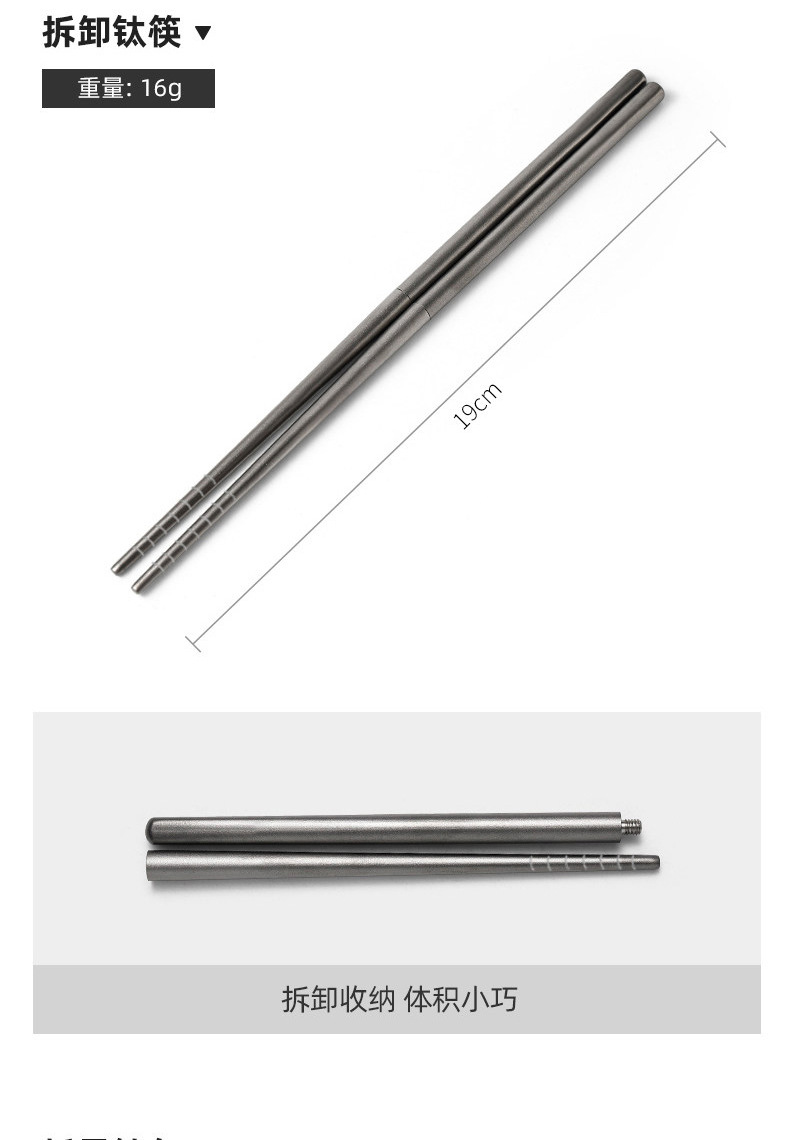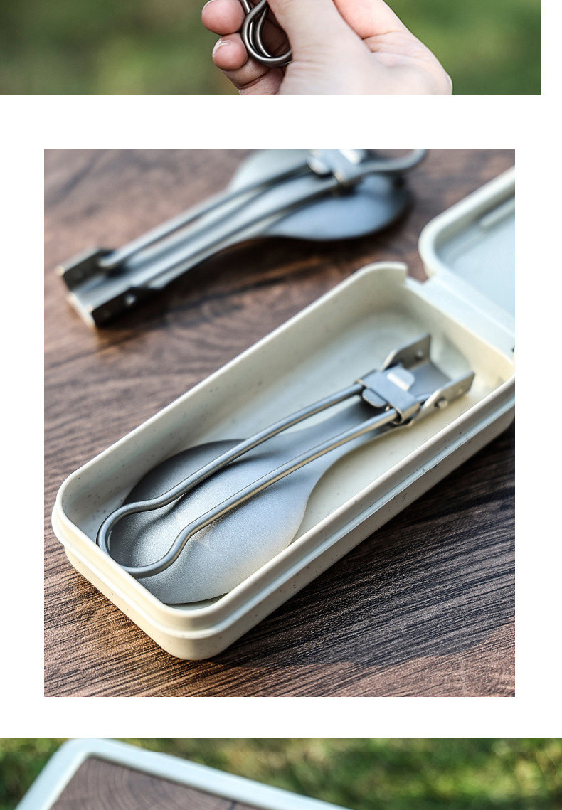 户外纯钛叠勺子叉筷套装露营便携式钛餐具汤勺钛金属勺叉筷组合