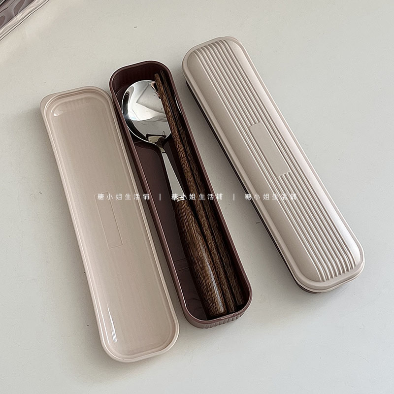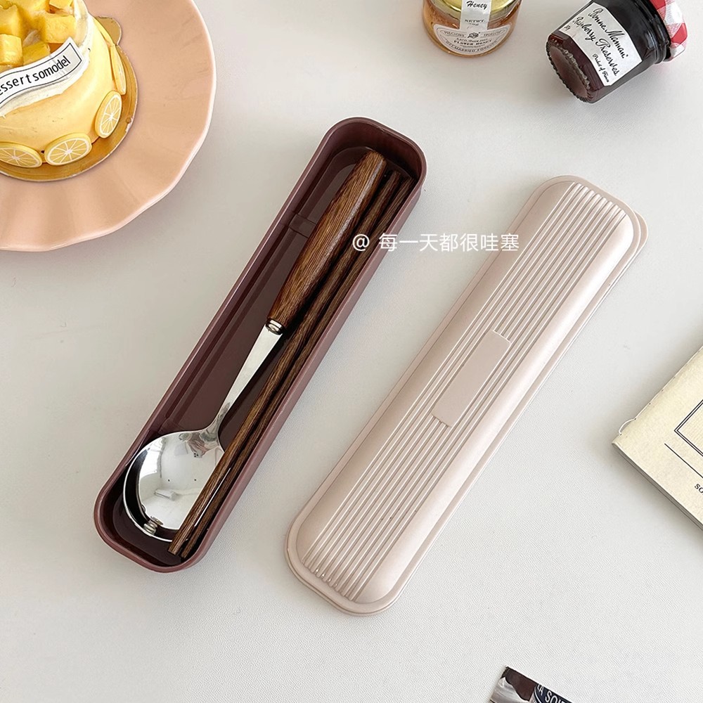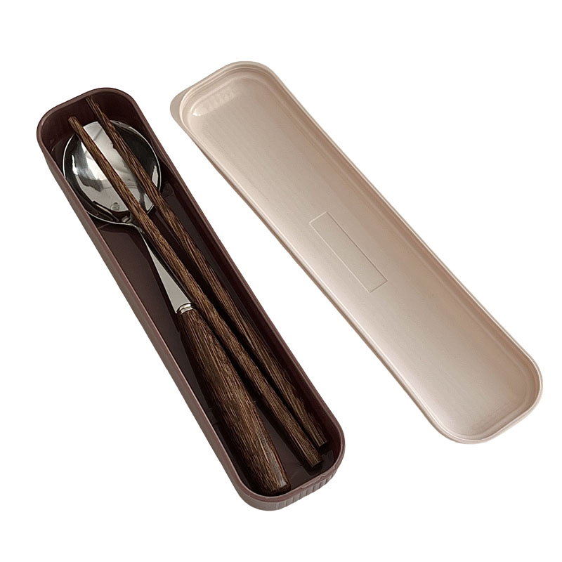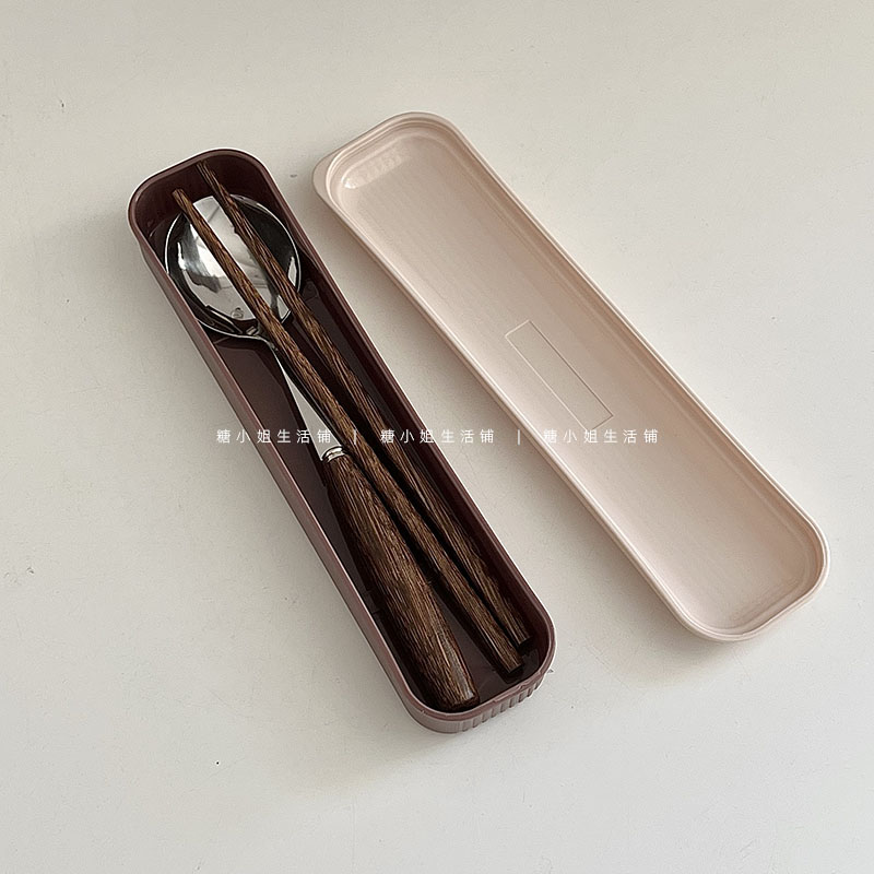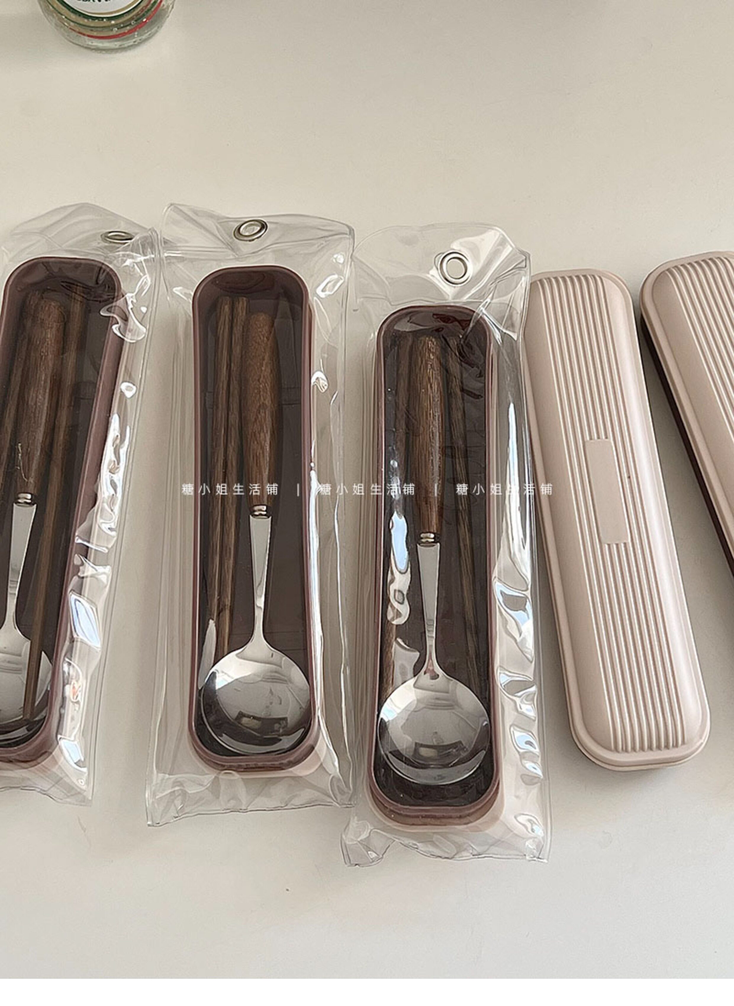 高级感复古仿鸡翅木勺子筷子不锈钢木柄上班学生便携套装餐具木勺