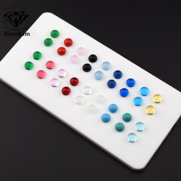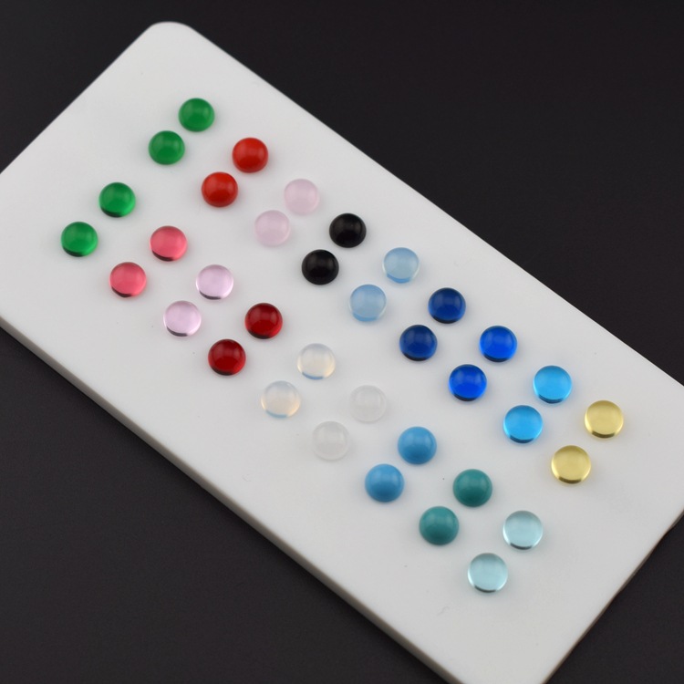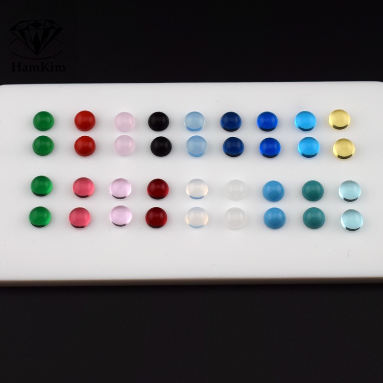 松石祖母绿宝蓝圆形平底宝石水晶石玻璃素面工艺品首饰品镶嵌配石