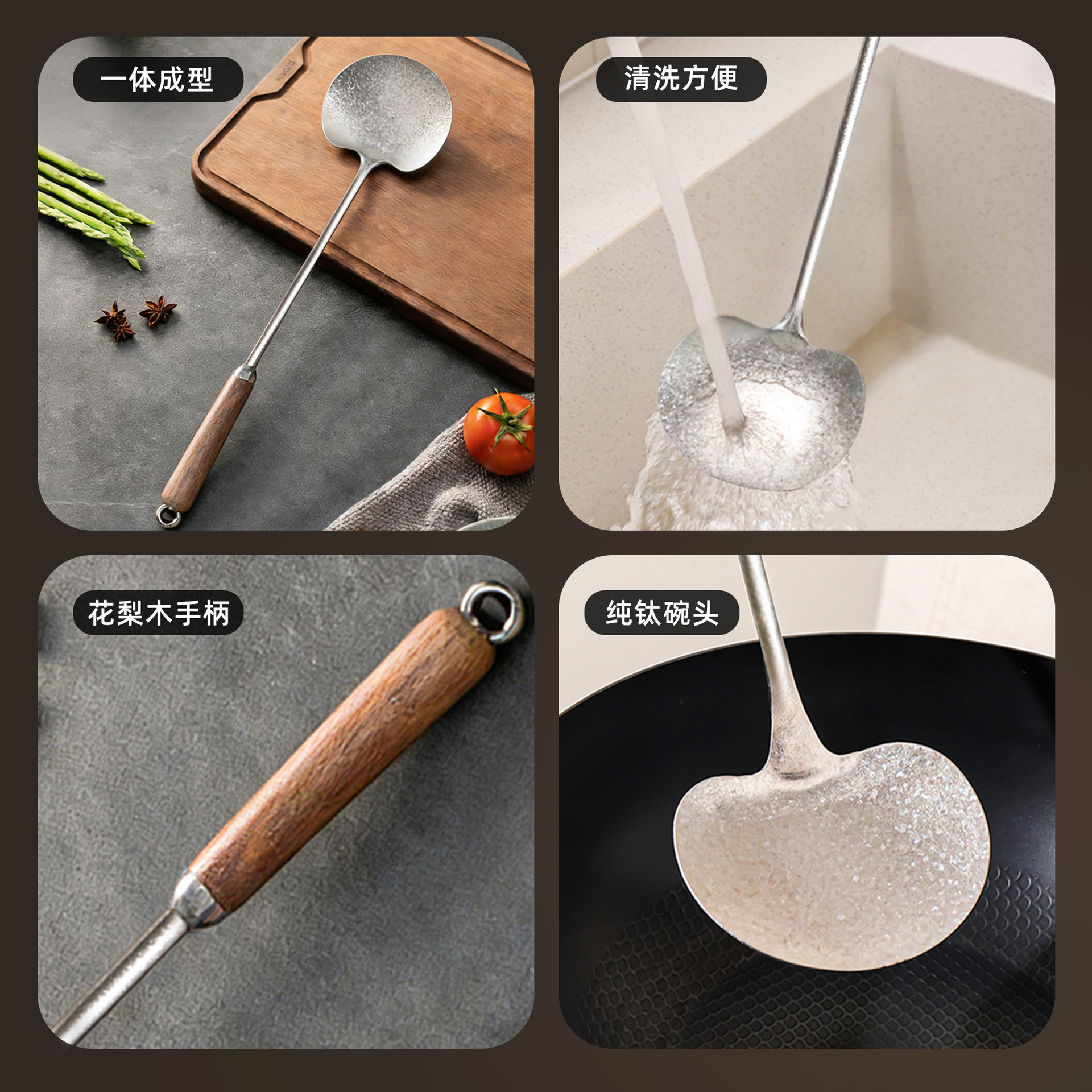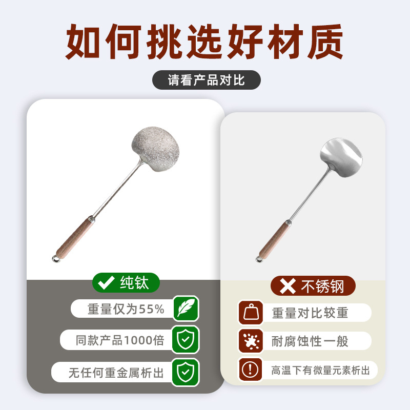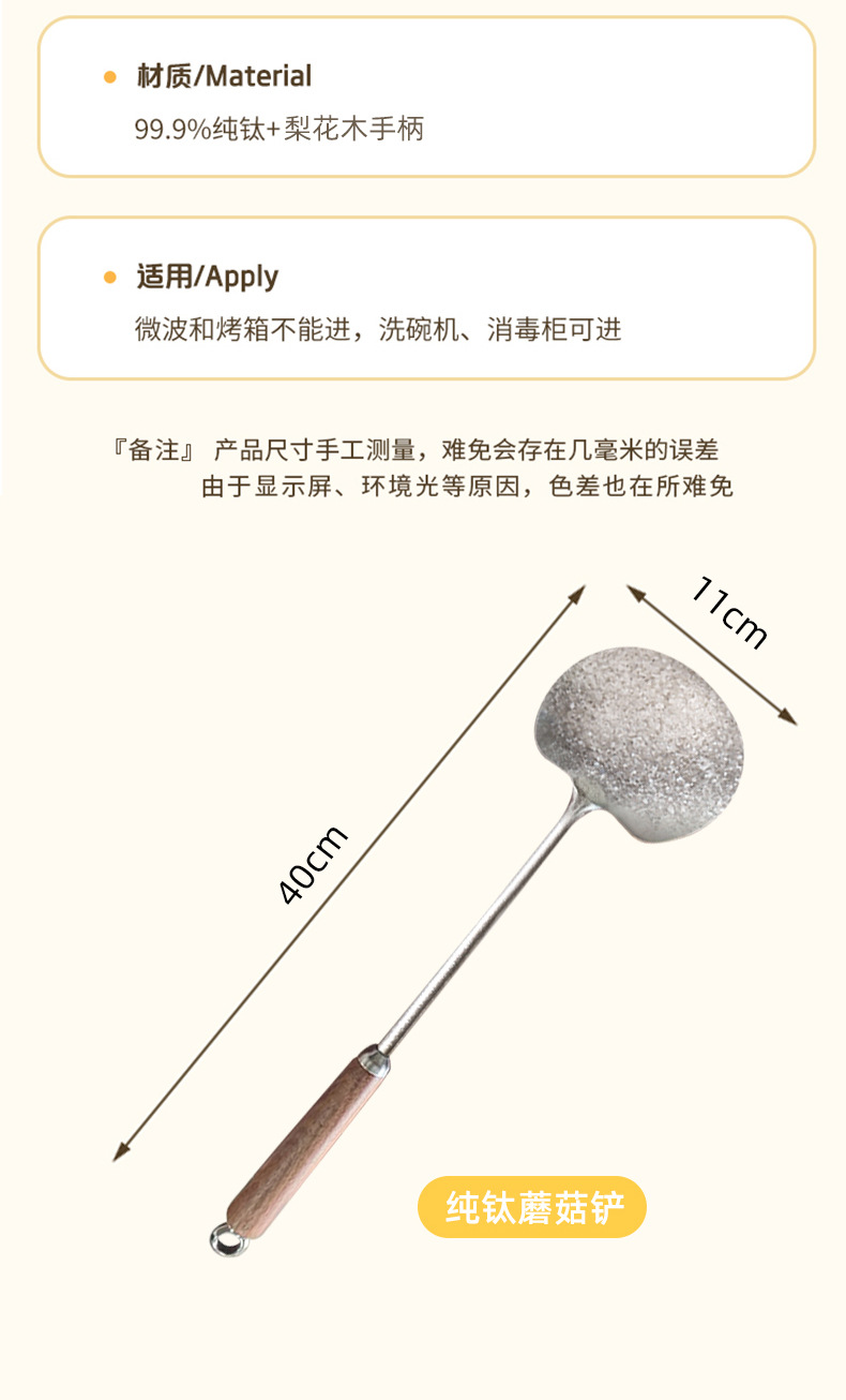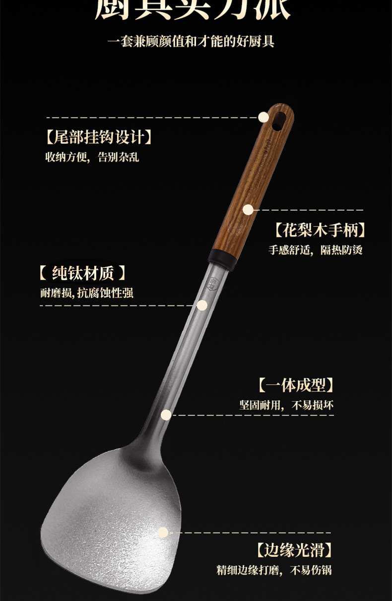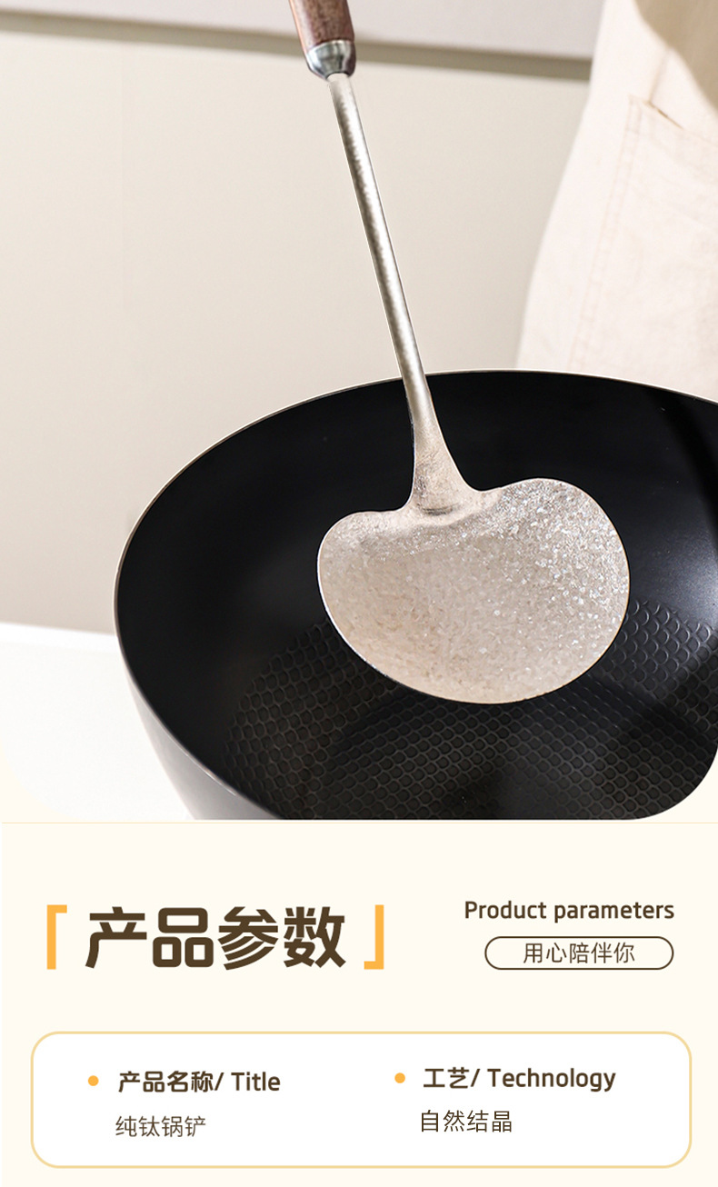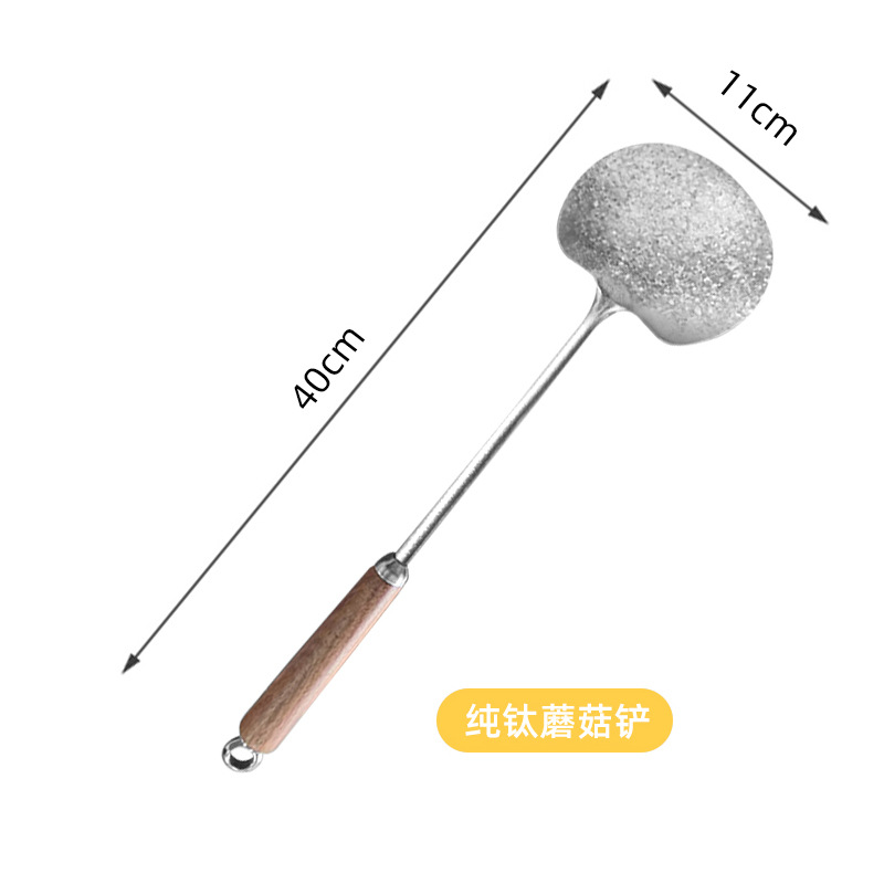 纯钛锅铲家用厨房炒菜锅铲防烫花梨木手柄煎铲炒铲结晶工艺蘑菇铲