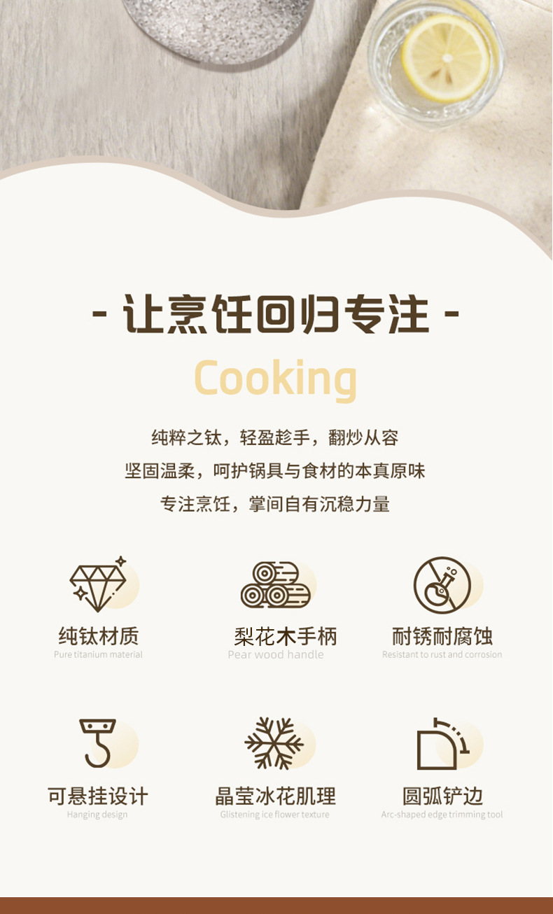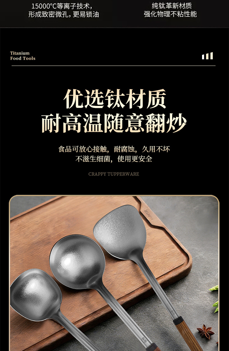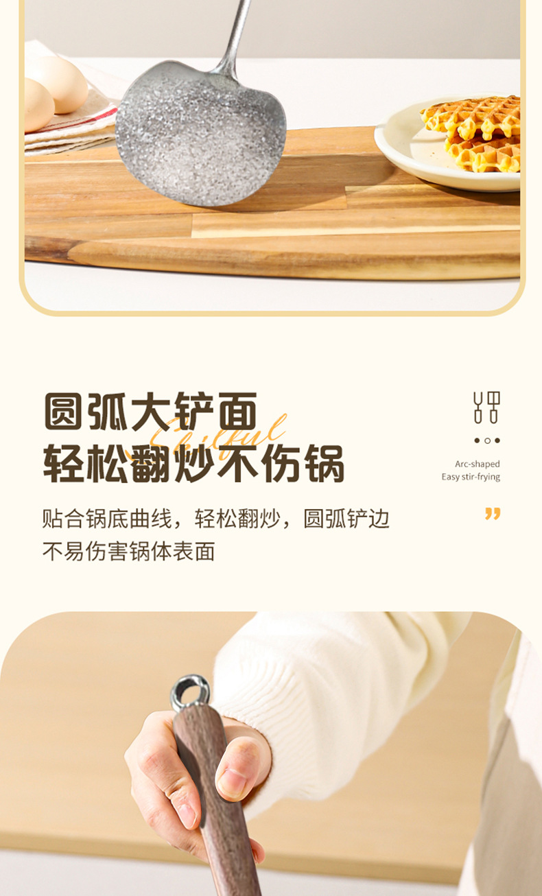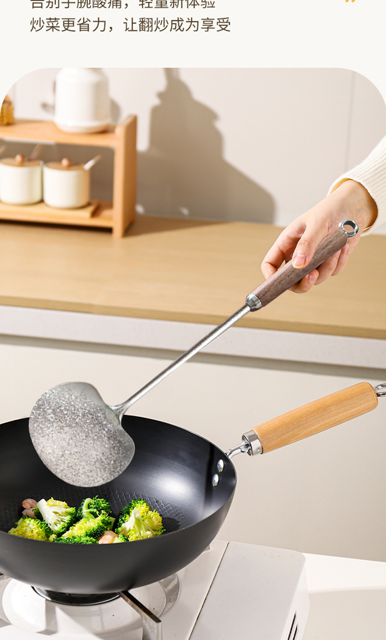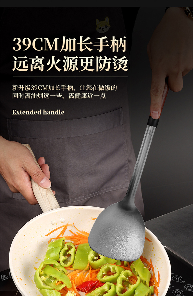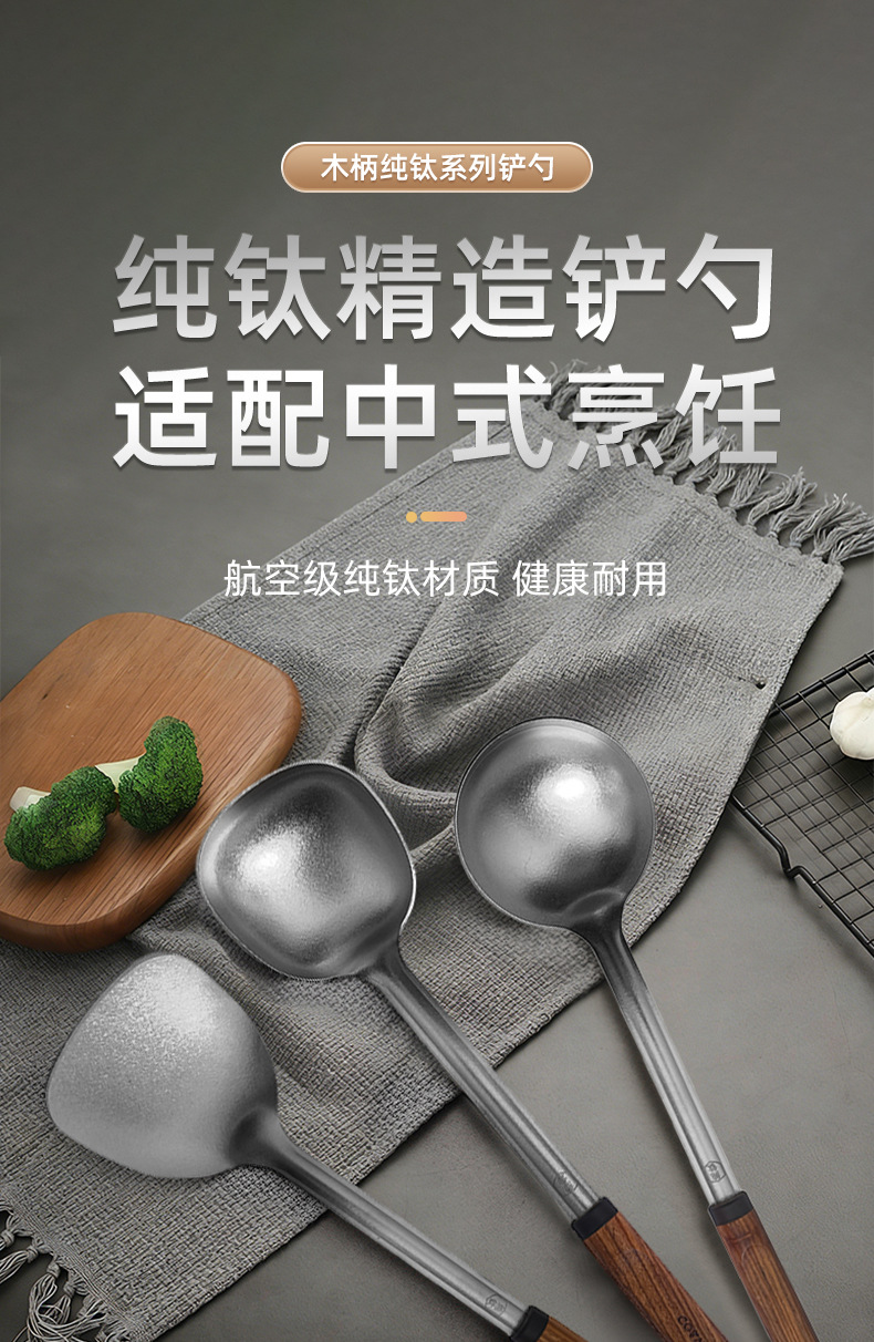 纯钛锅铲家用厨房炒菜锅铲防烫花梨木手柄煎铲炒铲结晶工艺蘑菇铲