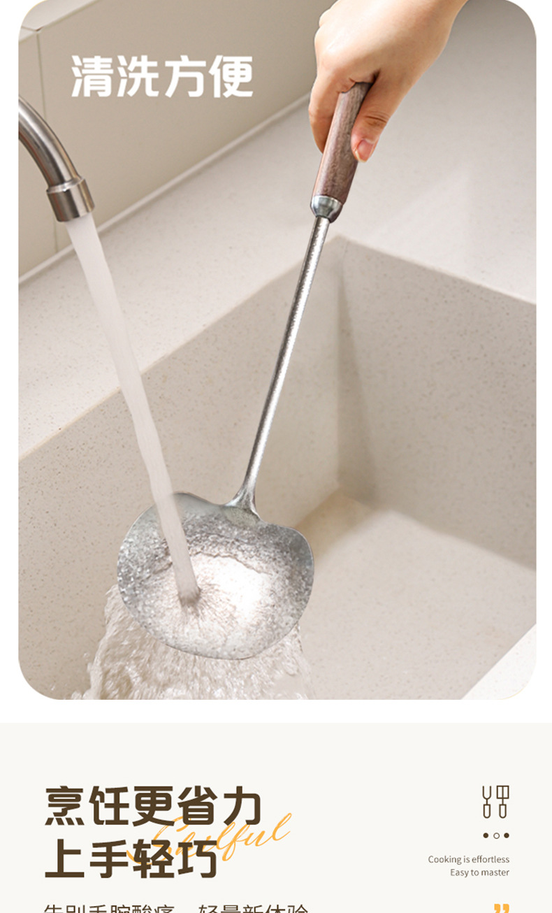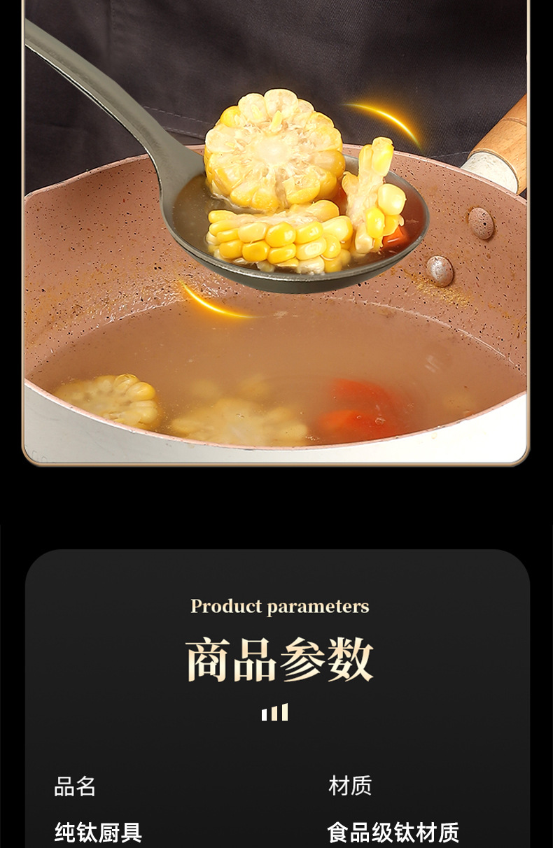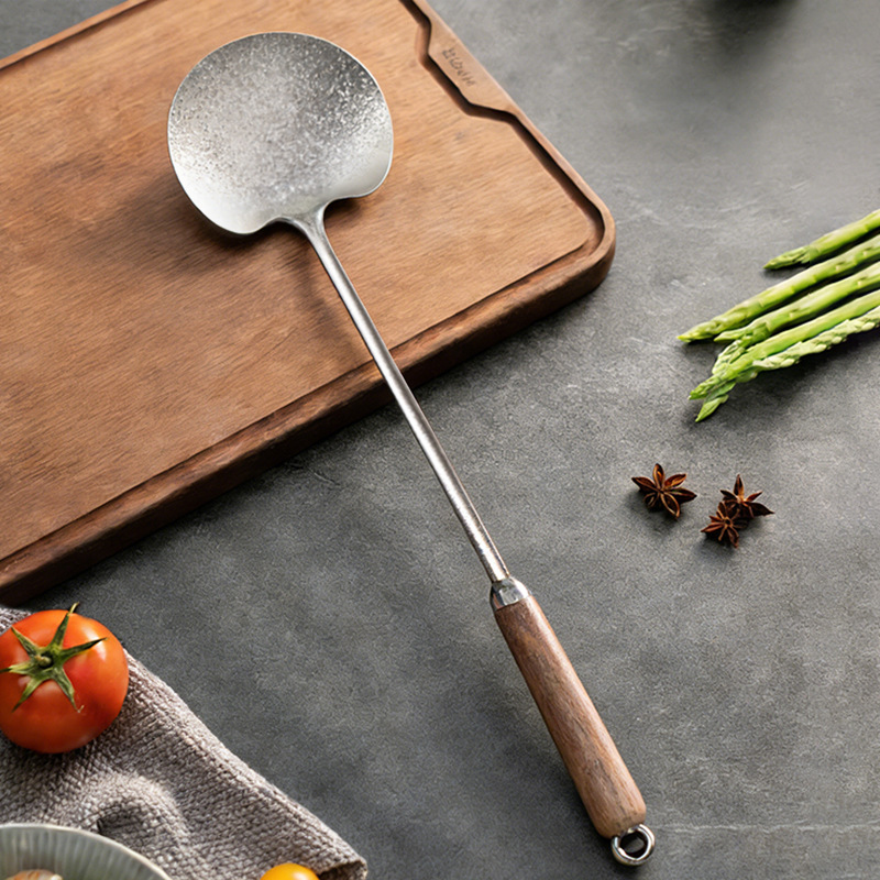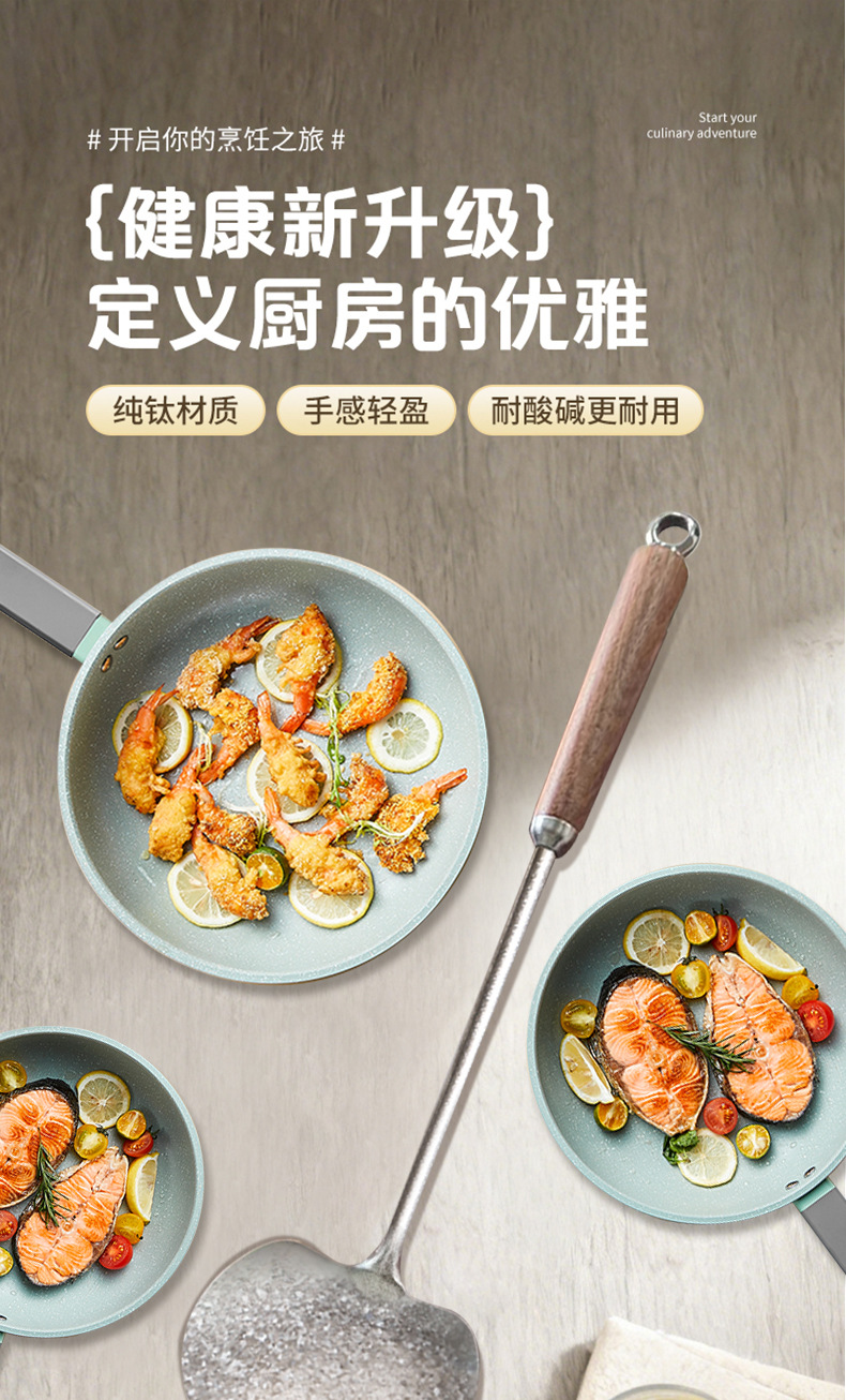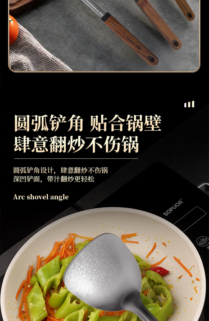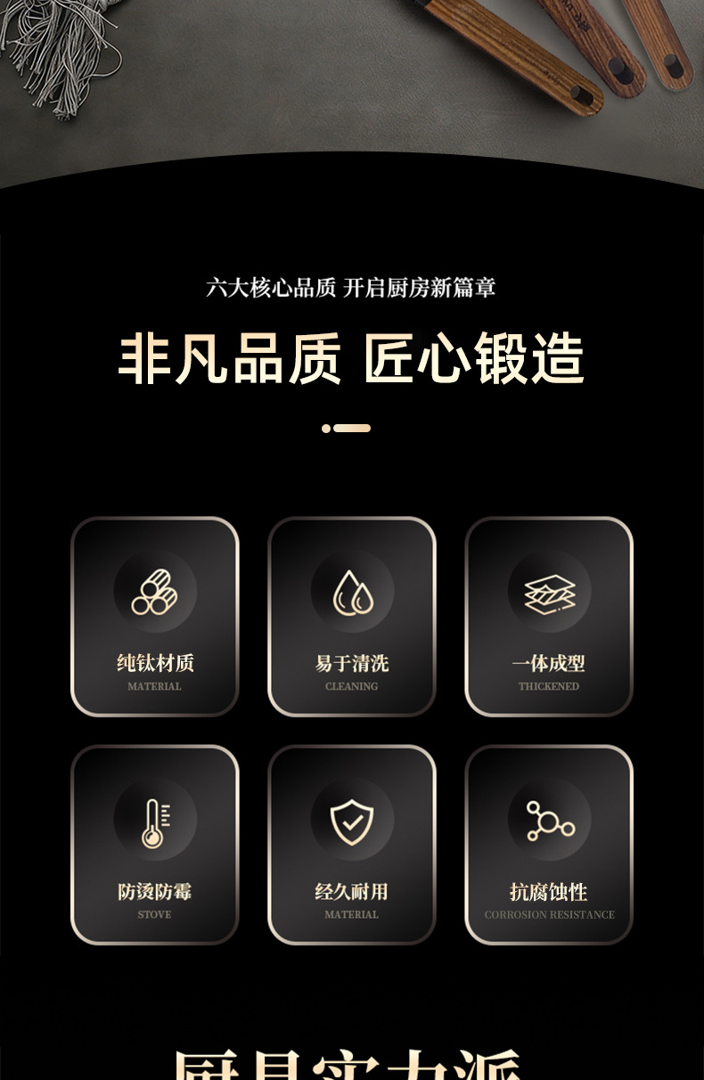 纯钛锅铲家用厨房炒菜锅铲防烫花梨木手柄煎铲炒铲结晶工艺蘑菇铲
