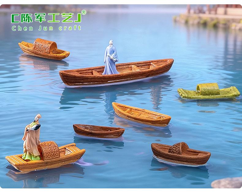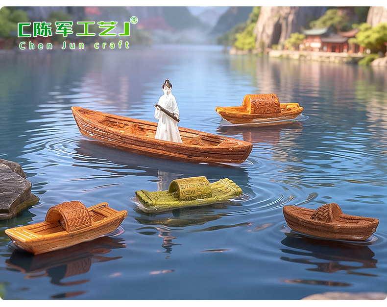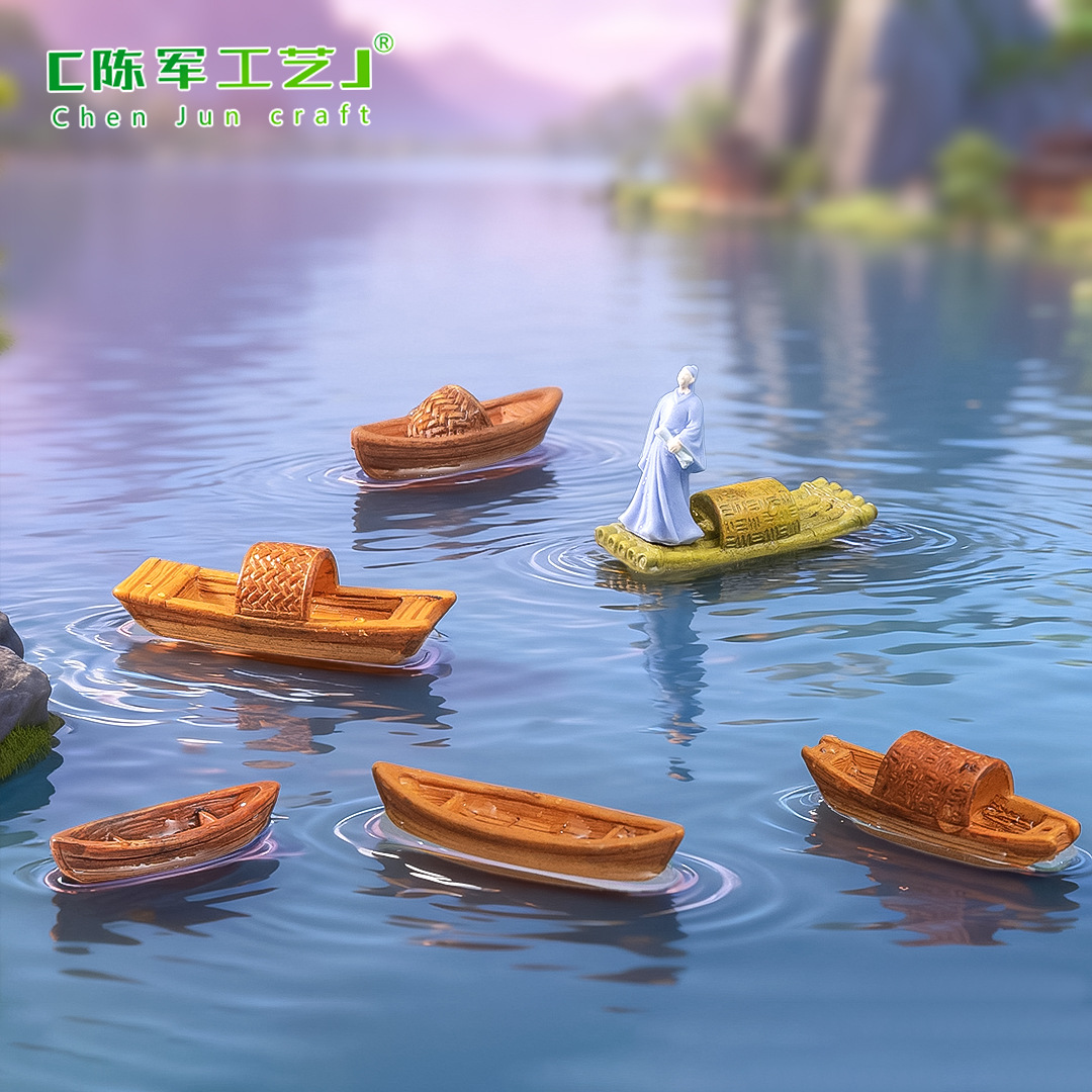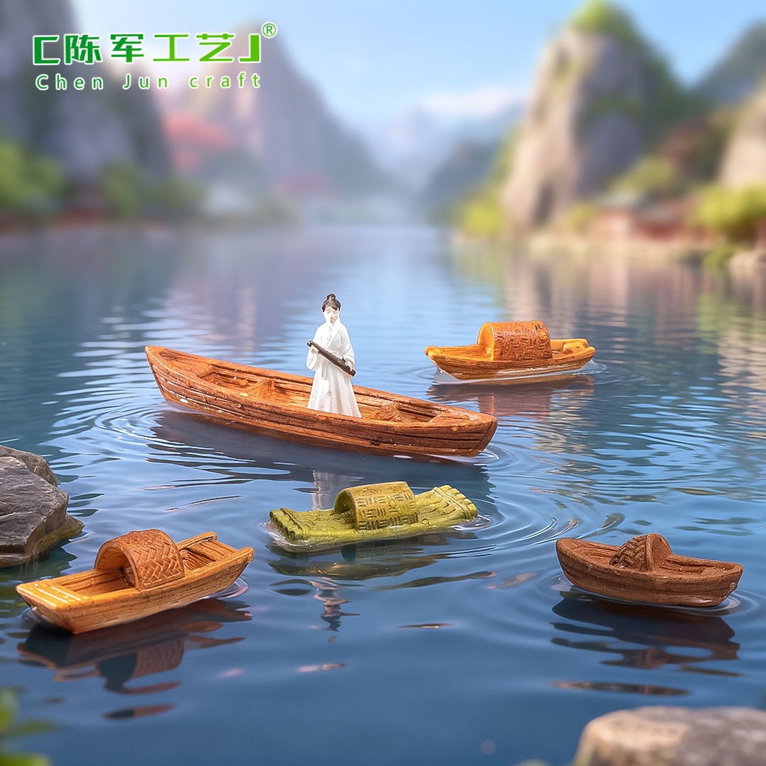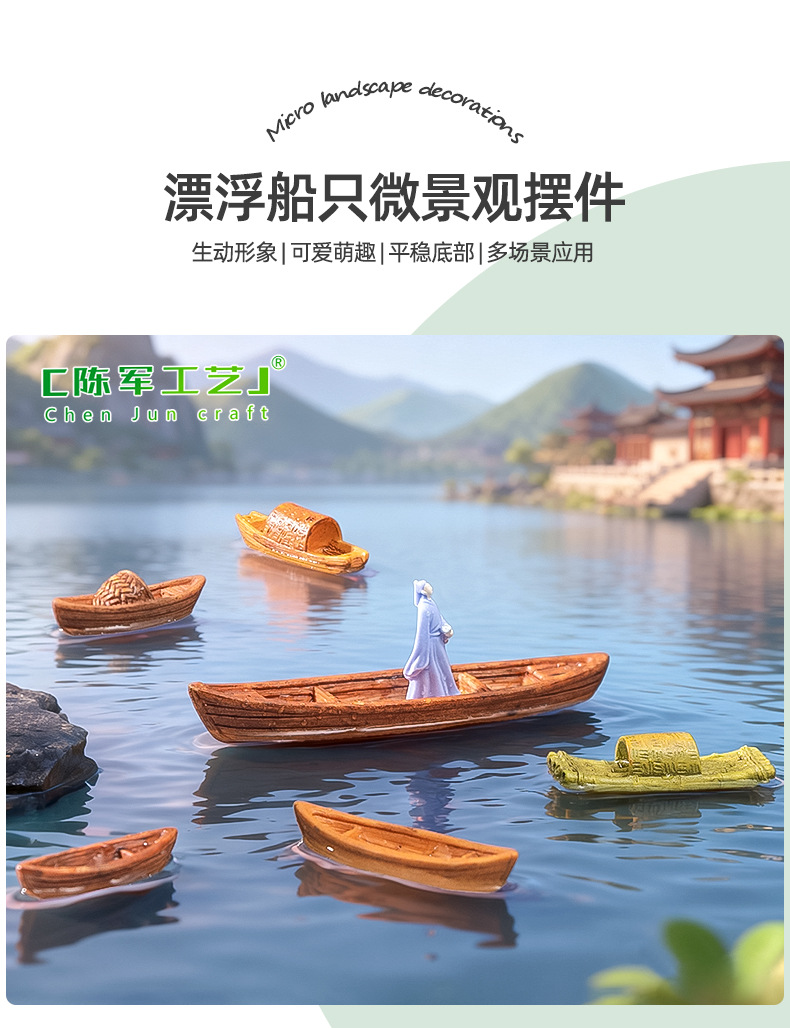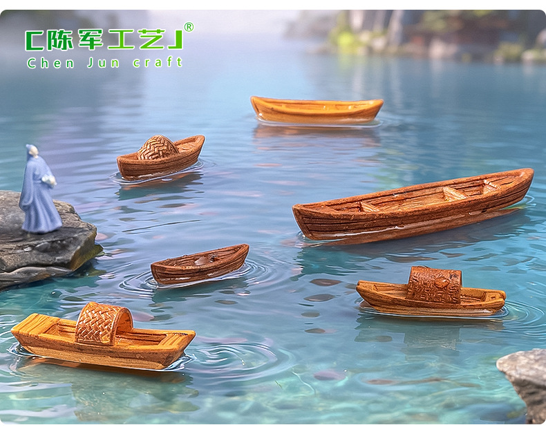 微景观中式乌篷竹筏小船 水族鱼缸造景diy装饰品配件生态瓶小摆件