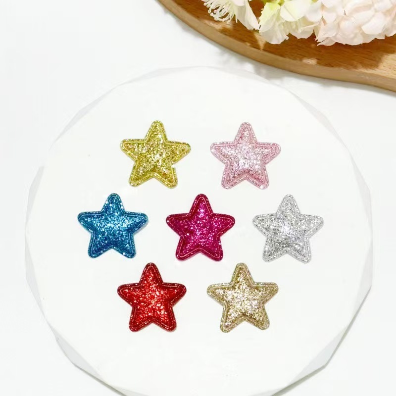 超声波2.5cm葱粉pu五角星 DIY韩版宝宝发夹材料手工发饰服装配件