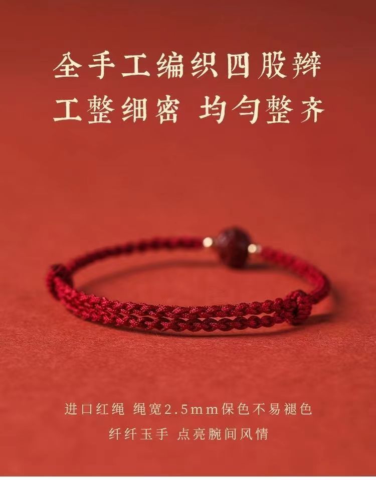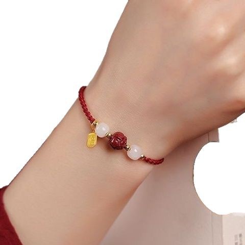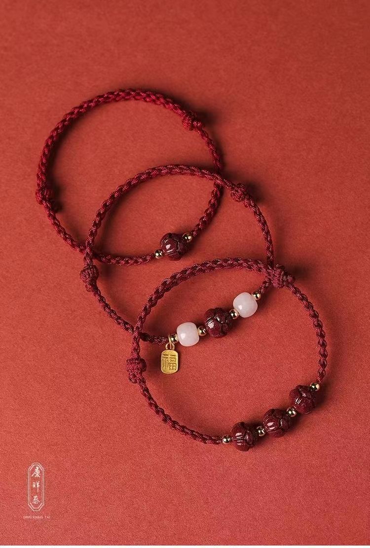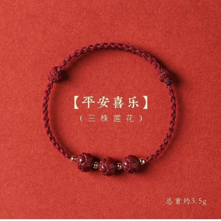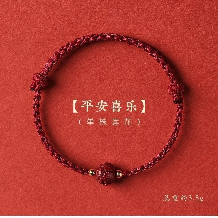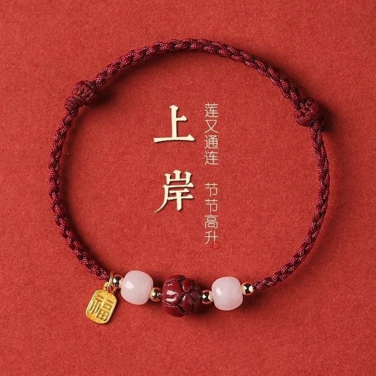 上岸考试考研朱砂好运珠莲花平安红绳编织手链女本命年闺蜜毕业礼