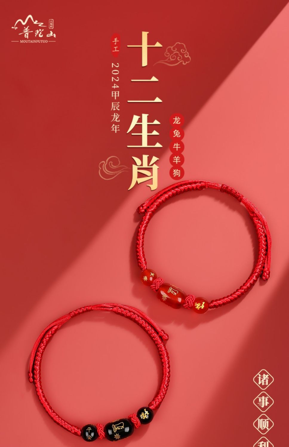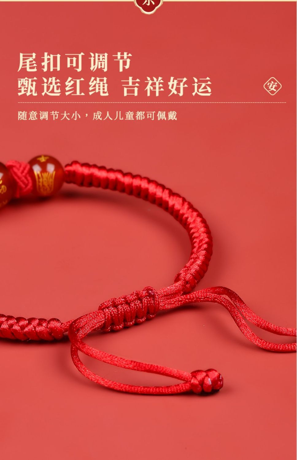 2026马年普陀山本命年泰岁红绳手链女男女手绳儿童红色人工编织绳