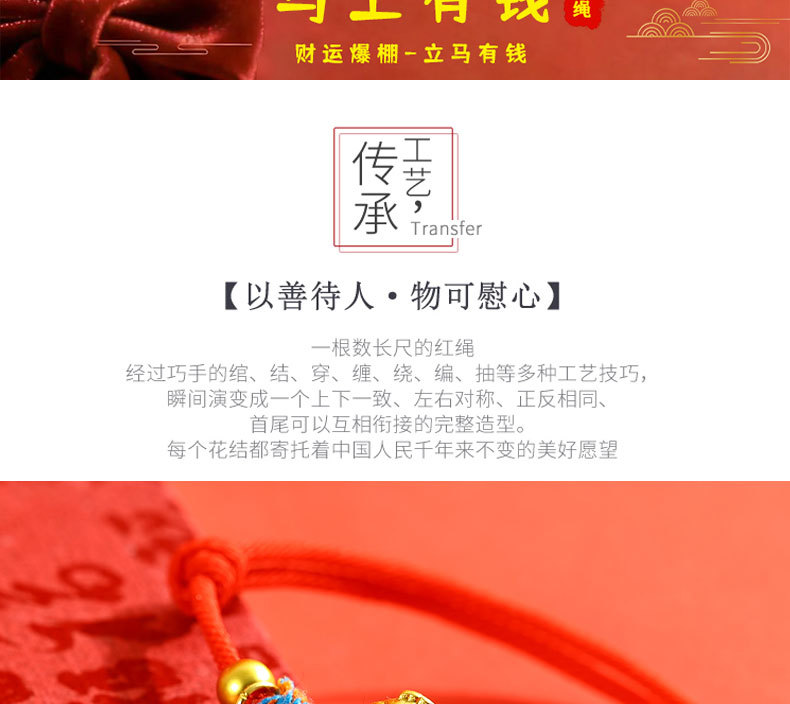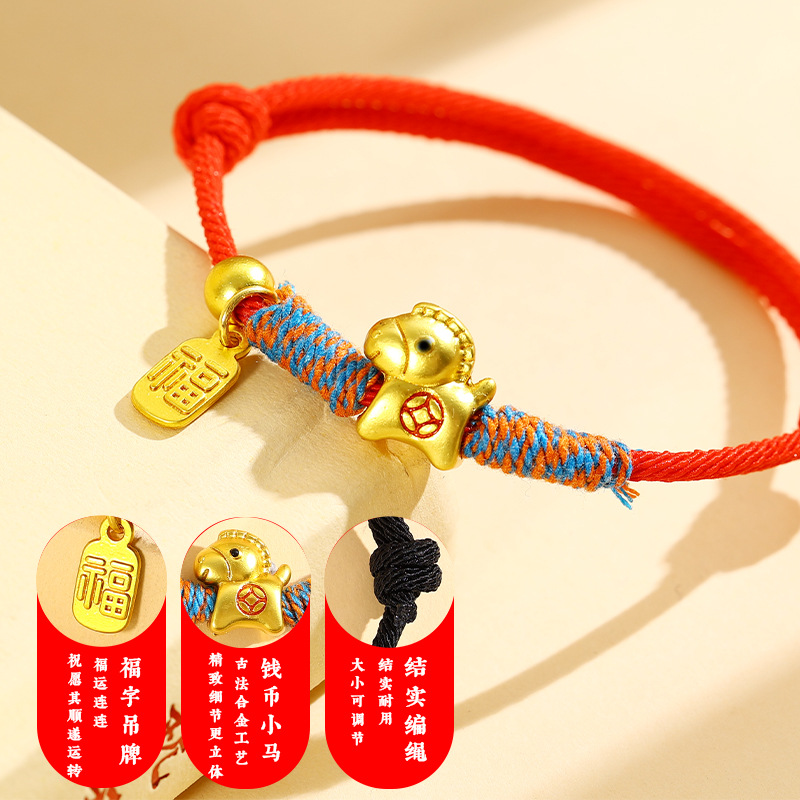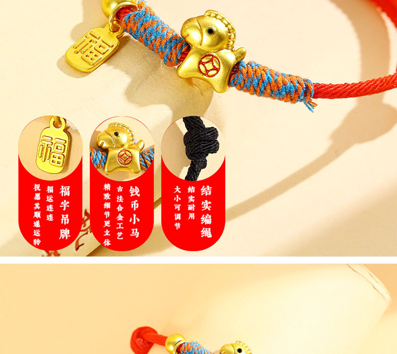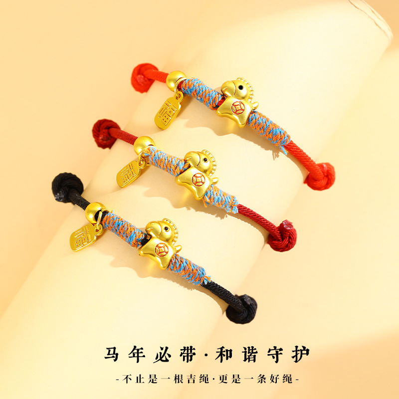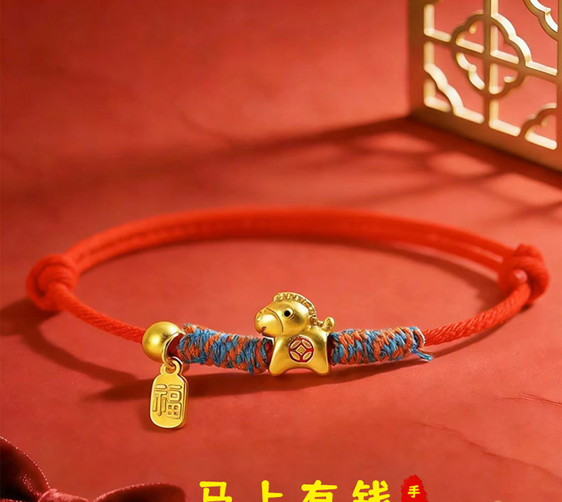 新款马年手链本命年红绳手工编织马上有钱手绳生肖马男女新年礼物