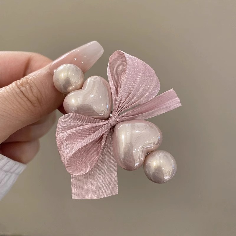 粉色蝴蝶结发夹爱心珍珠发卡甜美碎发夹唯美刘海夹精致侧边夹发饰