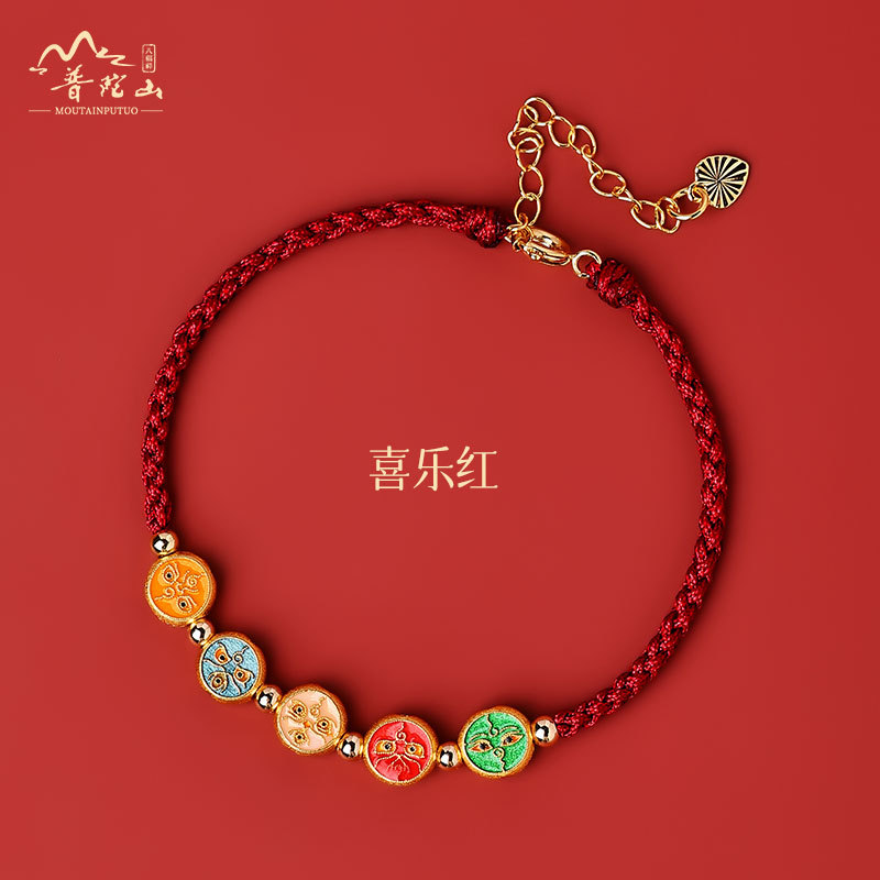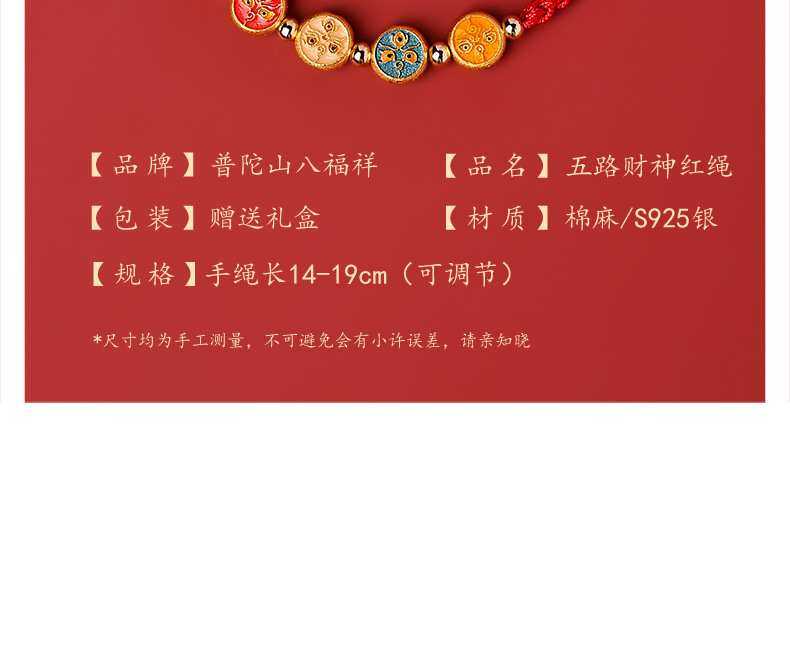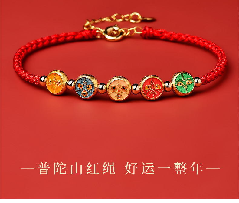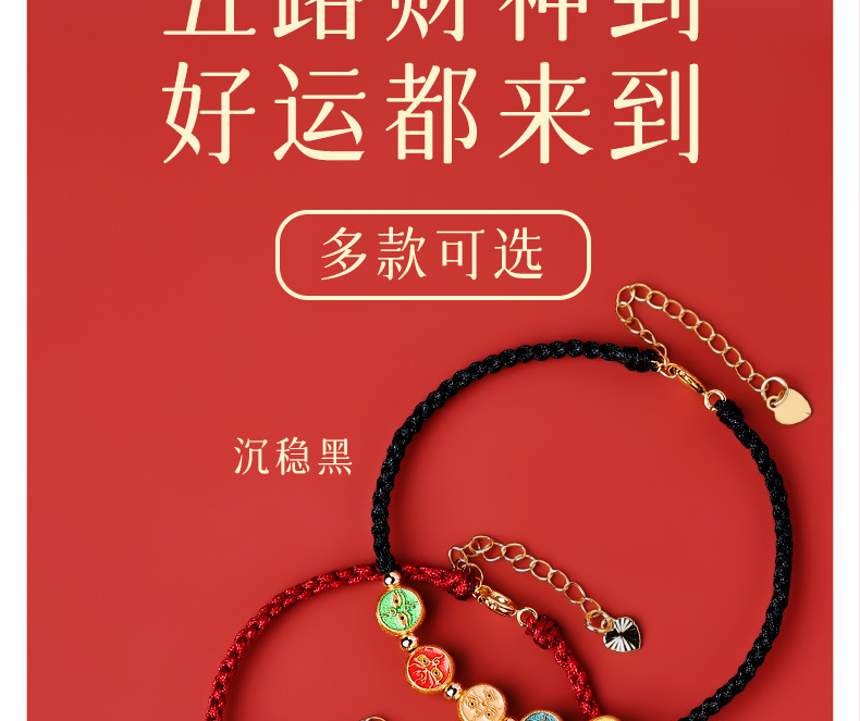 2026马年本命年手链手工编织绳男女五路财神手绳国潮礼物情侣款