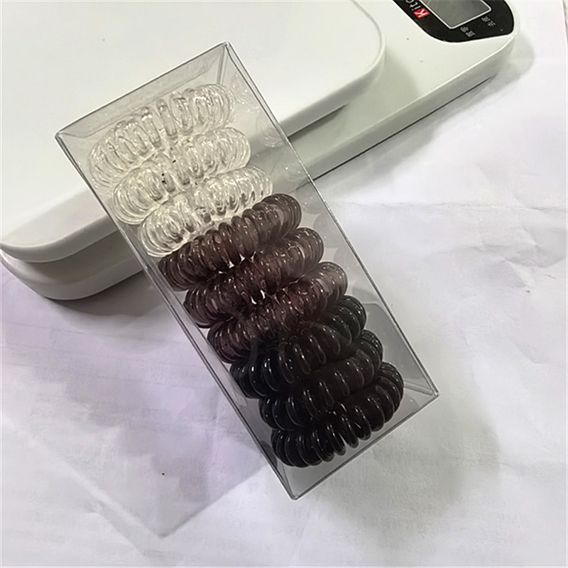 9个盒装渐变电话线发圈跨境电话圈义乌地摊饰品头饰透明皮筋批发
