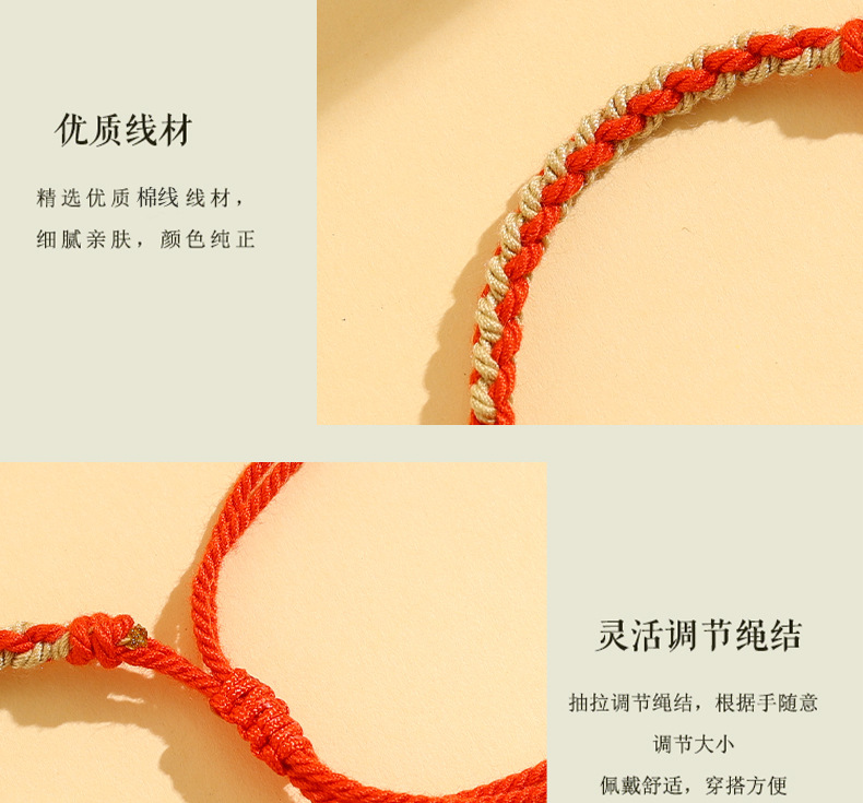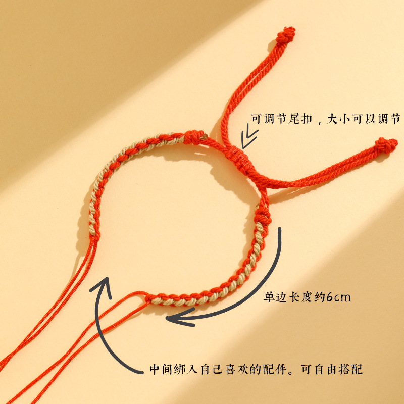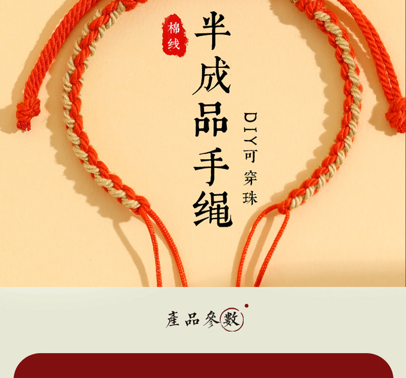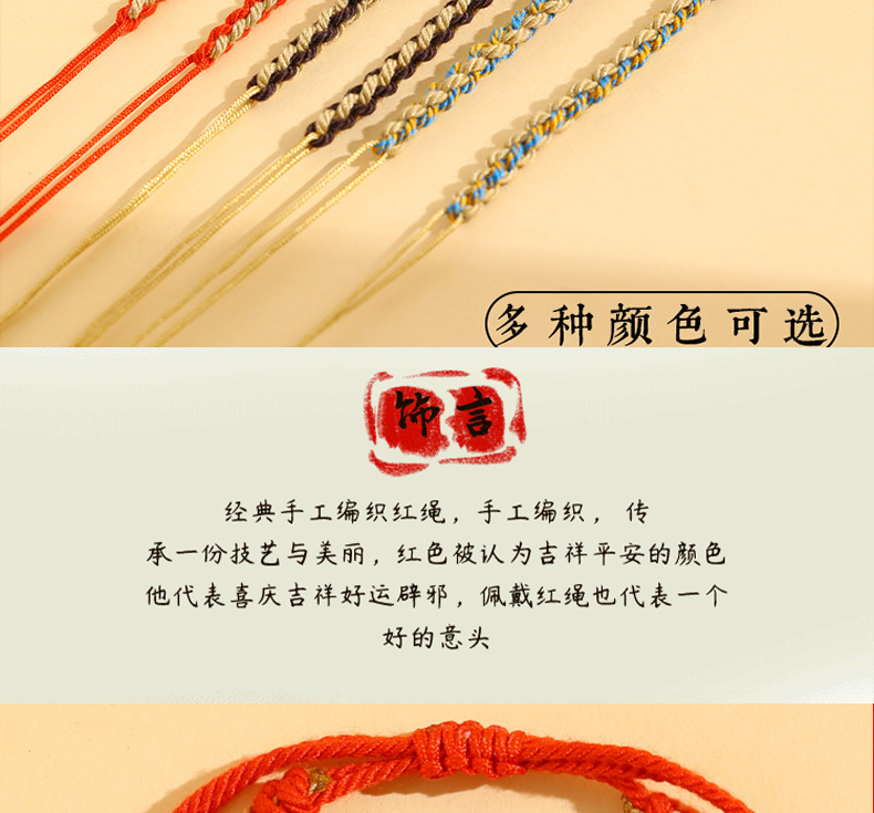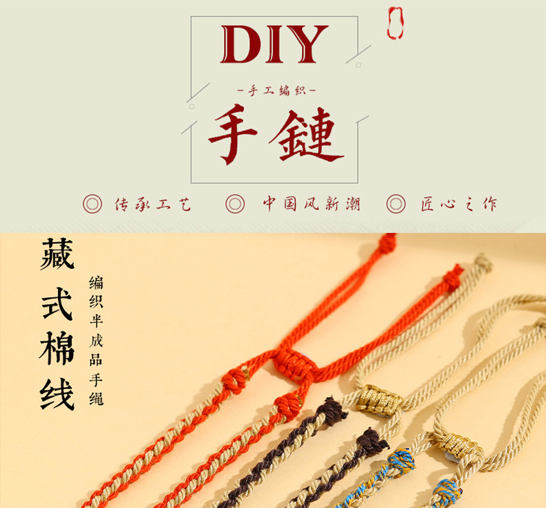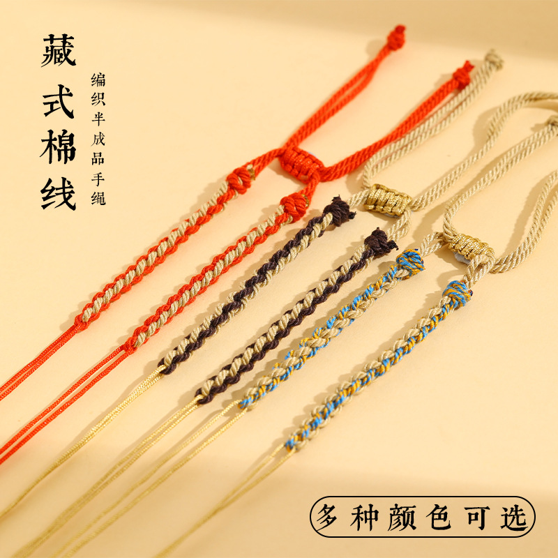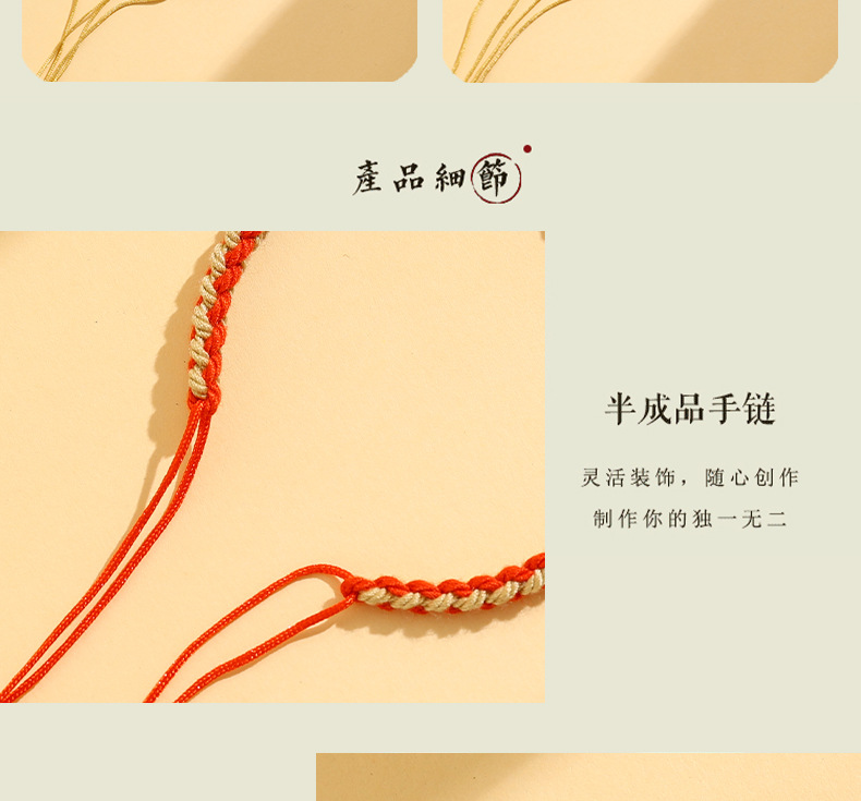 半成品手绳DIY可穿珠黄金配饰平安扣棉线编织红绳四股辫藏式手链