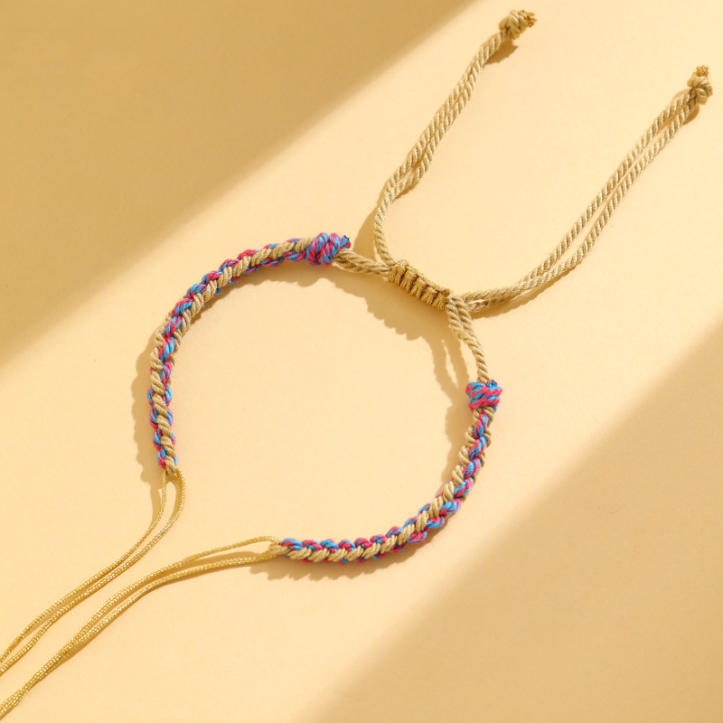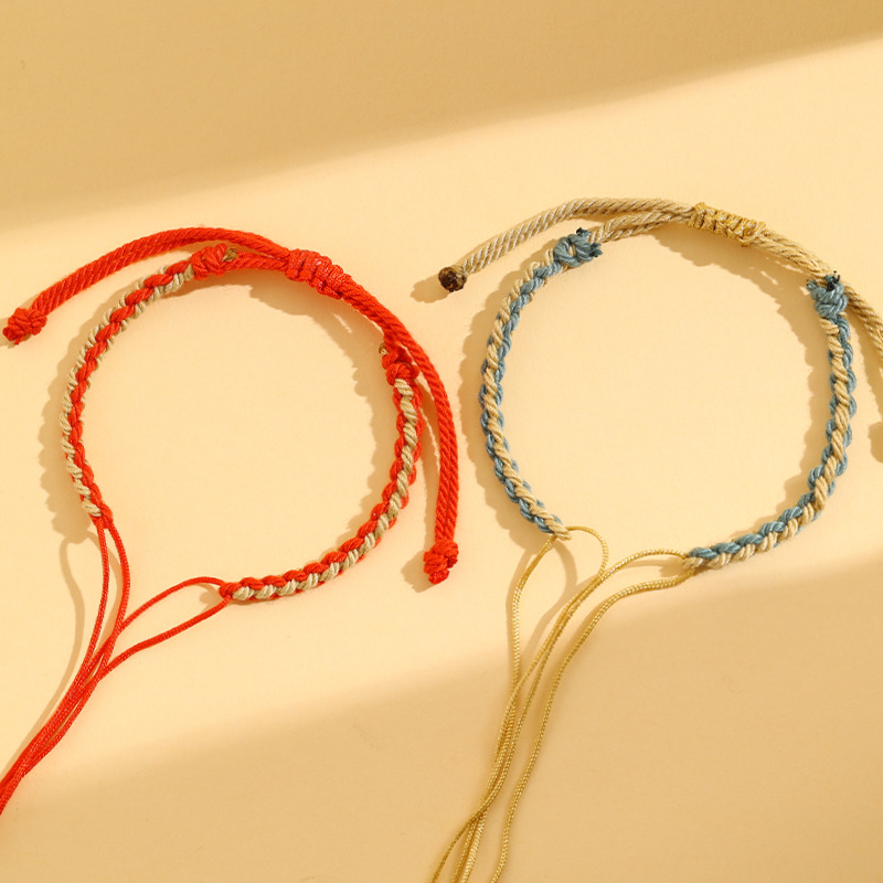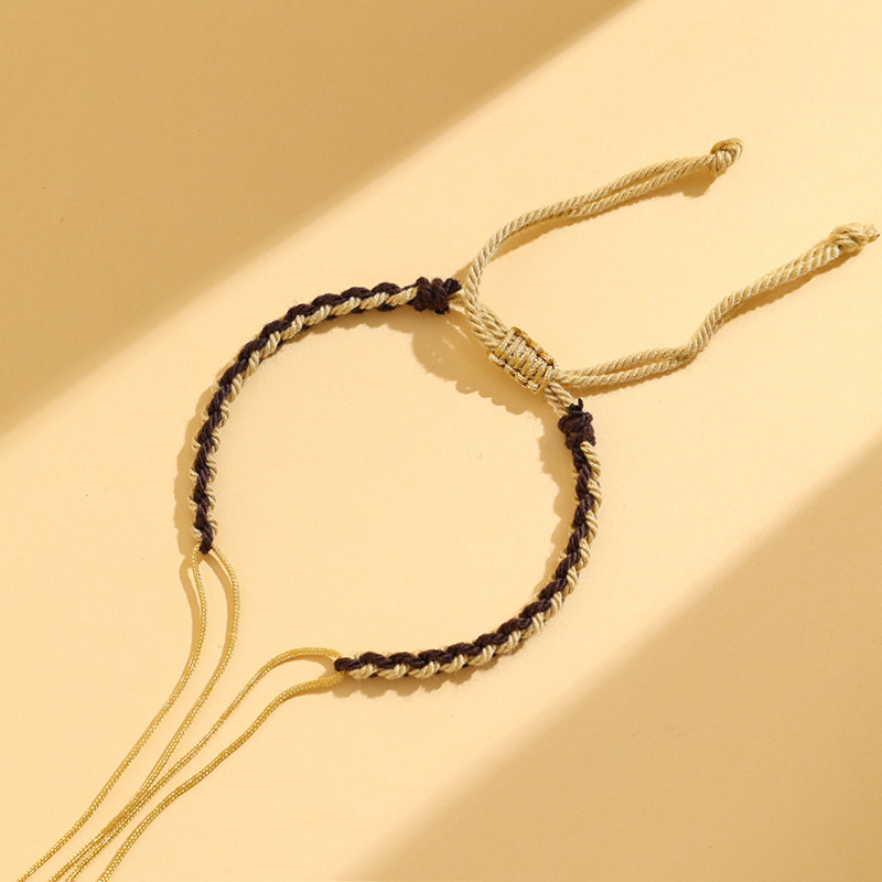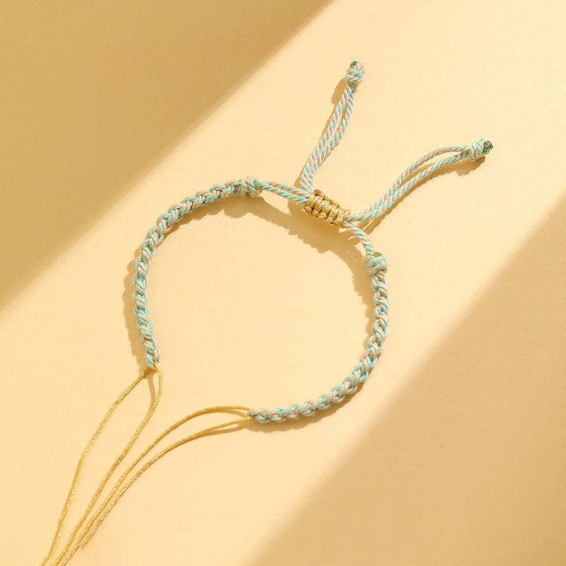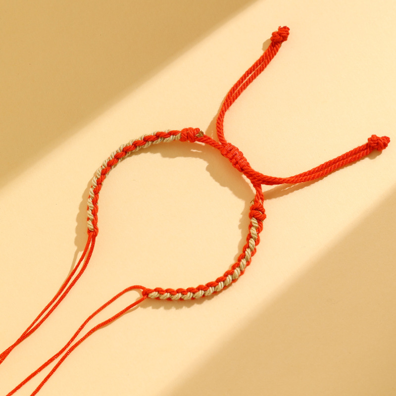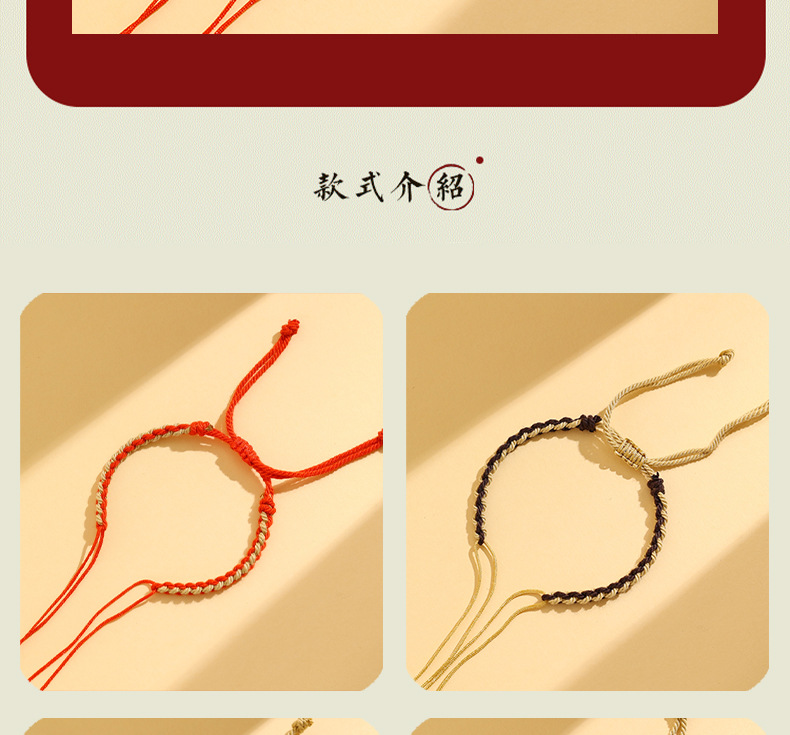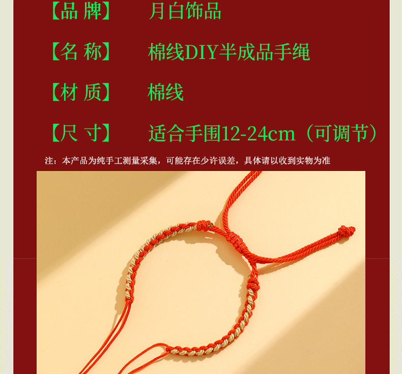 半成品手绳DIY可穿珠黄金配饰平安扣棉线编织红绳四股辫藏式手链