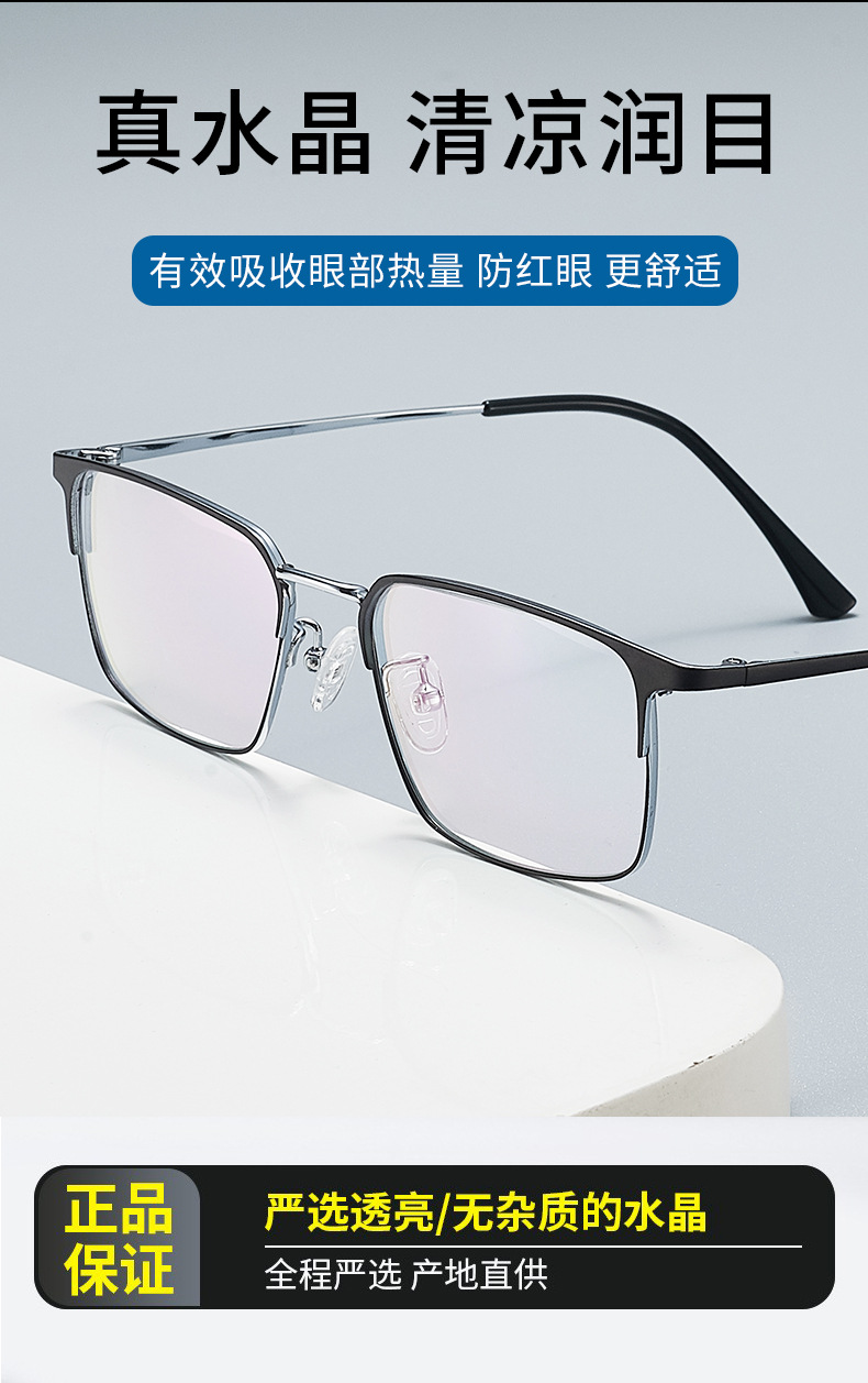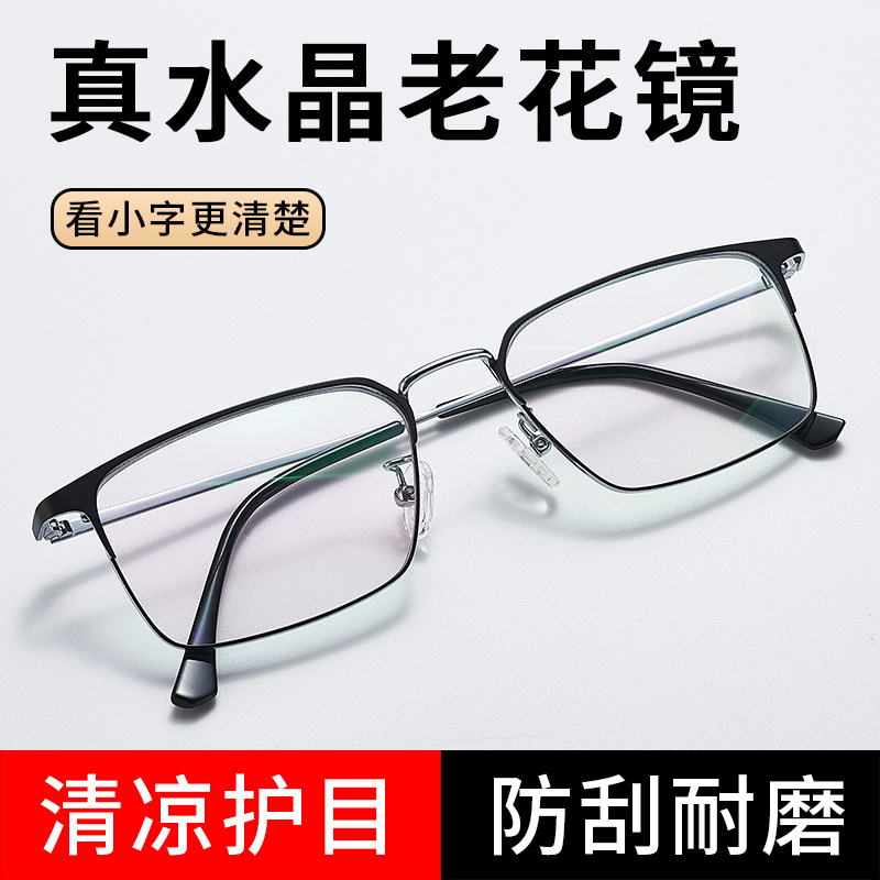 真水晶石老花眼镜男女款正品东海高清高档耐磨老人老光眼镜清凉护