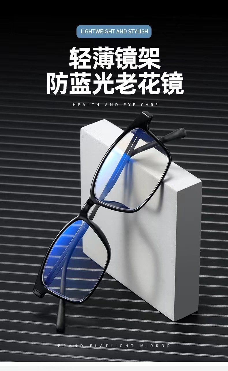 TR老花镜防蓝光高清度数老花眼镜老人方框超轻三合一男女老花眼镜
