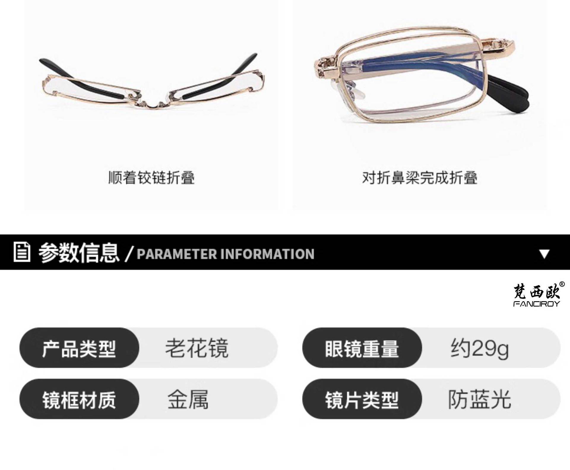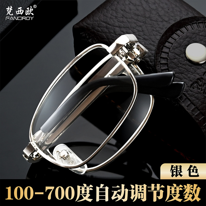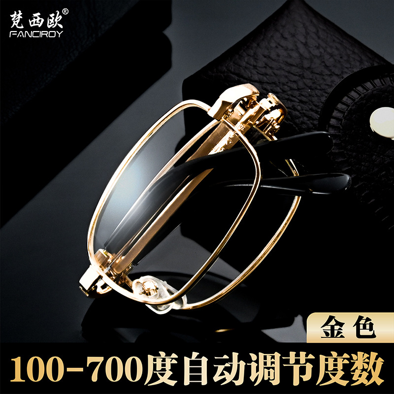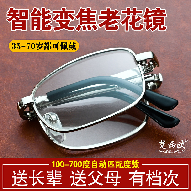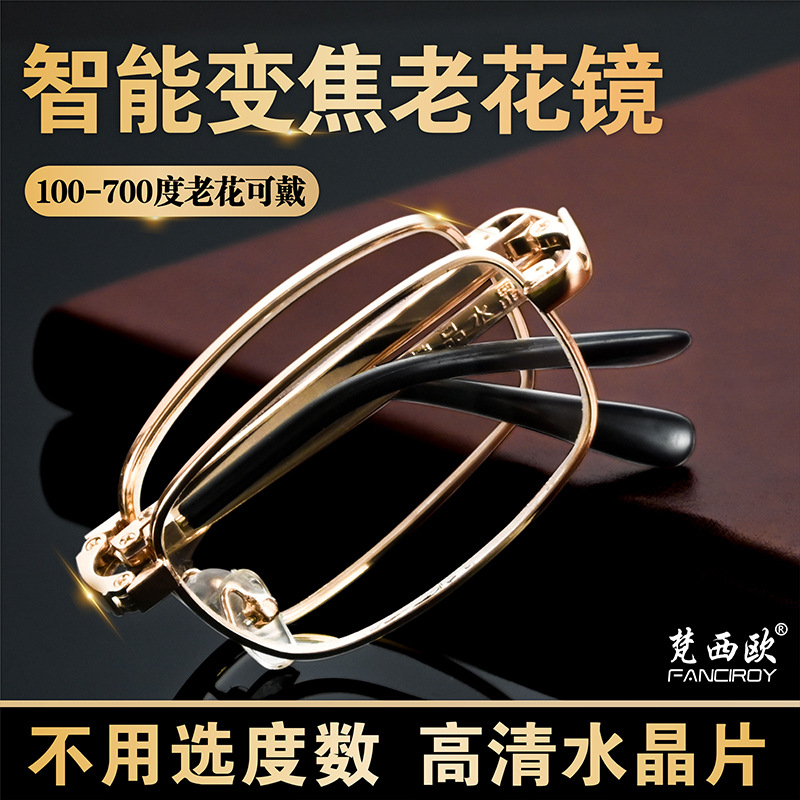 金属便携折叠老花镜智能调节度数中老年水晶玻璃防蓝光眼镜厂批发