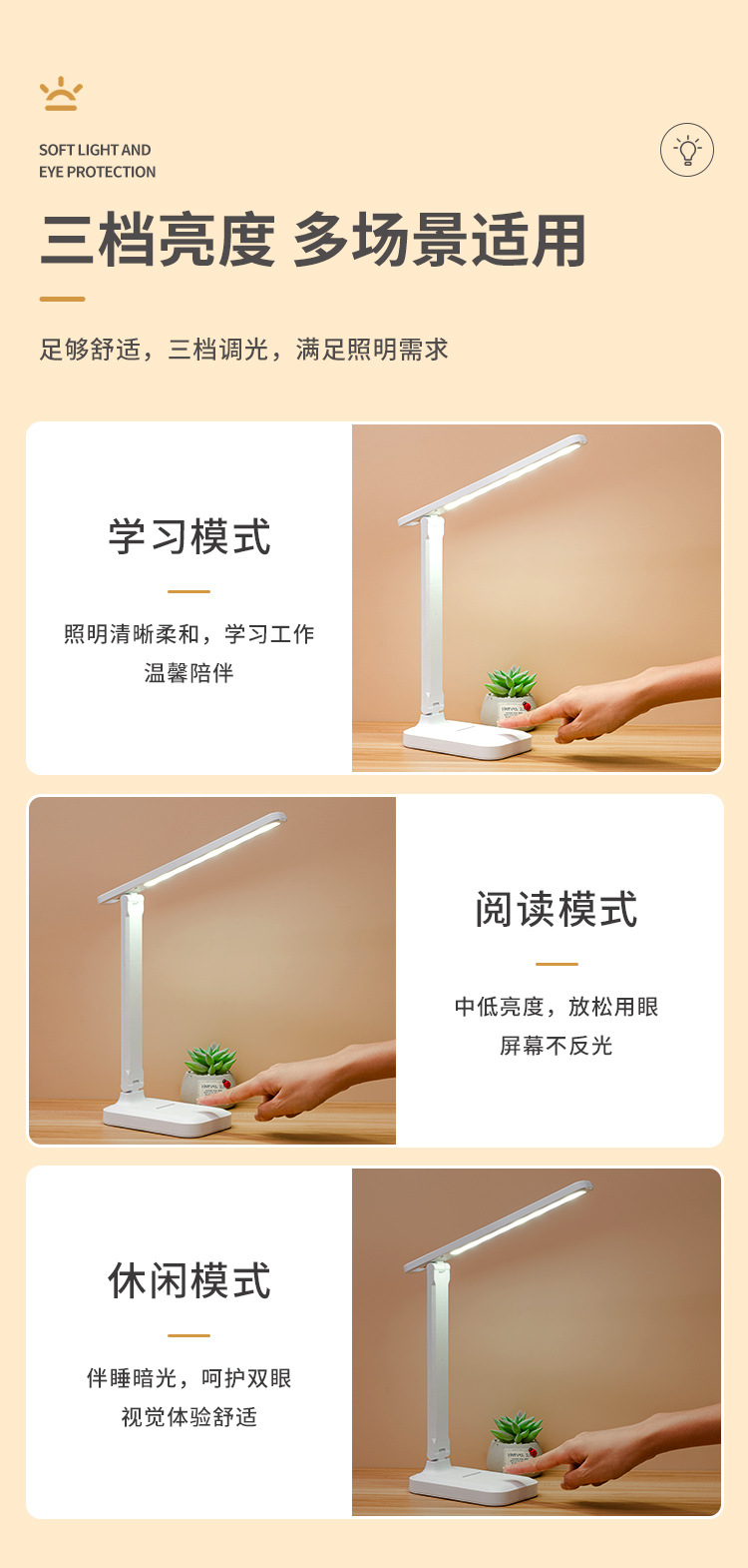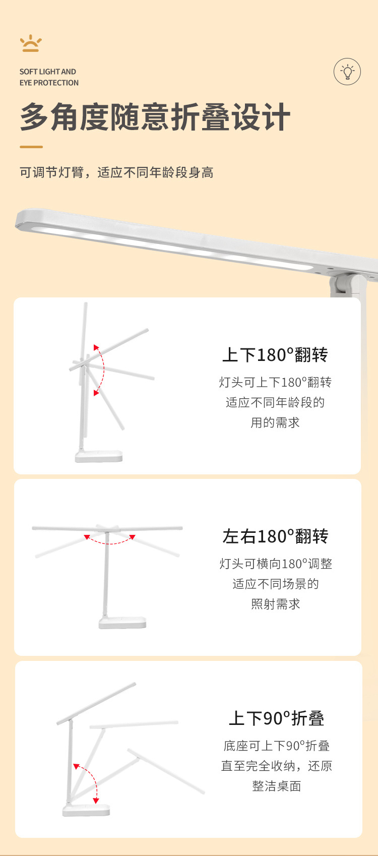 led折叠台灯usb小夜灯学生学习专用护眼氛围床头灯卧室宿舍阅读灯