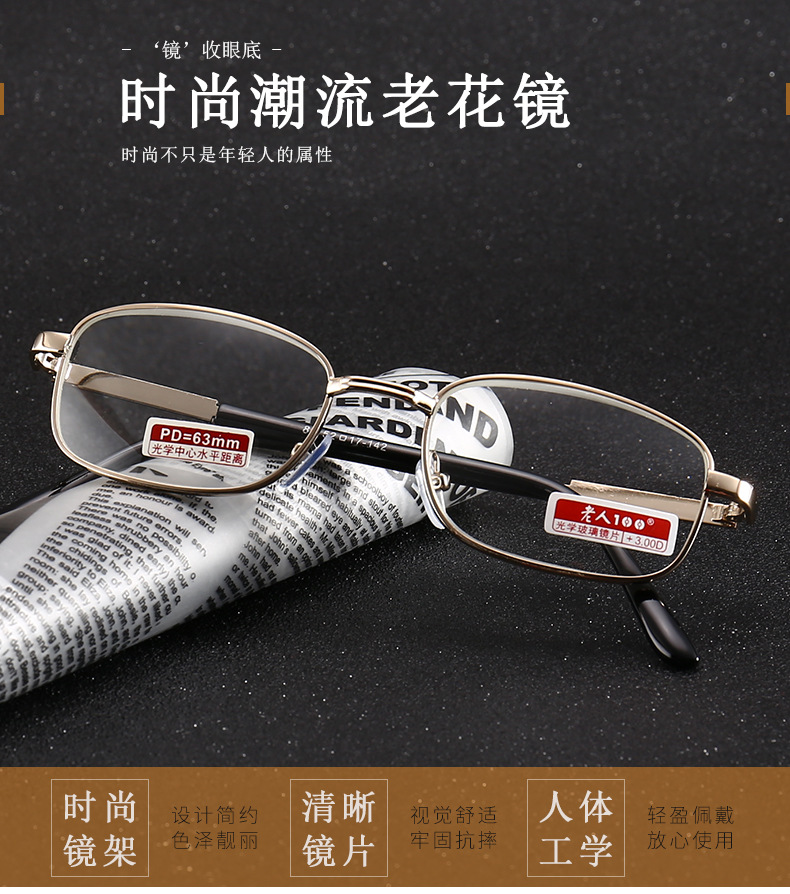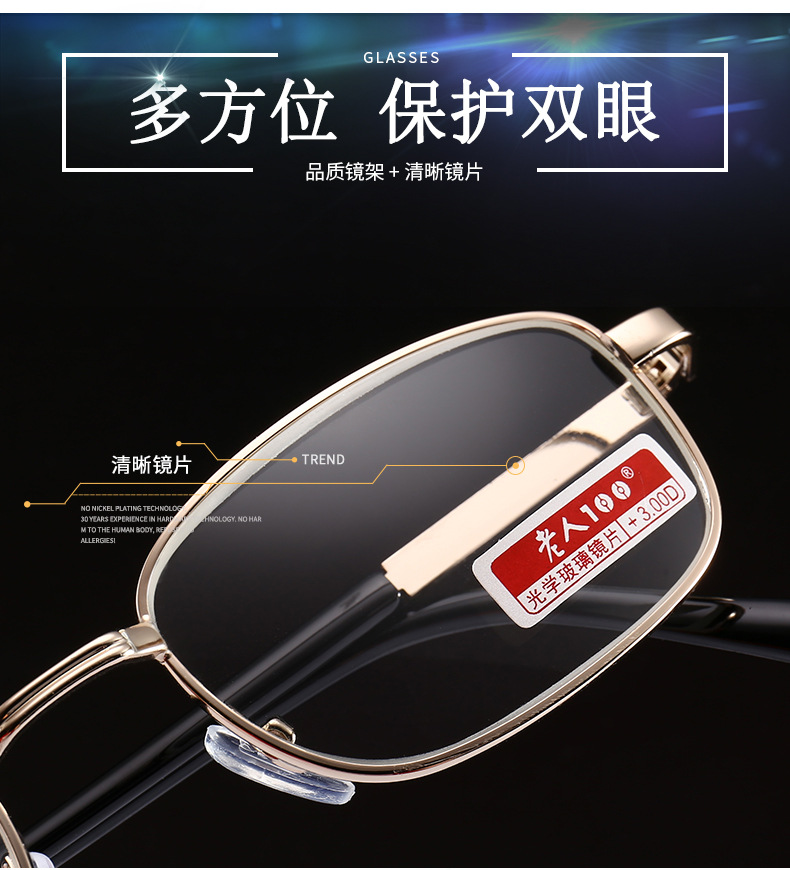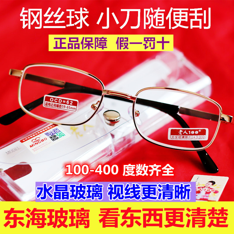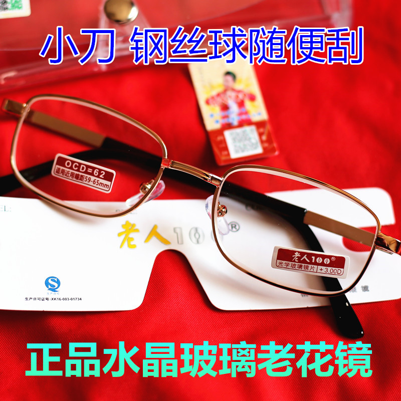高档天然水晶玻璃老花镜男老人老花眼镜女高清男士老光镜正品75度