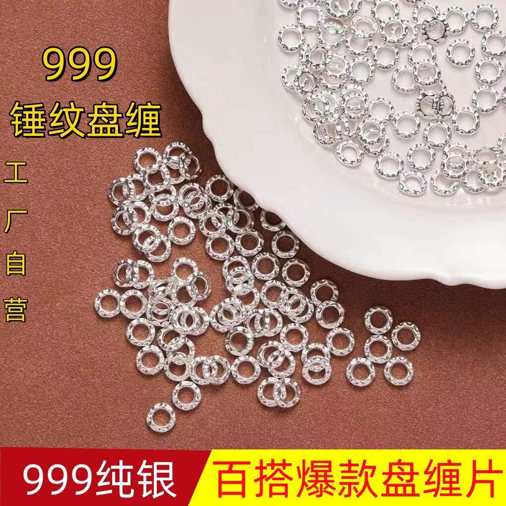 正宗999纯银盘缠配件编绳隔片纯手工锤纹搭配手串串珠隔珠配件