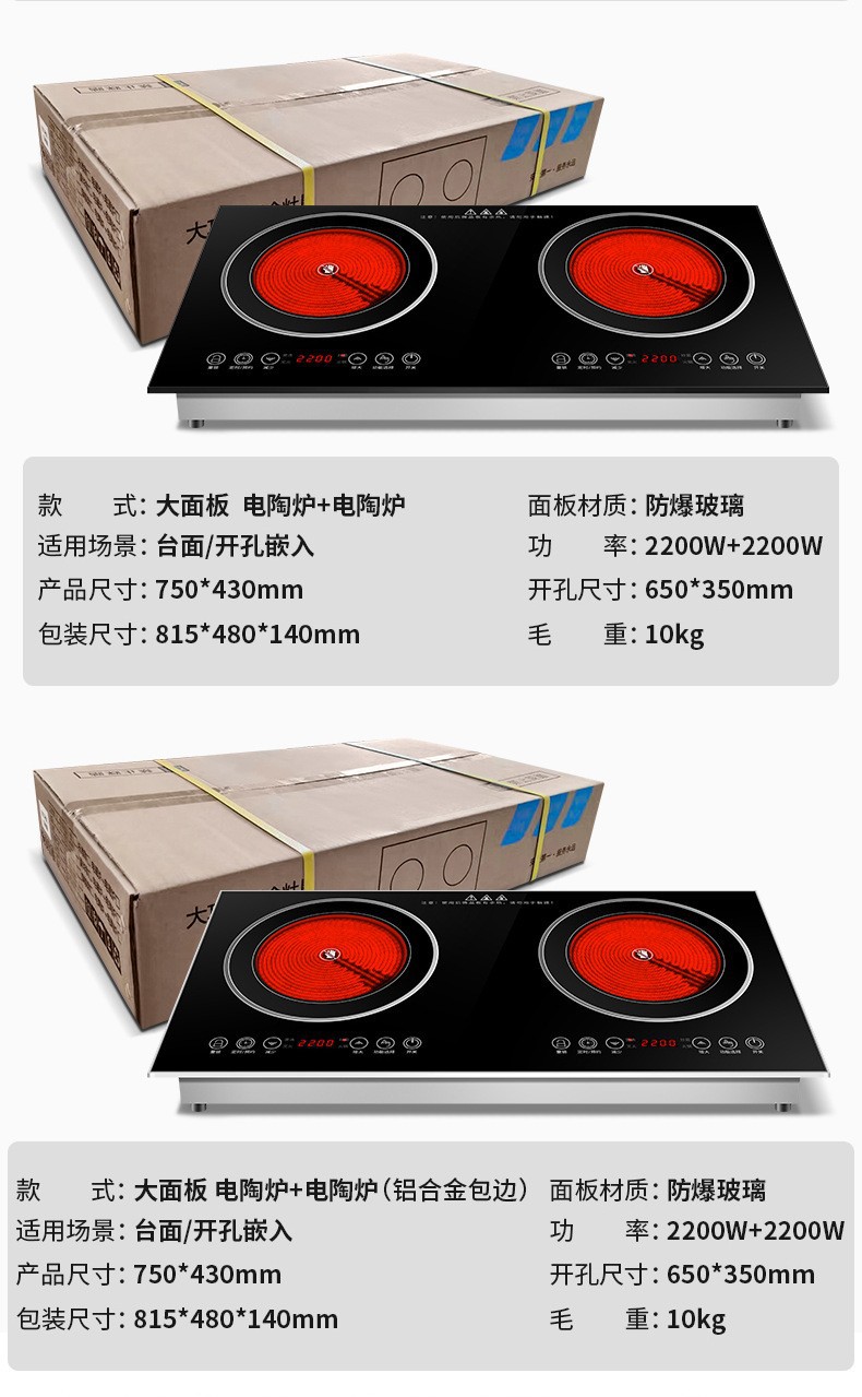 出口110V美规双灶电磁炉嵌入式双头电陶炉双口双炉家用爆炒电炉灶