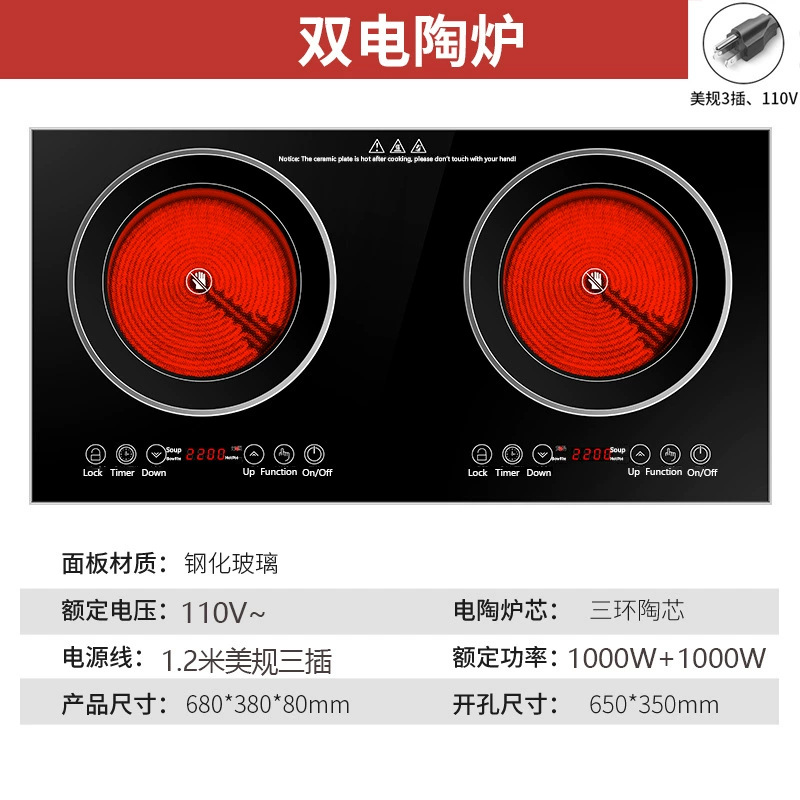 家用双头炉嵌入式电灶电磁炉电陶炉双灶跨境出口110V欧规美规英规