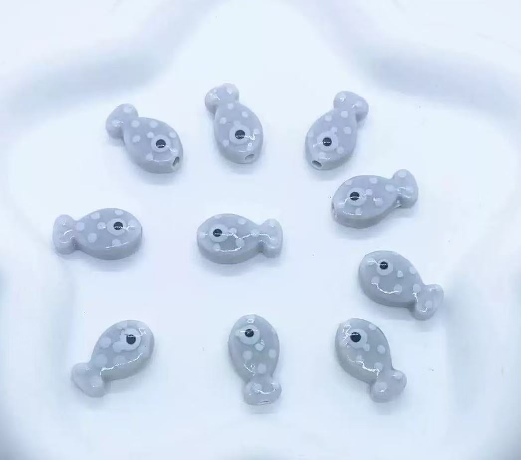 网红同款斑点小鱼陶瓷珠散珠手工制作项链手链 DIY配件饰品钥珠子