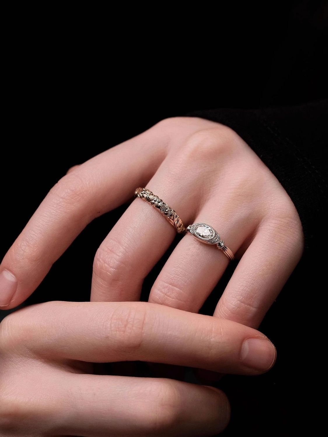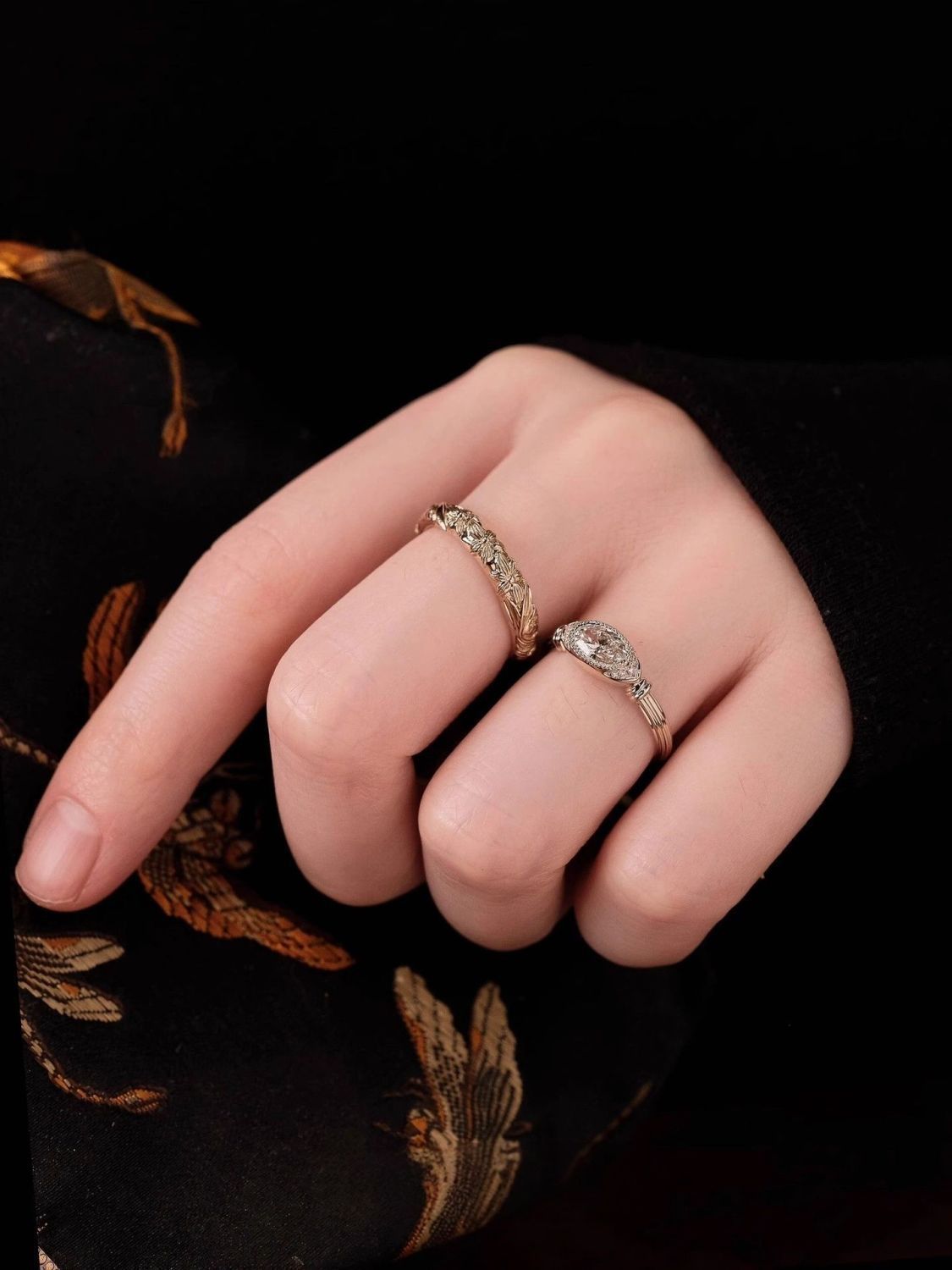 925纯银戒指女复古罗马柱中古对戒小众高级感可调节指环