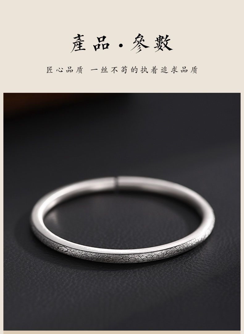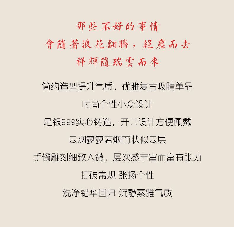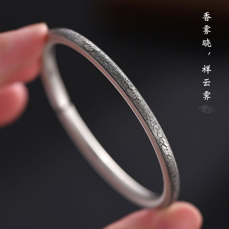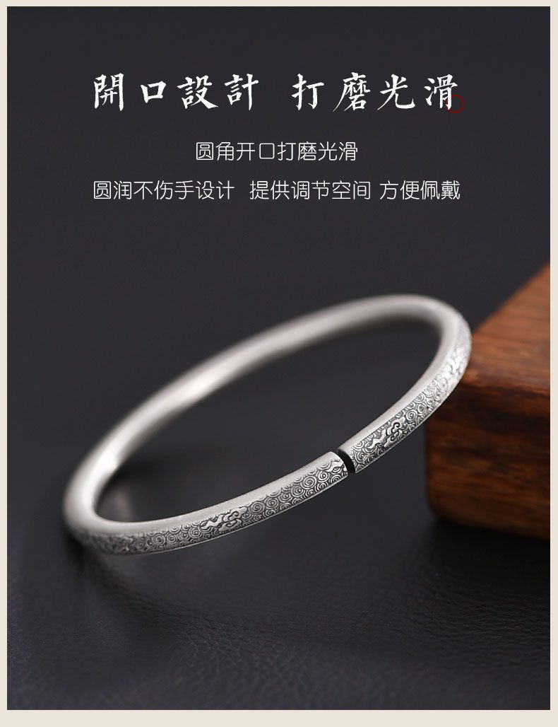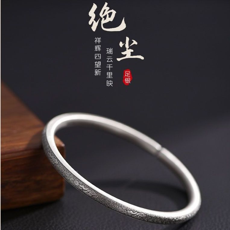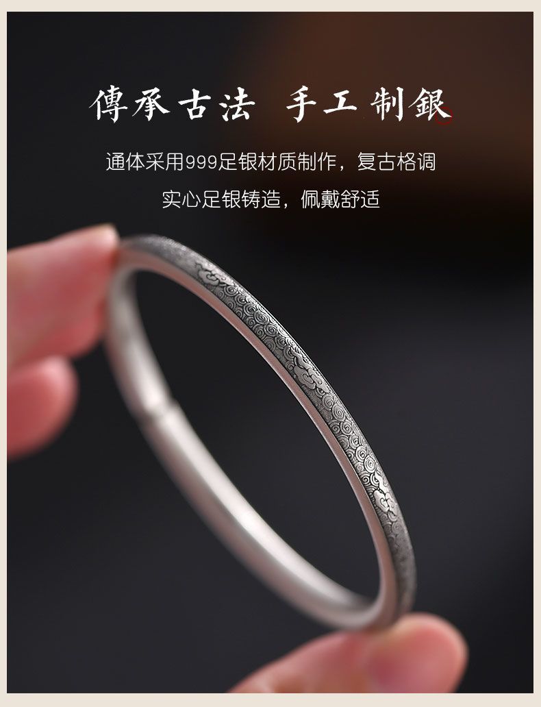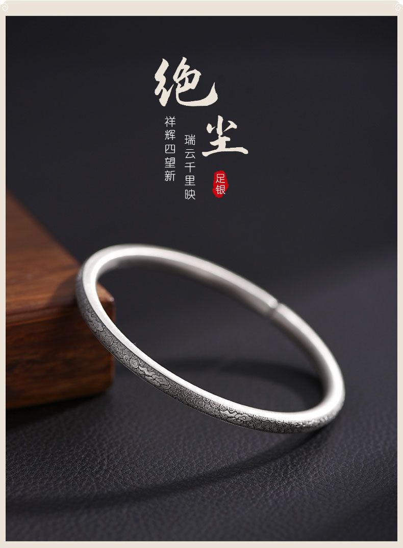 绝尘999纯银祥云手镯男女款复古民族风实心开口镯子情人节礼物